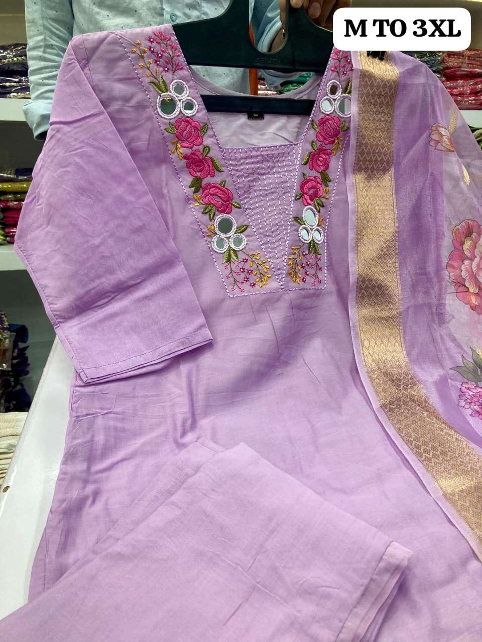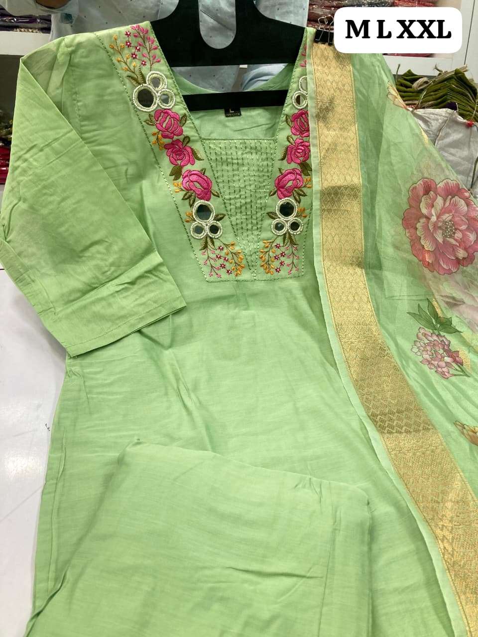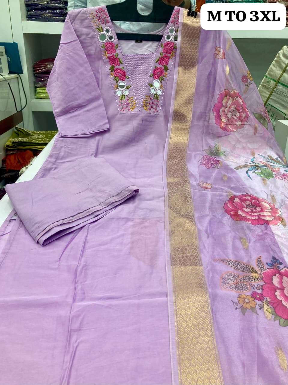 (Beautiful) MULL CHANDERI KURTI PANT DUPATTA BOTTOM FULL COTTON ASSTAR JEQARD ORGENZA PRINT DUPATTA