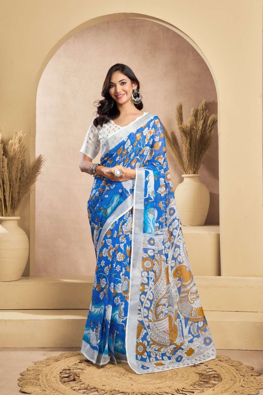 BEAUTIFUL PRINTED LINEN FABRIC 1 MINUT WEAR READY TO WEAR SAREE BEST COLLECTION