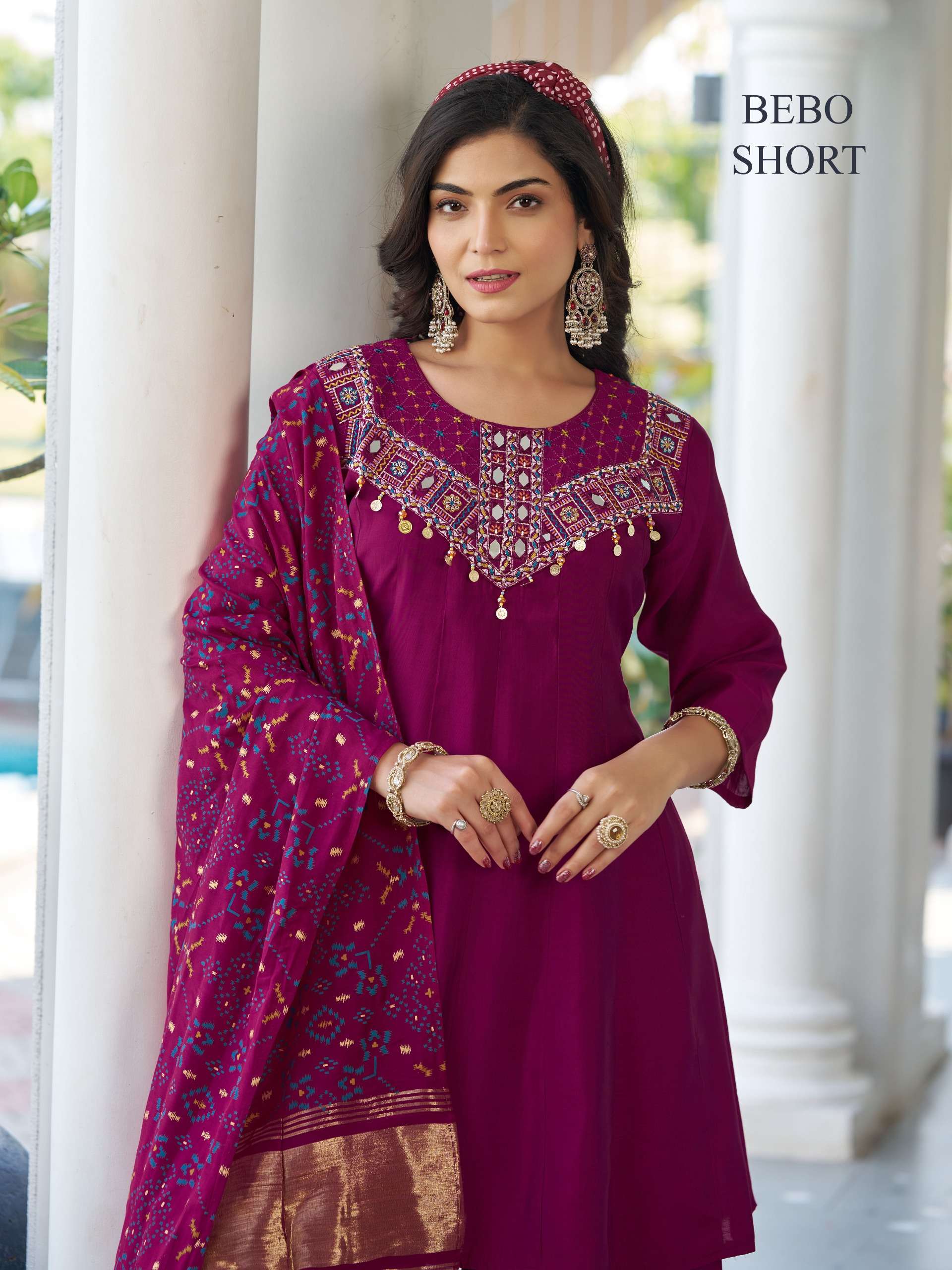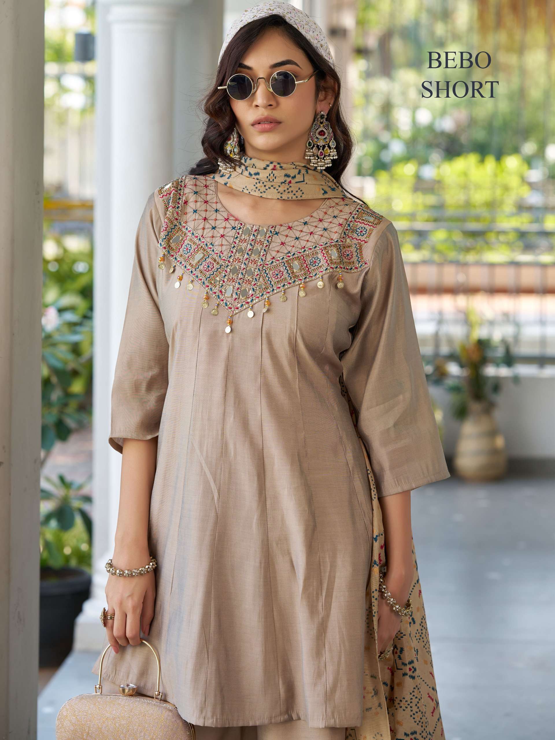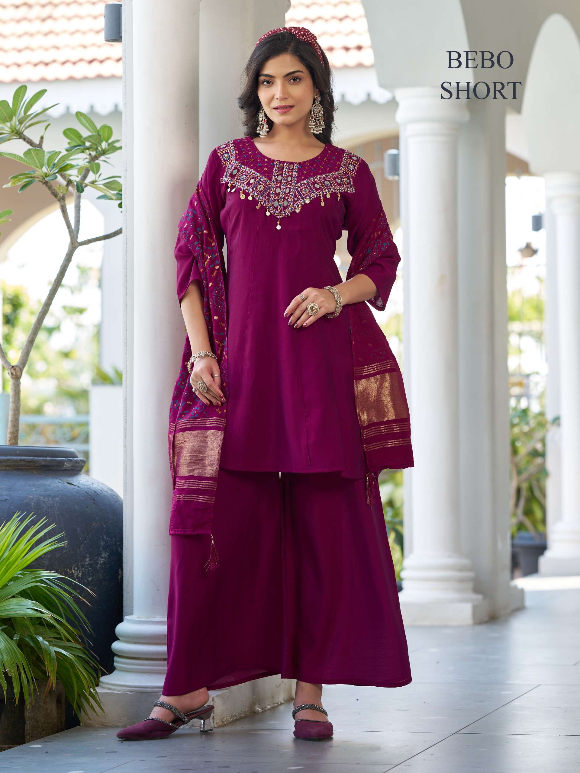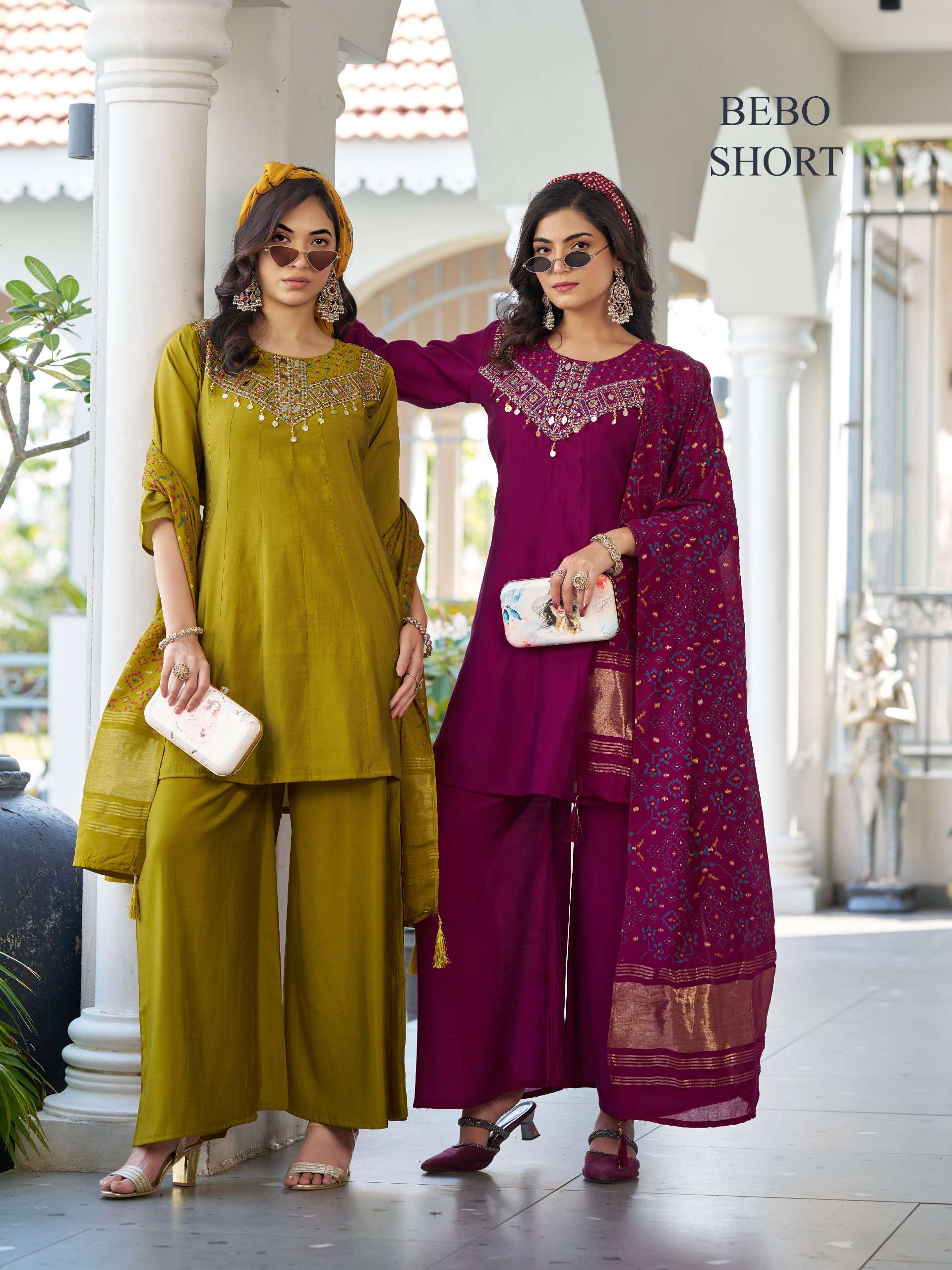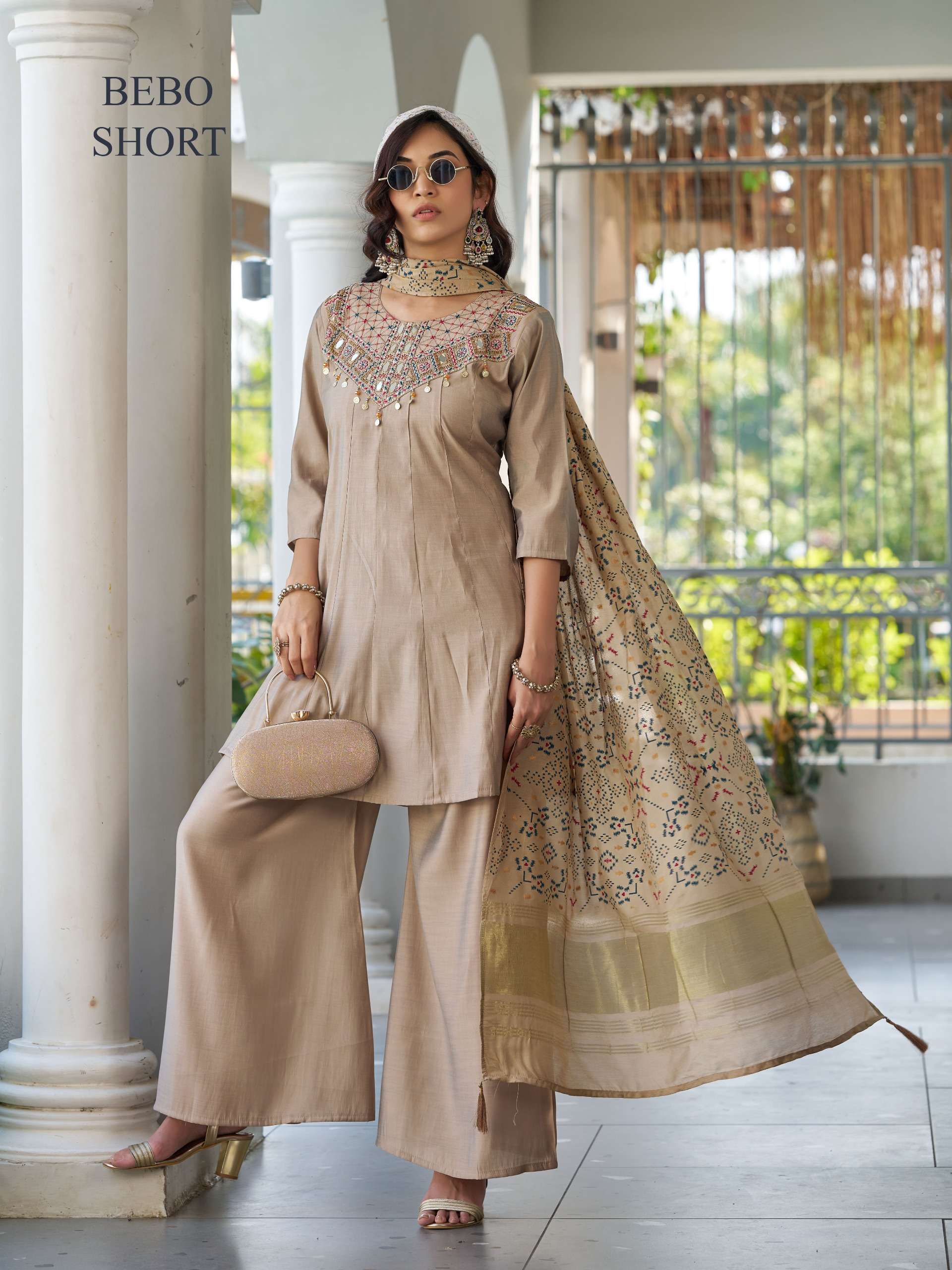 BEBO SHORT NEW PATTERN READYMADE SHORT KURTI PALAZZO SUIT CLOTH EXPORT
