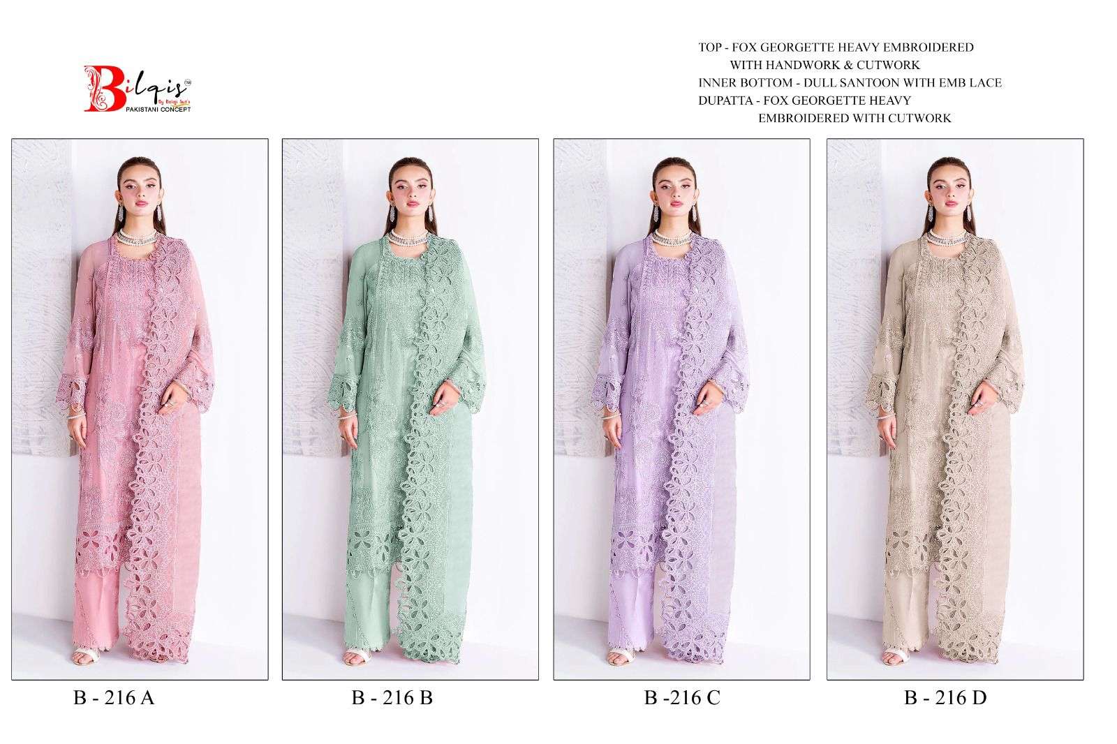 | Title | BILQISTM B 216 GEORGETTE HEAVY EMBROIDERED PAKISTANI MODAL STYLE LONG SUIT BUY DEALER |