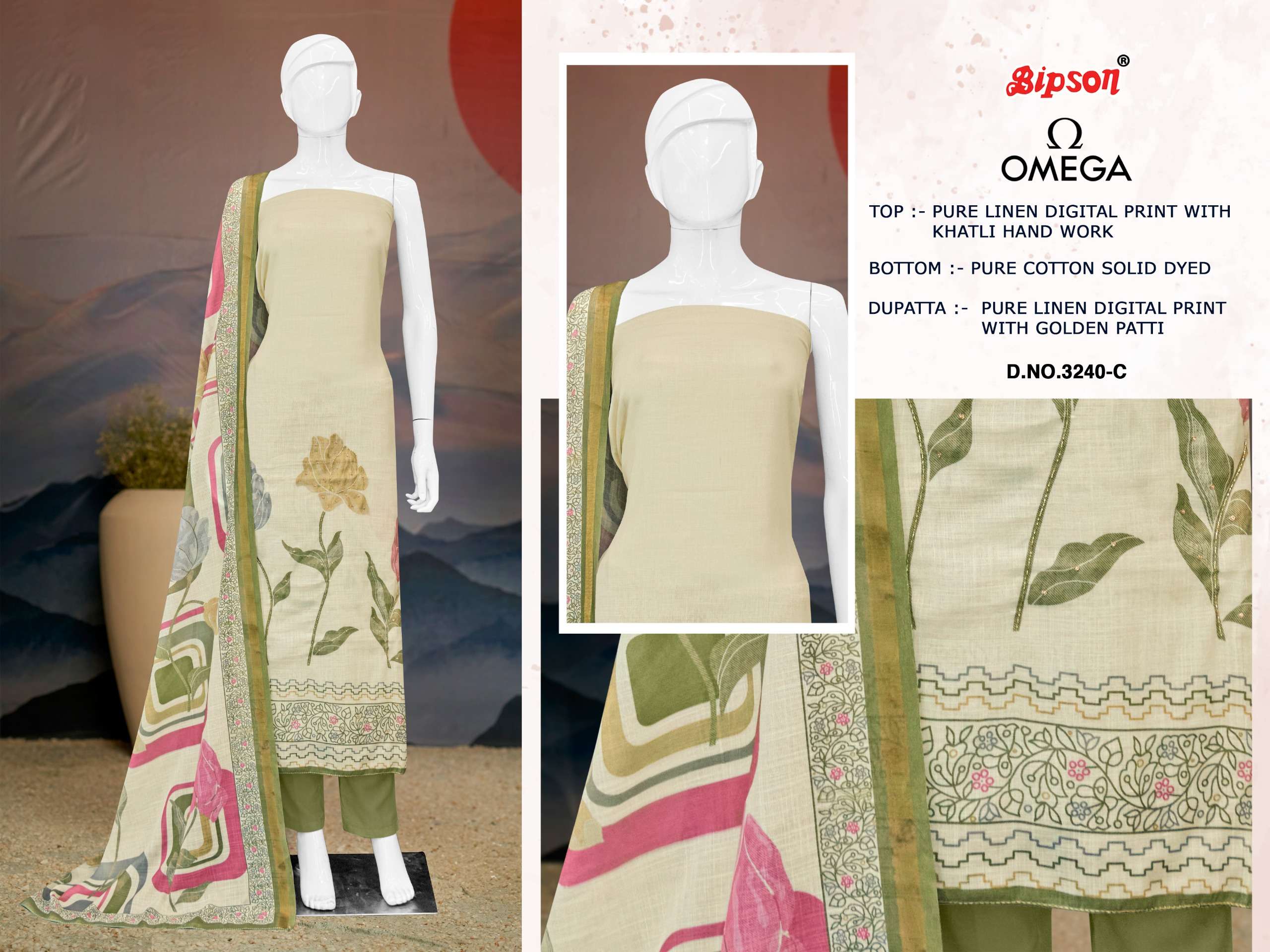 BIPSON PRINTS OMEGA 3240 TRADITIONAL KHATLI HANDWORK UNSTITCH SUIT ONLINE