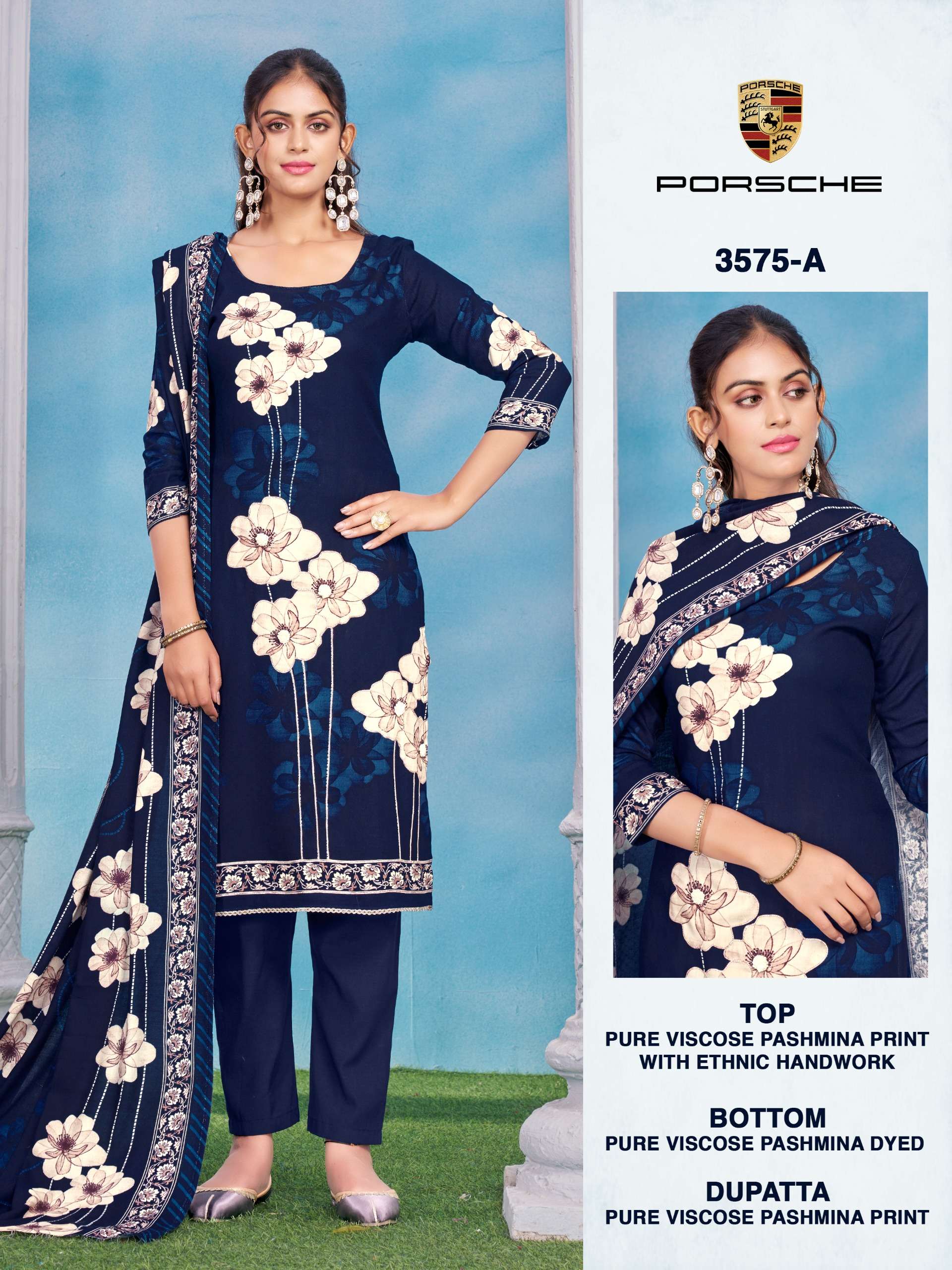 Buy Online BIPSON PRINTS PORSCHE 3575 VISCOSE FABRIC PASHMINA PRINT UNSTITCH SUIT RESELLER 4 Pcs of Full Catalogue at Wholesale Price. Looking for BIPSON PRINTS PORSCHE 3575 VISCOSE FABRIC PASHMINA PRINT UNSTITCH SUIT RESELLER Full Catalouge at Best Price? Buy Now BIPSON PRINTS PORSCHE 3575 VISCOSE FABRIC PASHMINA PRINT UNSTITCH SUIT RESELLER at Wholesale Rate of Rs 3500 with Total 4 Pcs from authroized dealer and supplier of BIPSON FASHION Brand. Cost of Each piece is just only Rs 875 which is very low and affordable price to resale the product in your retail store Ethnic Export is Surat based Wholesale Supplier & Dealer of BIPSON FASHION Brand. Click on Brand name to Know more about BIPSON FASHION Brand's products.Call or Whatsapp on +91-9825759366 for booking or enquiry