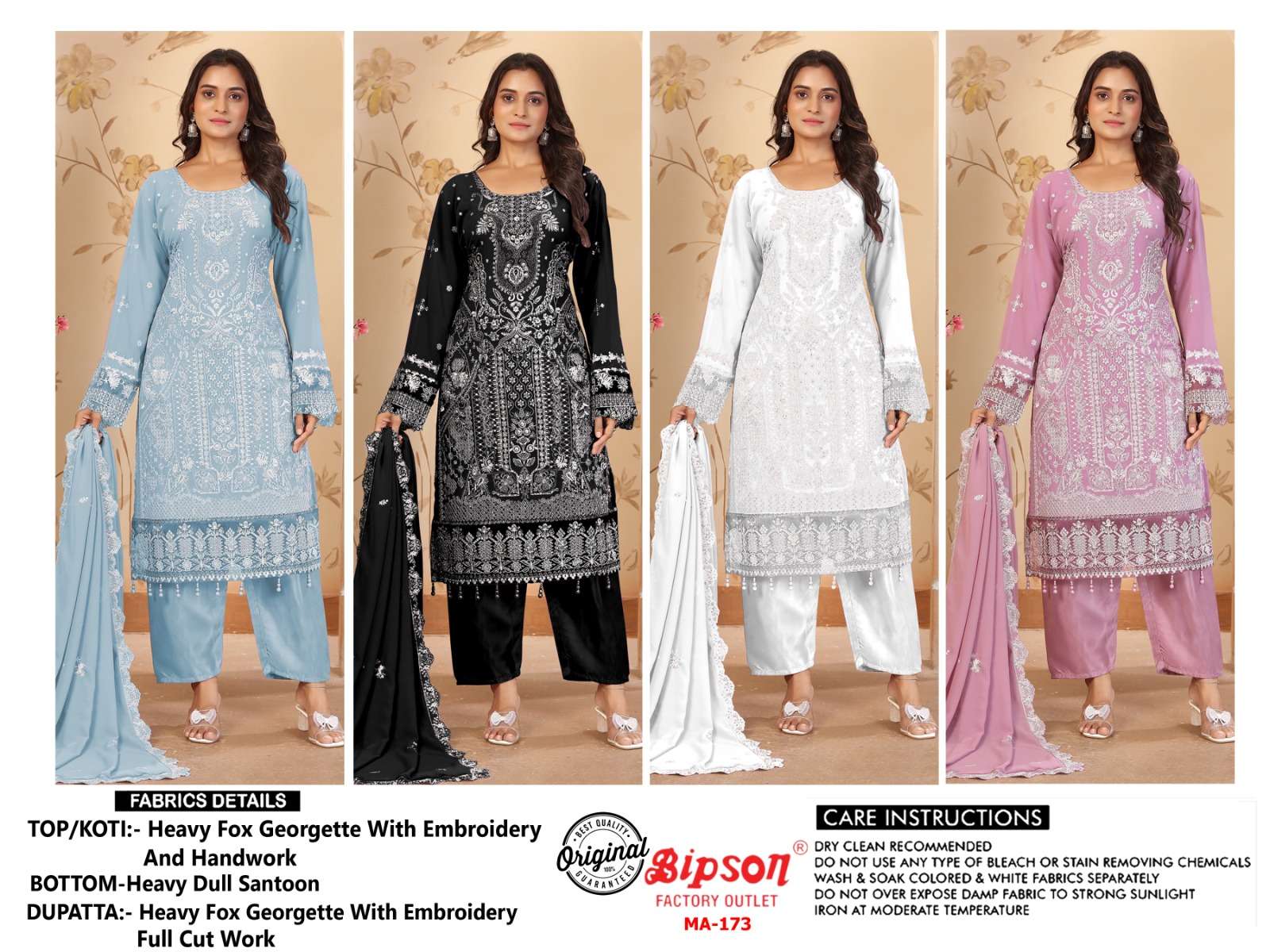 Buy Online BIPSON PRINTS READYMADE MA 172 HIGH CLOTHING BRAND KHATLI WORK SUIT CATALOG 4 Pcs of Full Catalogue at Wholesale Price. Looking for BIPSON PRINTS READYMADE MA 172 HIGH CLOTHING BRAND KHATLI WORK SUIT CATALOG Full Catalouge at Best Price? Buy Now BIPSON PRINTS READYMADE MA 172 HIGH CLOTHING BRAND KHATLI WORK SUIT CATALOG at Wholesale Rate of Rs 6780 with Total 4 Pcs from authroized dealer and supplier of BIPSON FASHION Brand. Cost of Each piece is just only Rs 1695 which is very low and affordable price to resale the product in your retail store Ethnic Export is Surat based Wholesale Supplier & Dealer of BIPSON FASHION Brand. Click on Brand name to Know more about BIPSON FASHION Brand's products.Call or Whatsapp on +91-9825759366 for booking or enquiry