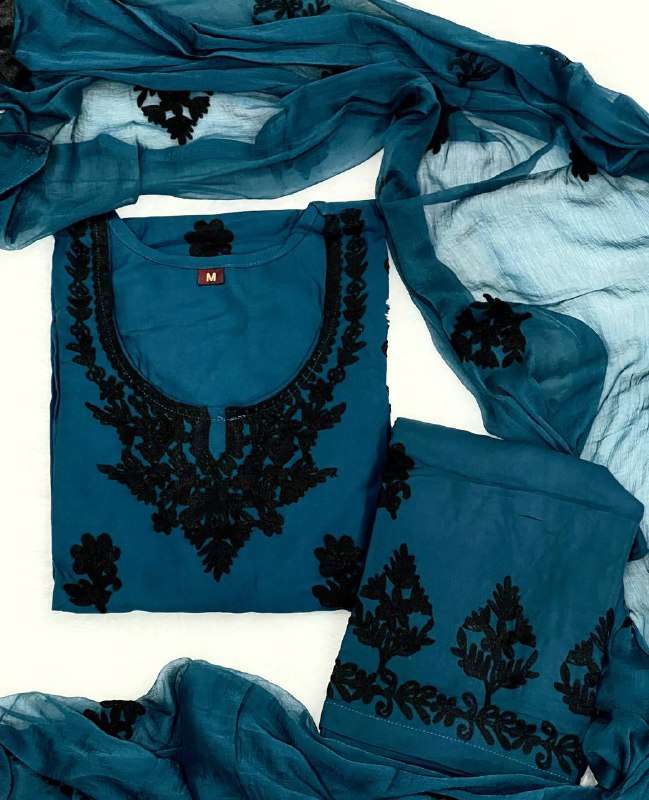 BLUE HILLS BLACK BEAUTY JAIPUR PRINT EMBROIDERY WORK PALAZZO 3PIECE SUIT MARKET