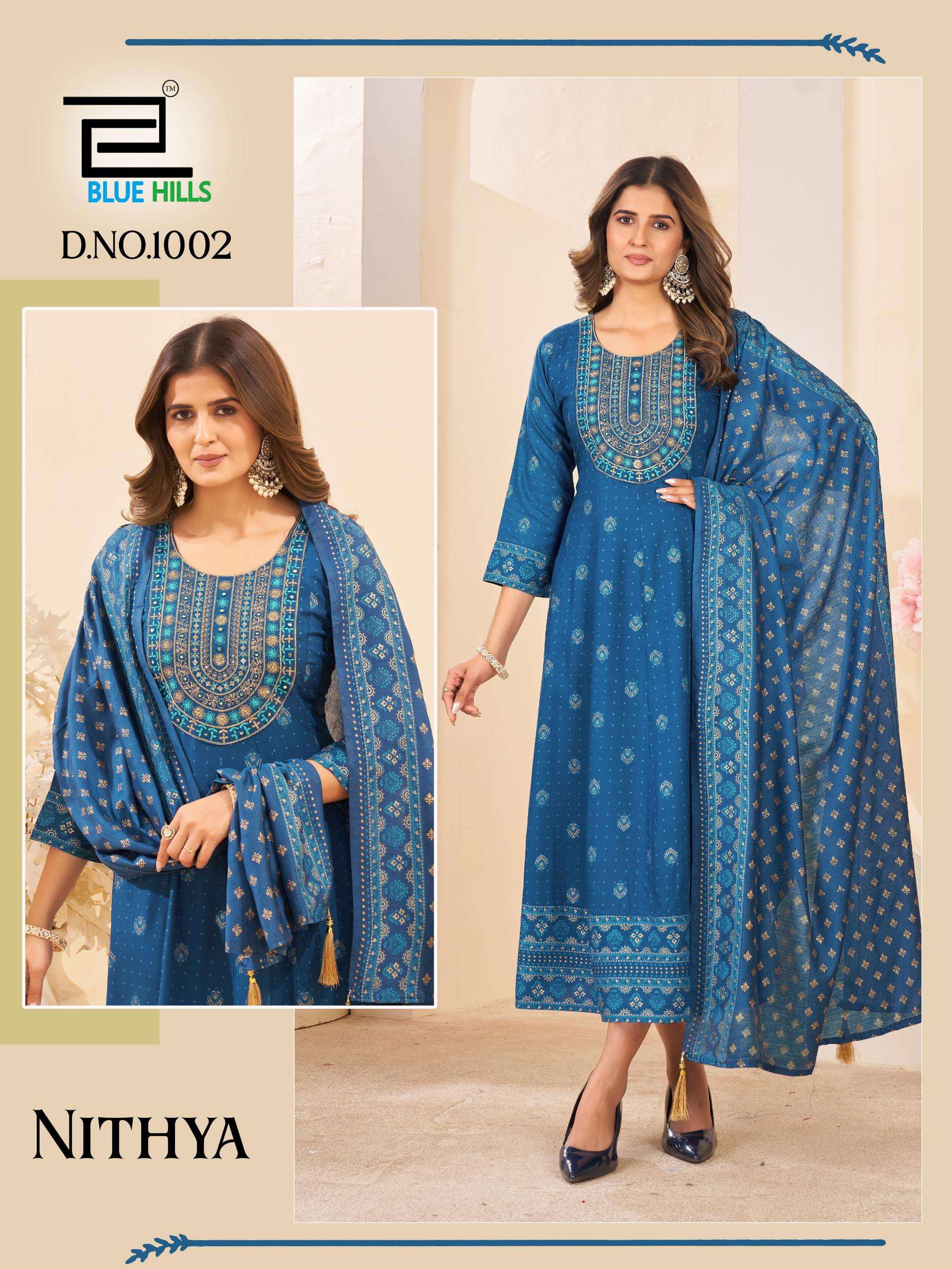 Buy Online BLUE HILLS NITHYA FOIL PRINT READYMADE ANARKALI GOWN WITH DUPATTA SET DEALER 6 Pcs of Full Catalogue at Wholesale Price. Looking for BLUE HILLS NITHYA FOIL PRINT READYMADE ANARKALI GOWN WITH DUPATTA SET DEALER Full Catalouge at Best Price? Buy Now BLUE HILLS NITHYA FOIL PRINT READYMADE ANARKALI GOWN WITH DUPATTA SET DEALER at Wholesale Rate of Rs 4740 with Total 6 Pcs from authroized dealer and supplier of Blue Hills Brand. Cost of Each piece is just only Rs 790 which is very low and affordable price to resale the product in your retail store Ethnic Export is Surat based Wholesale Supplier & Dealer of Blue Hills Brand. Click on Brand name to Know more about Blue Hills Brand's products.Call or Whatsapp on +91-9825759366 for booking or enquiry
