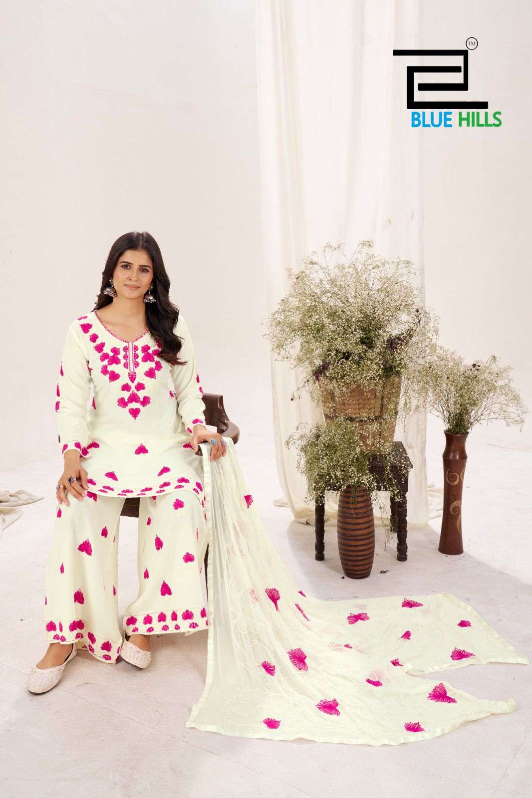 Buy Online BLUE HILLS PINK LOTUS 14KG RAYON JAIPUR DESIGN PALAZZO 3 PIECE SUIT DEALER RATE 4 Pcs of Full Catalogue at Wholesale Price. Looking for BLUE HILLS PINK LOTUS 14KG RAYON JAIPUR DESIGN PALAZZO 3 PIECE SUIT DEALER RATE Full Catalouge at Best Price? Buy Now BLUE HILLS PINK LOTUS 14KG RAYON JAIPUR DESIGN PALAZZO 3 PIECE SUIT DEALER RATE at Wholesale Rate of Rs 3596 with Total 4 Pcs from authroized dealer and supplier of Blue Hills Brand. Cost of Each piece is just only Rs 899 which is very low and affordable price to resale the product in your retail store Ethnic Export is Surat based Wholesale Supplier & Dealer of Blue Hills Brand. Click on Brand name to Know more about Blue Hills Brand's products.Call or Whatsapp on +91-9825759366 for booking or enquiry