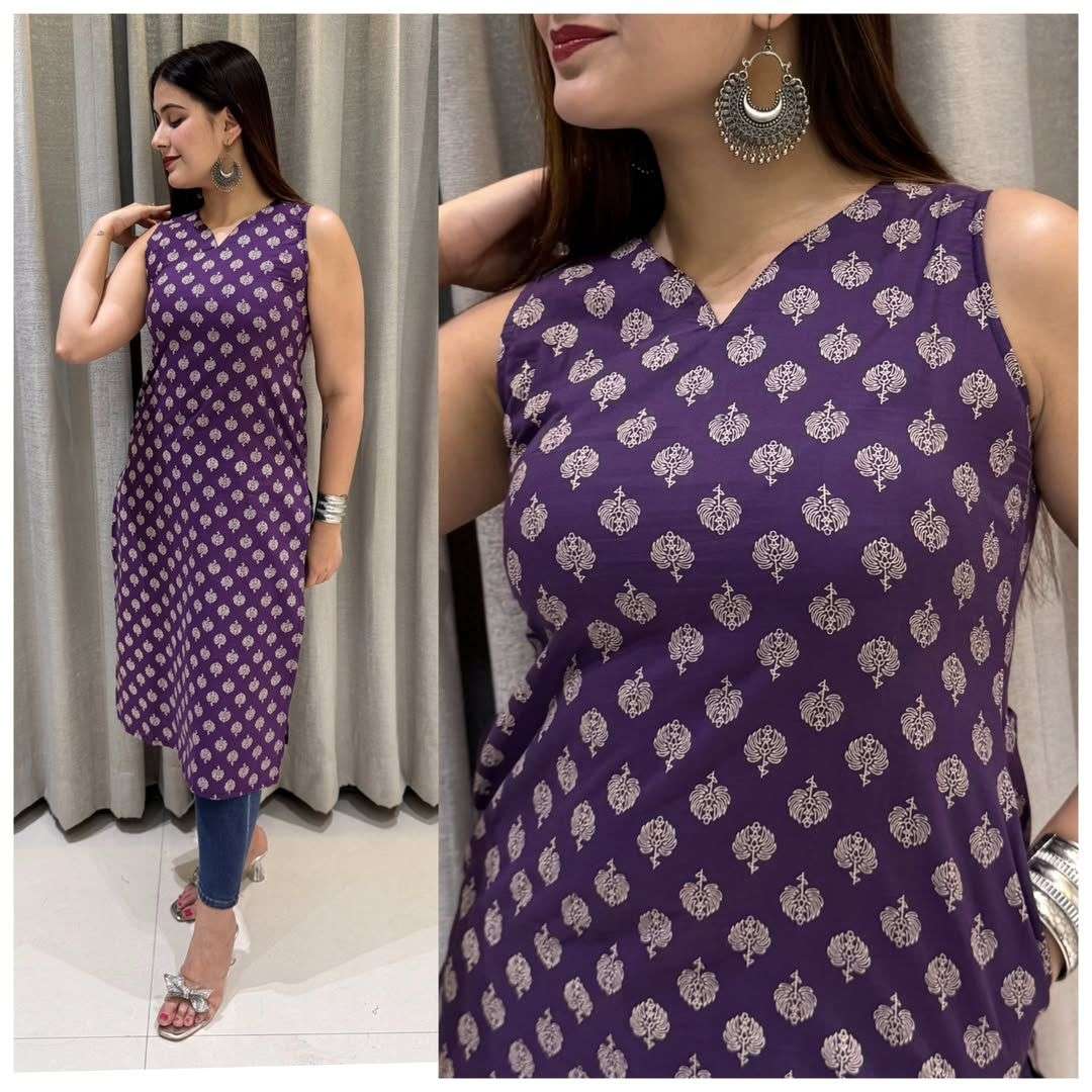 BLUSH 7 0 SLEEVELESS COTTON PRINTED KURTI FOR REGULAR AND OFFICE WEAR DEALER FF