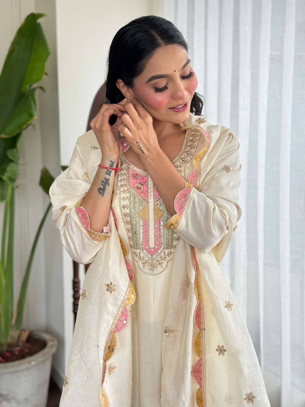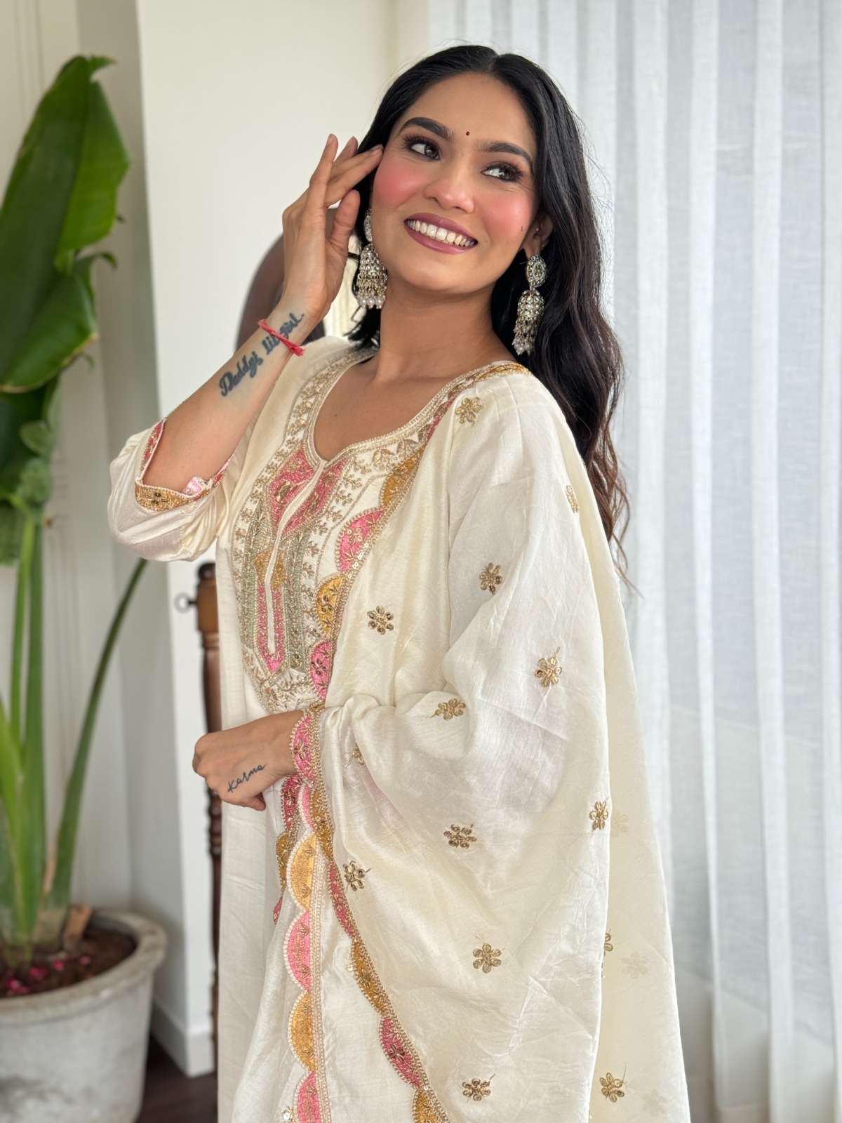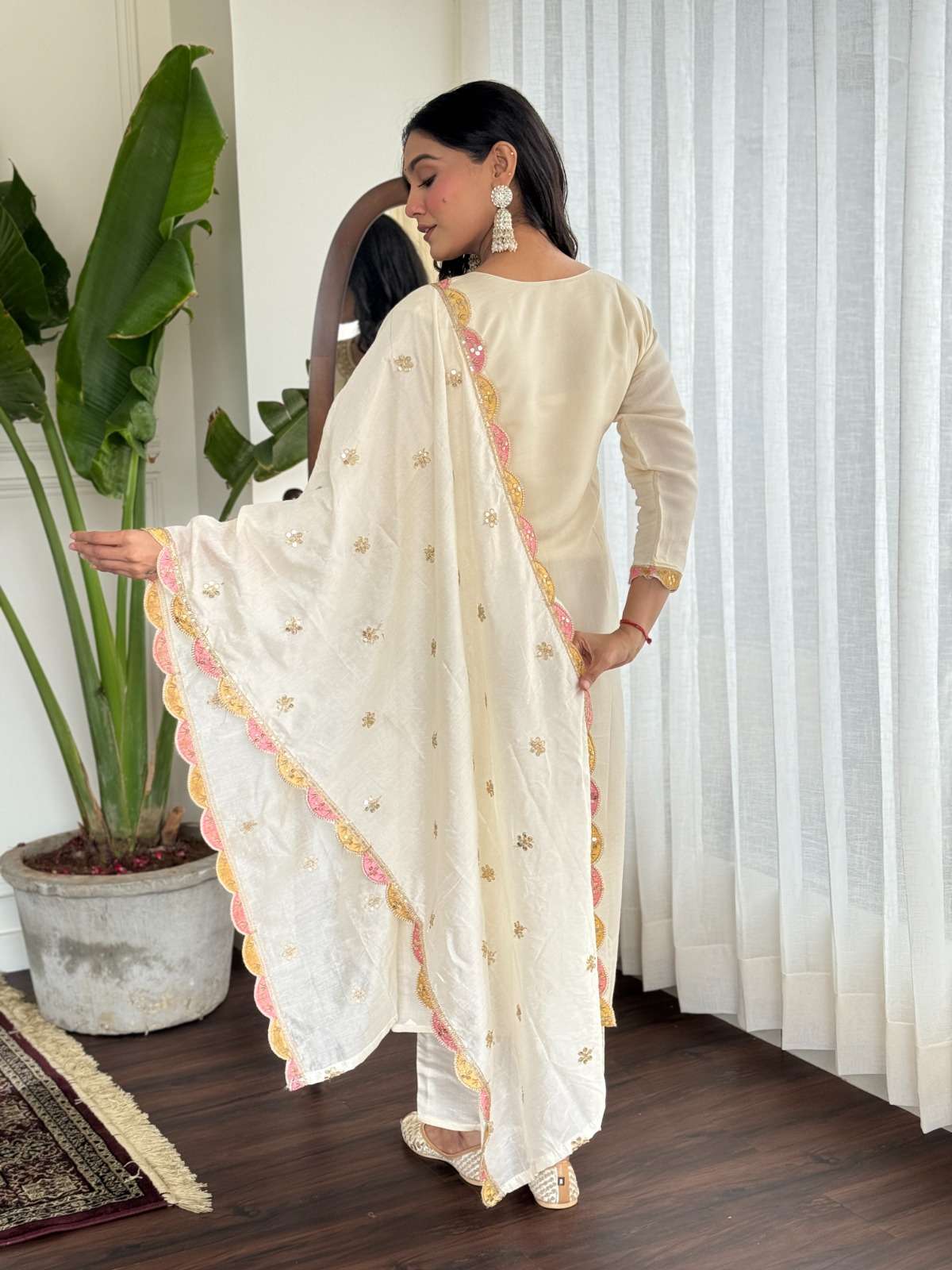 BOUTIQUE PREMIUM SILK WHITE SUIT MULTI DESIGN STITCHED OUTFIT VRD