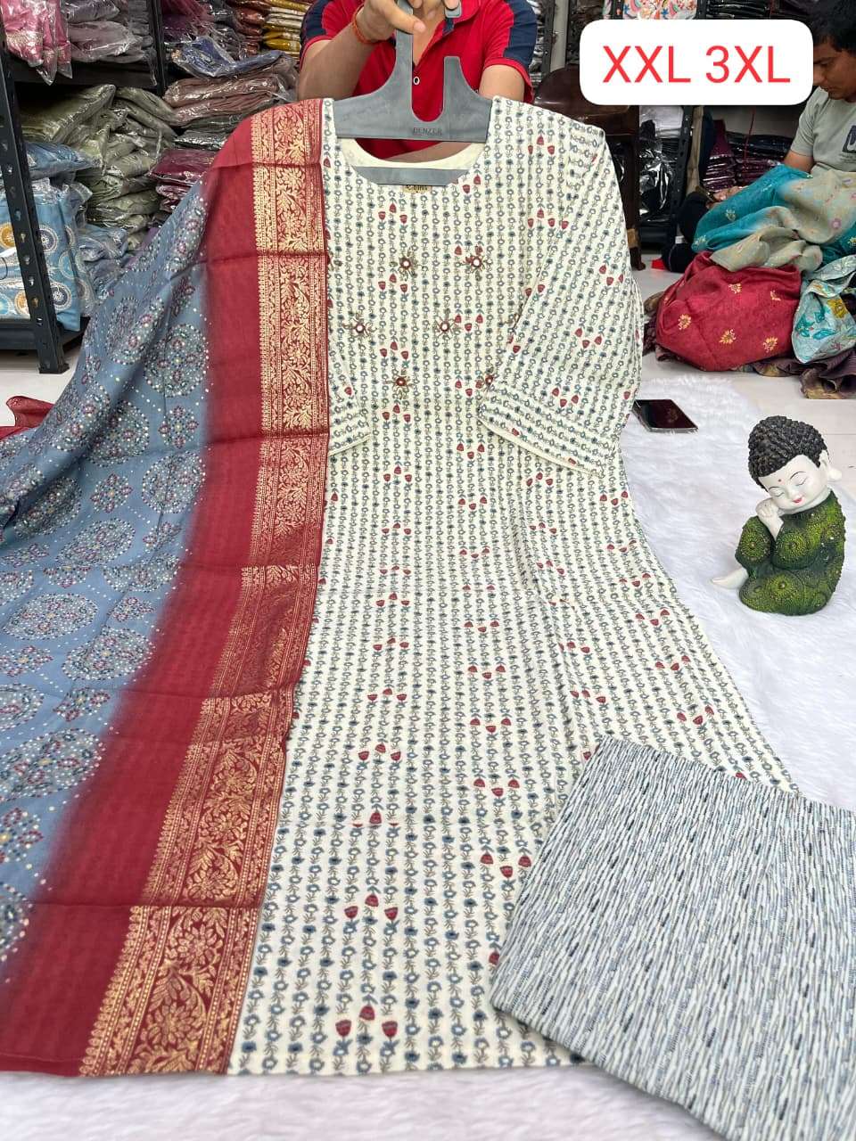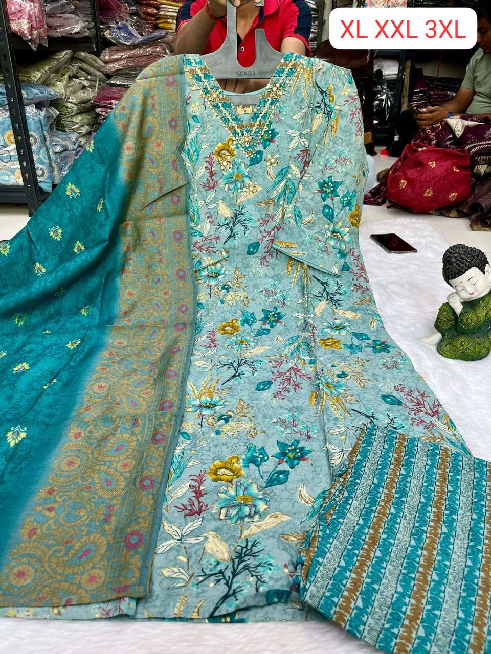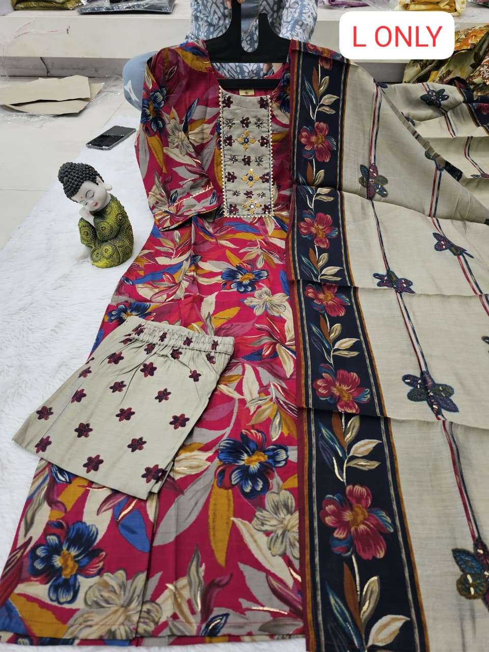 Pure Modal Viscose fabric Heavy Hand Work designer Kurti with dupatta and Pant Size Mantion on photos SINGLE ALSO AVA |