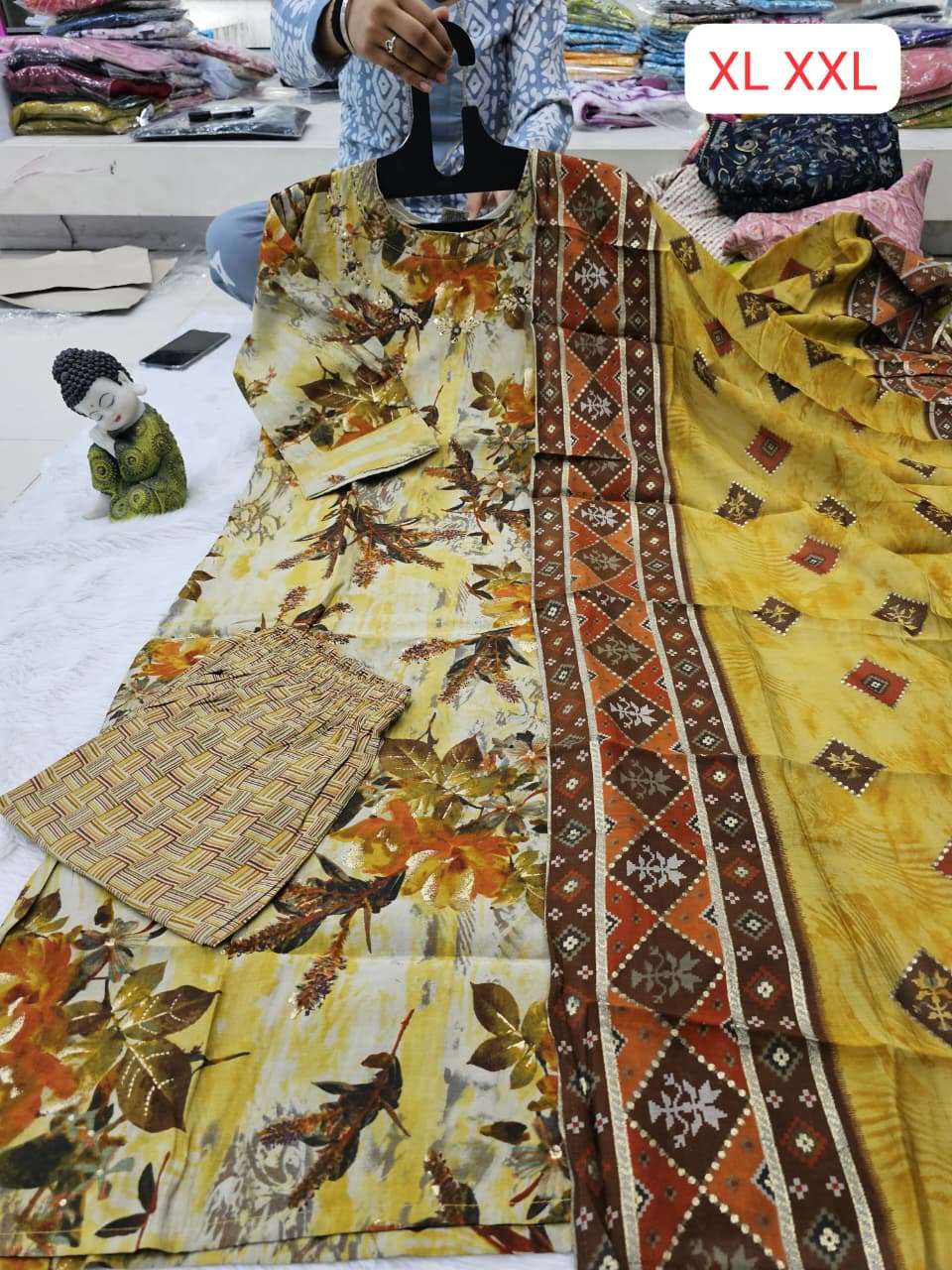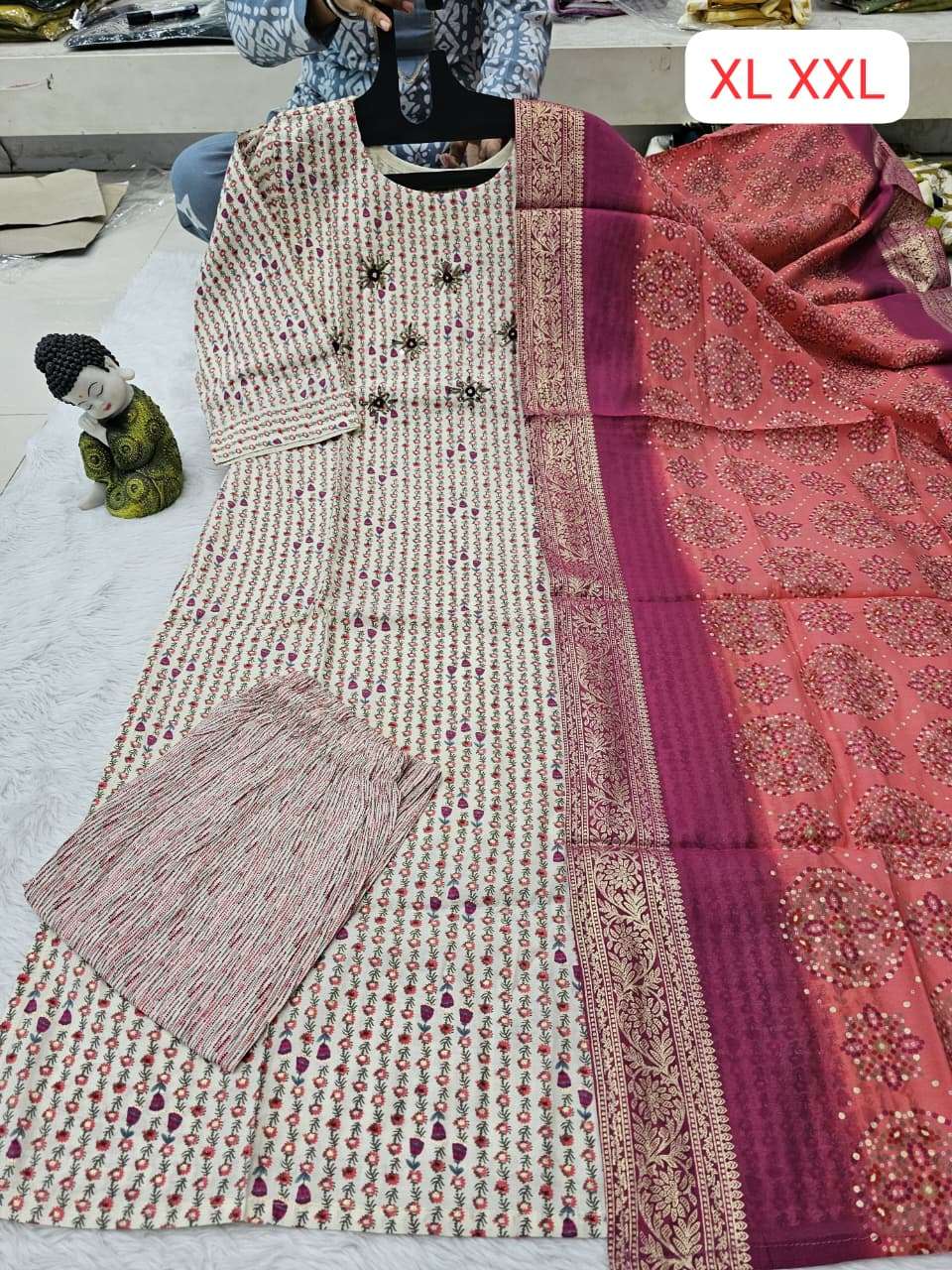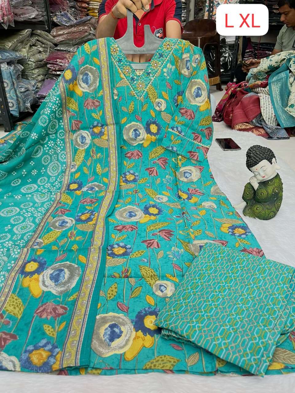 Pure Modal Viscose fabric Heavy Hand Work designer Kurti with dupatta and Pant Size Mantion on photos SINGLE ALSO AVA |