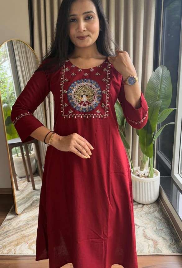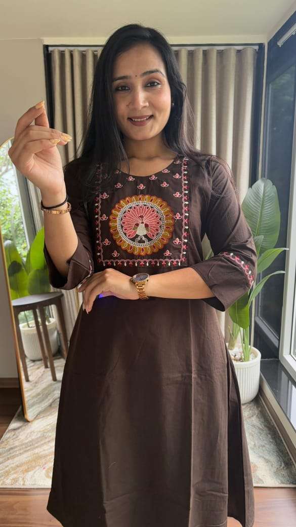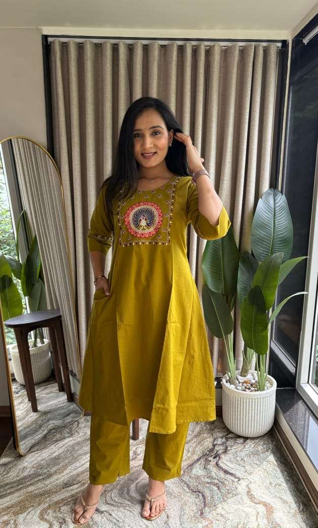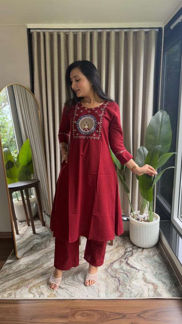 FABRIC:- PRIMIUM NATURAL DHABU COTTON Aline kurti with pocket BEAUTIFUL PEACOCK EMRODIARY PATCH & SLIVE WORK & plazo with miyani & fully interloc Beautiful Solid Colors M To 4XL Size Sets SINGLE ALSO AVA |