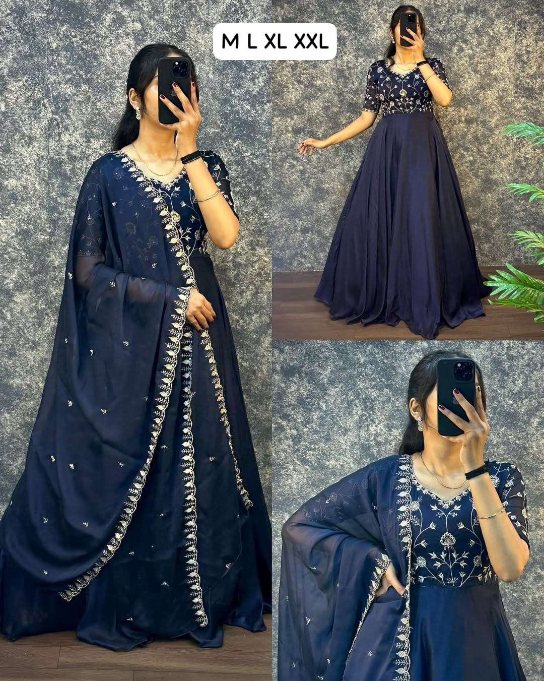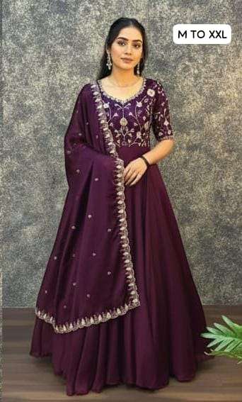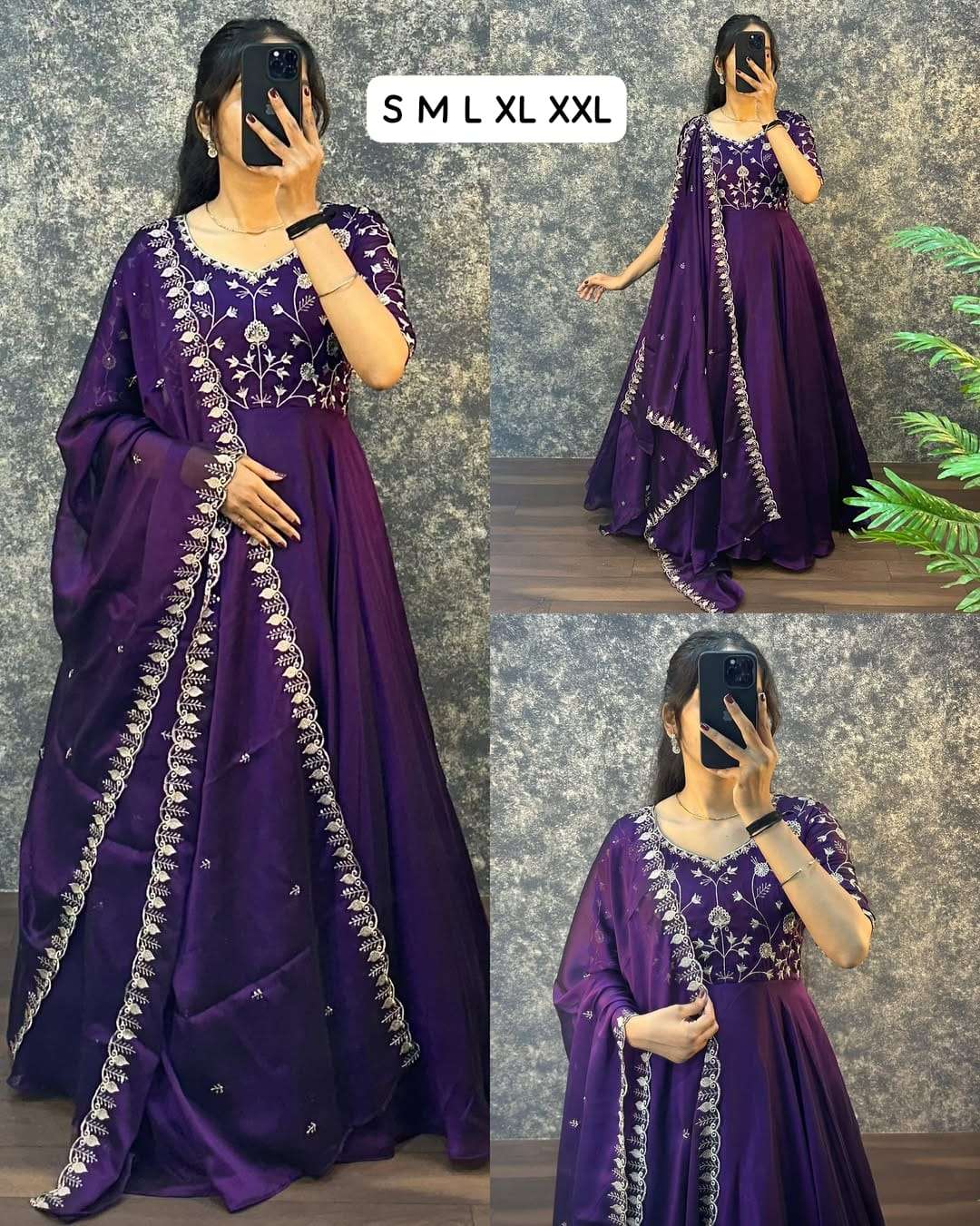 Complet Lining with Beautiful work in duppata Top Fabric - satin chiffon 😍 DUPPATA HIGH QUALITY 💖💞❣️ Inclusive: GOWN,Dupatta[2piece] Size - S M L XL XXL SINGLE ALSO AVA |