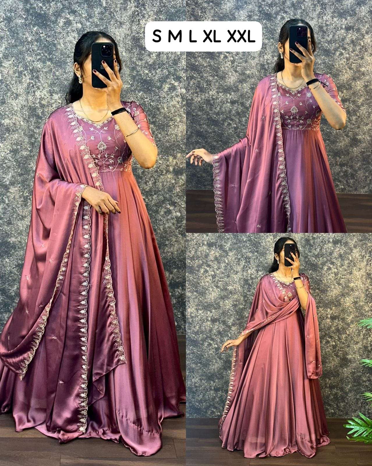 BOUTIQUE SATIN DESIGNER GOWN WITH DUPATTA FESTIVAL SUPPLIER RANG