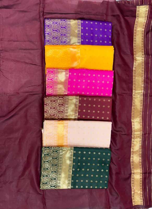 *KP-R:- 262* *FABRIC : SOFT LICHI SILK CLOTH. *DESIGN : BEAUTIFUL RICH PALLU & JACQUARD WORK ON ALL OVER THE SAREE. *BLOUSE : RUNNING EXCLUSIVE JACQUARD BORDER. ➡️ *100% BEST QUALITY* ⬅️ SINGLE ALSO AVA |
