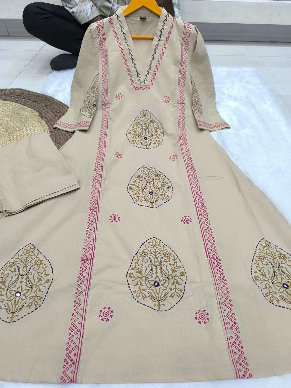 A LINE KURTI WITH PLAZO Fabric- Heavy cotton with block print with mirror handwork With 1 side pocket in kurti Size-M to 3xl SINGLE ALSO AVA |