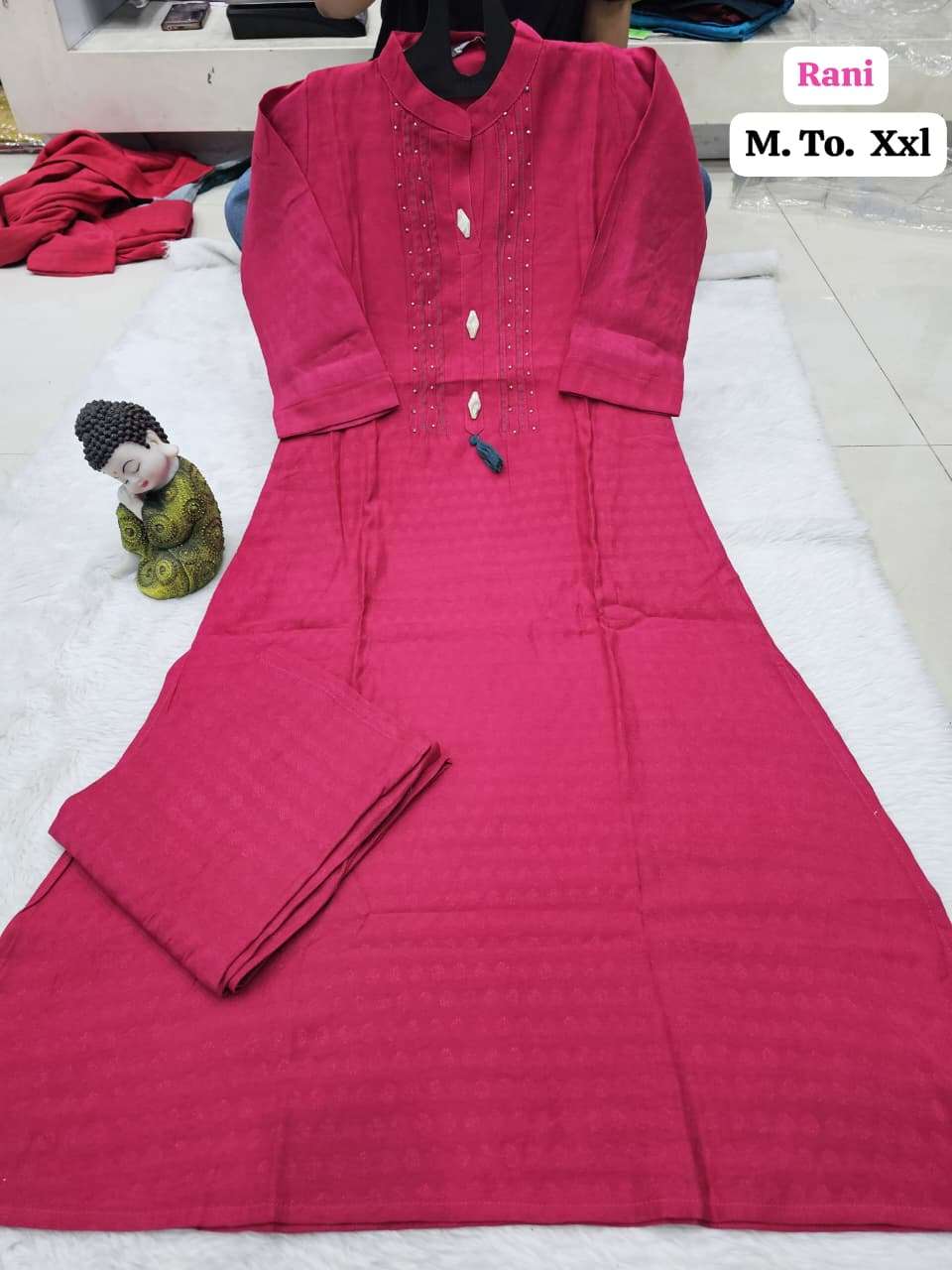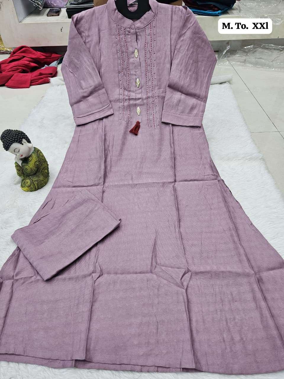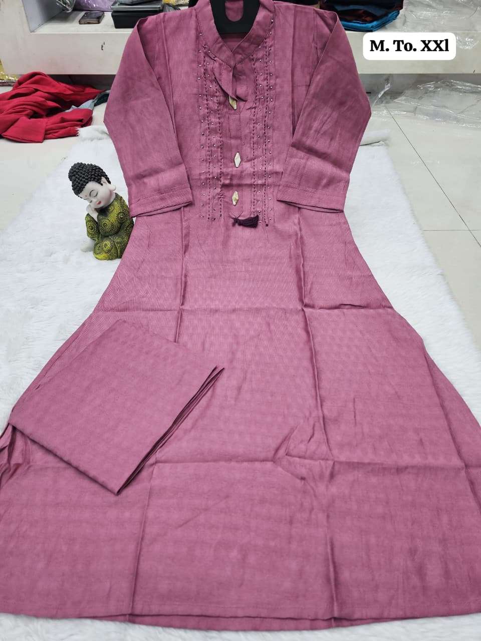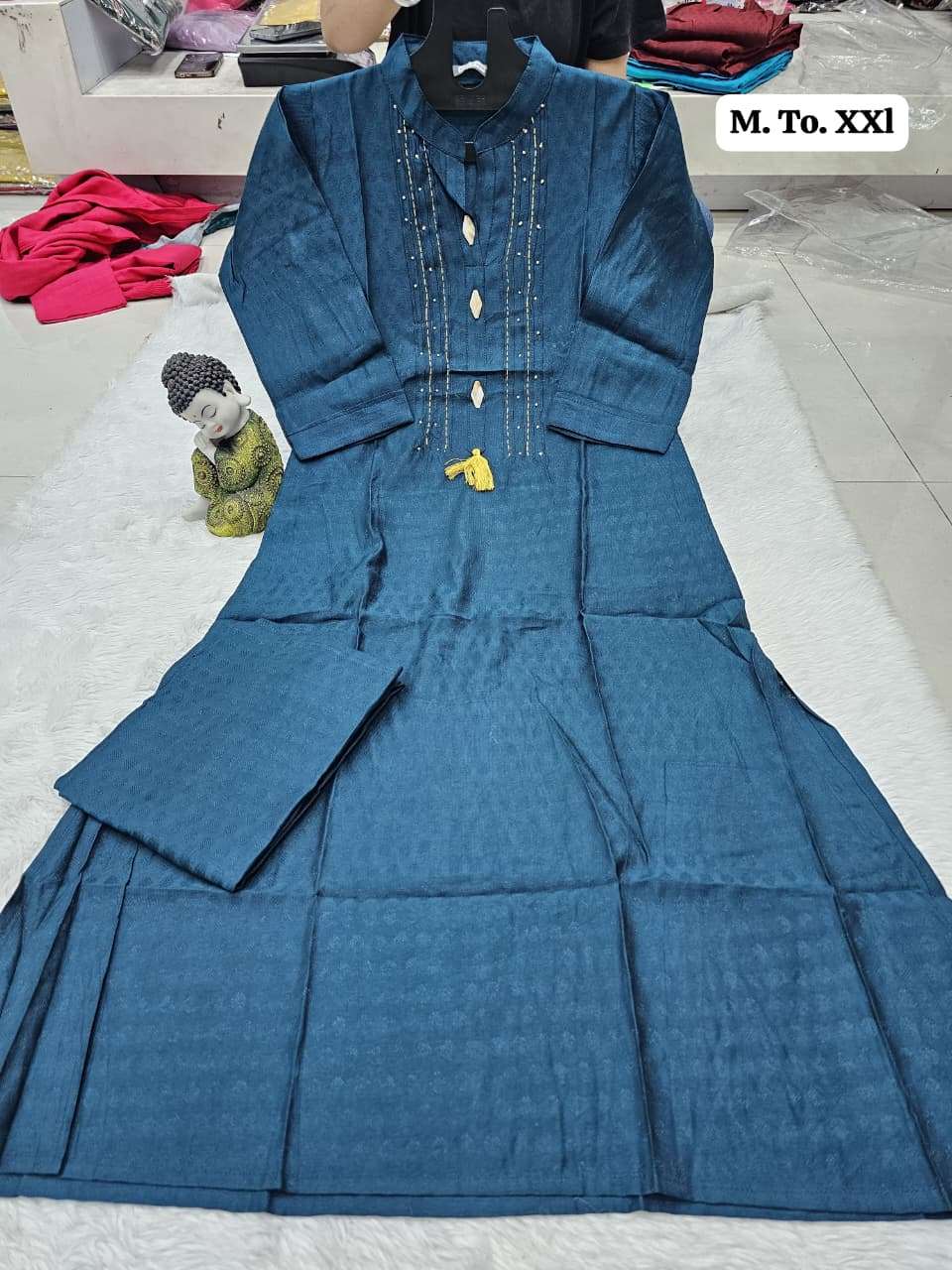 | Other Details | Aline plazo Vichitra cottan fabric with thread n dhada work With Fancy button Size M to XXL SINGLE ALSO AVA |