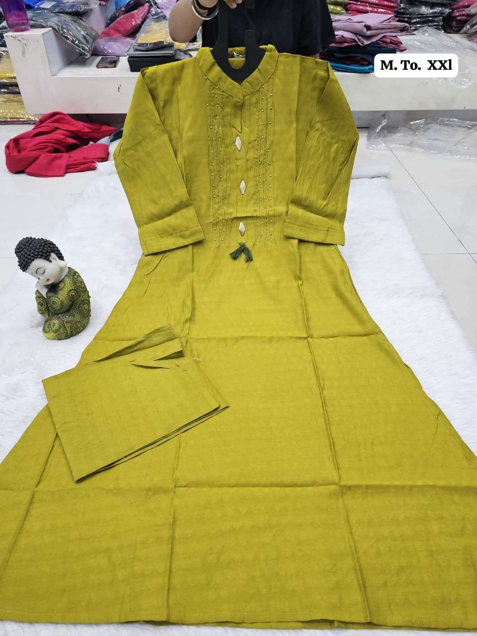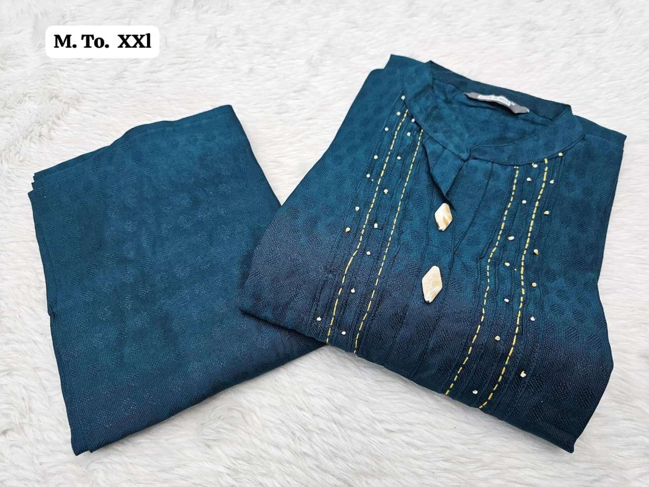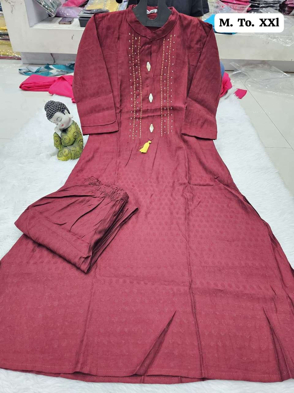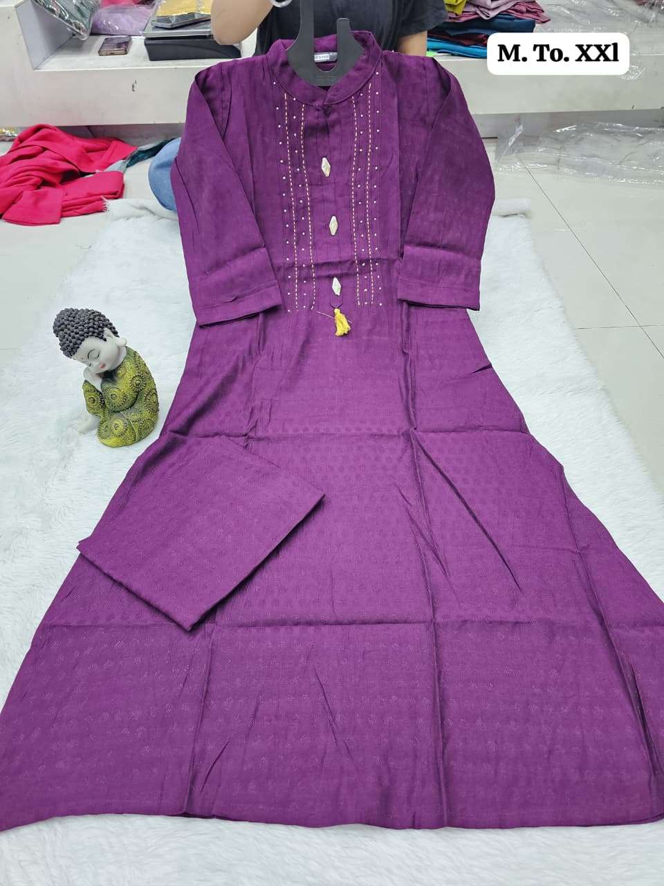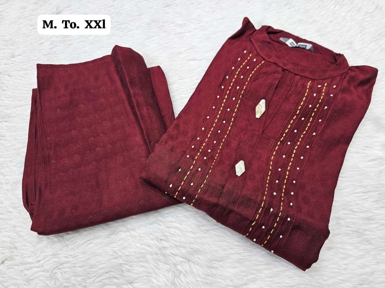 | Other Details | Aline plazo Vichitra cottan fabric with thread n dhada work With Fancy button Size M to XXL SINGLE ALSO AVA |