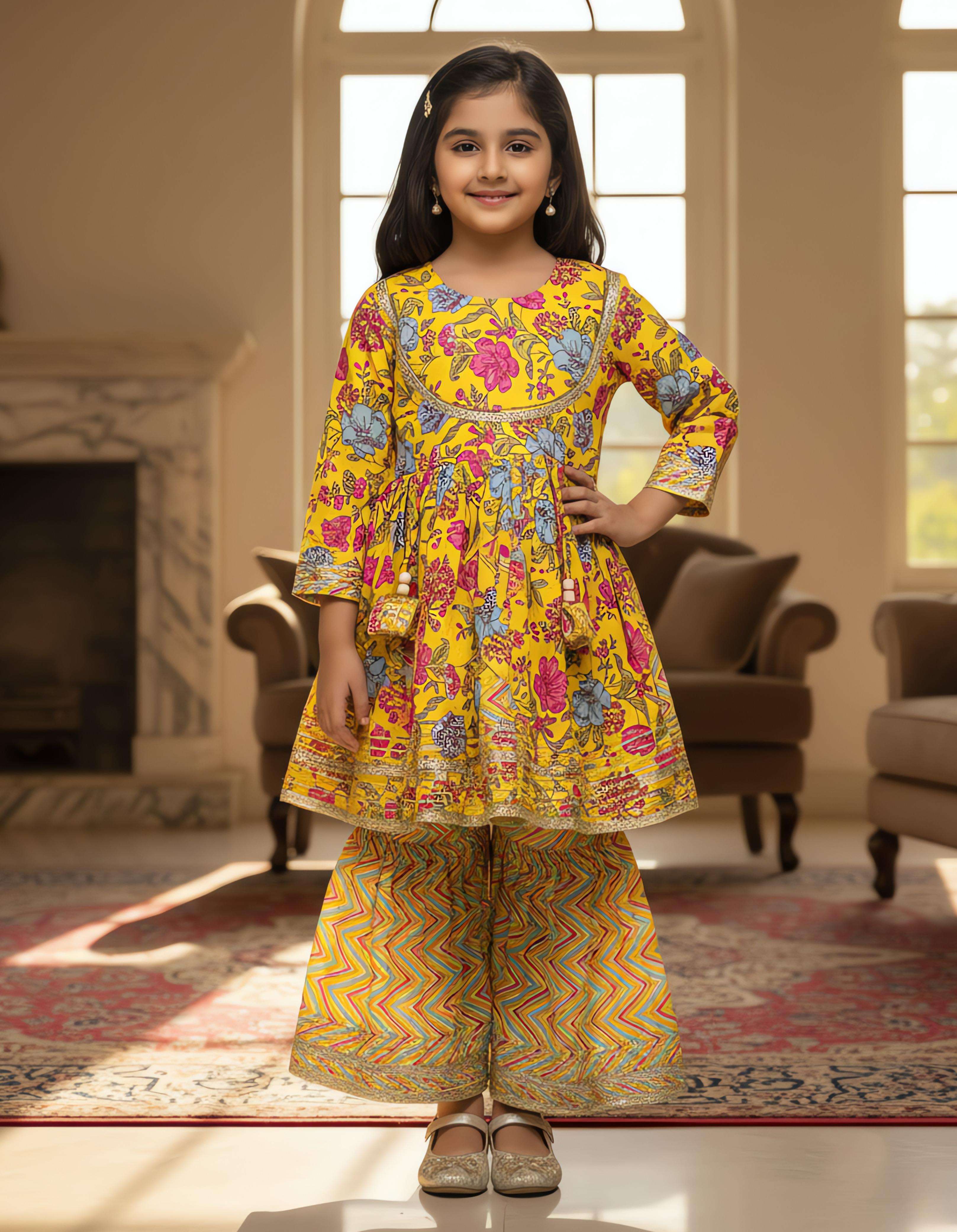 BRANDED TRADITIONAL KIDS WEAR GIRL KURTA KEDIYA SHARARA DEALER SURAT PF