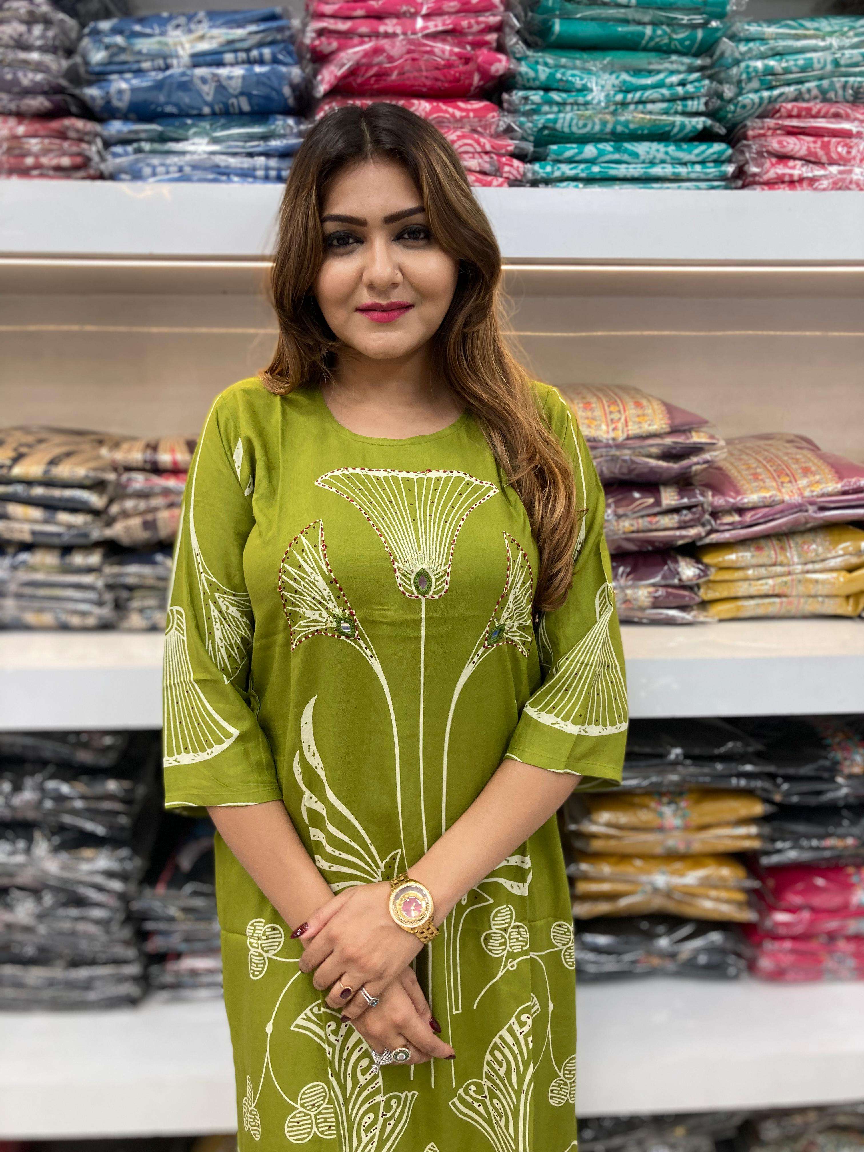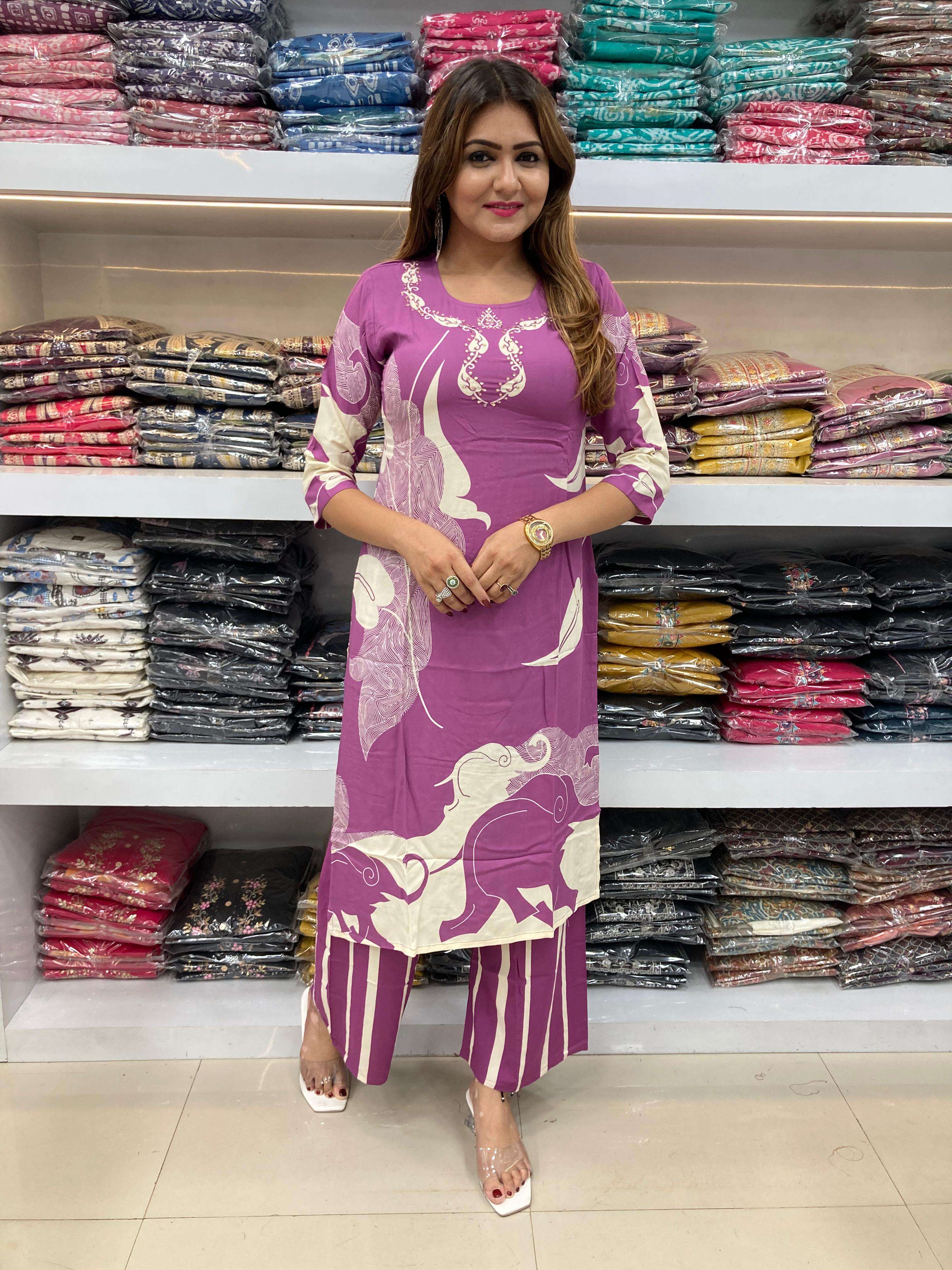 Kurta & plazo set 22 kg rayon fabric Placement print with Hand sequence work n mirror work Size mantion on photos