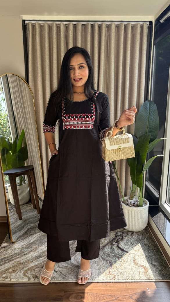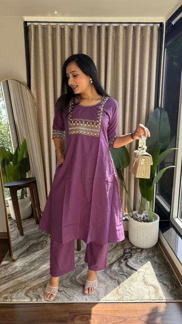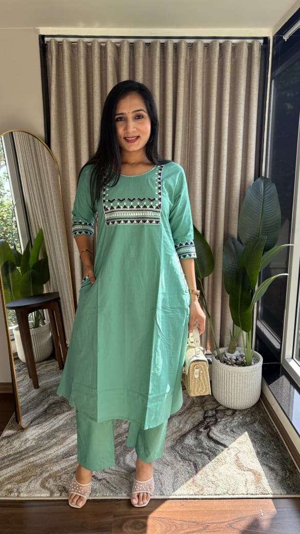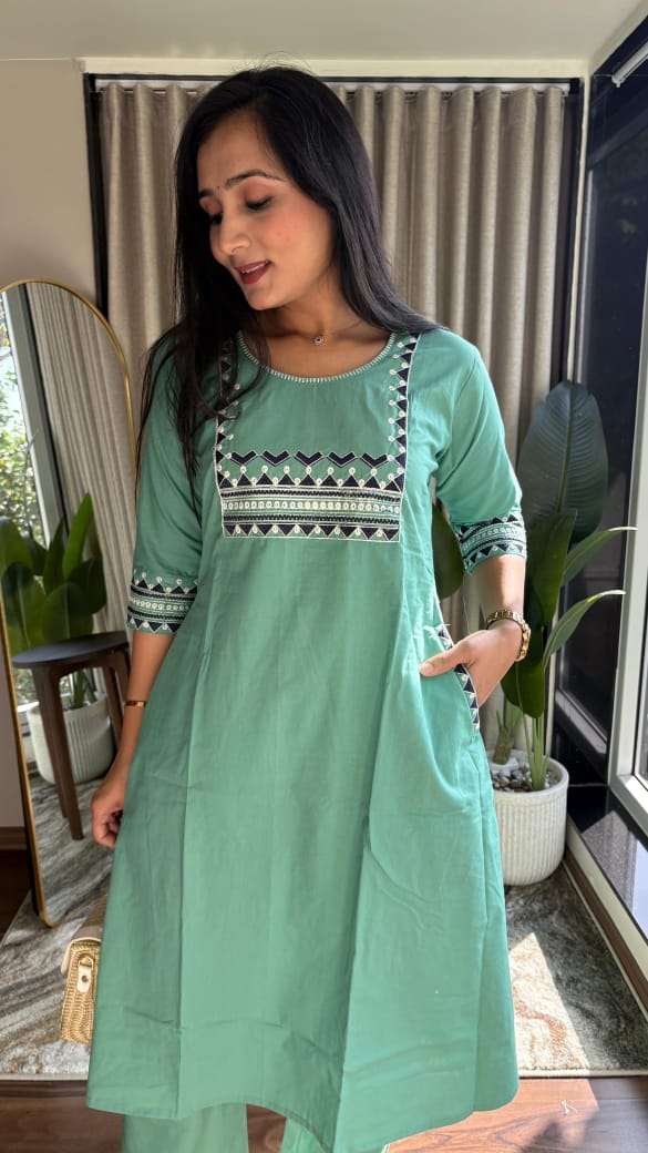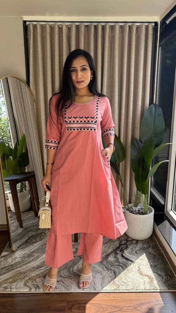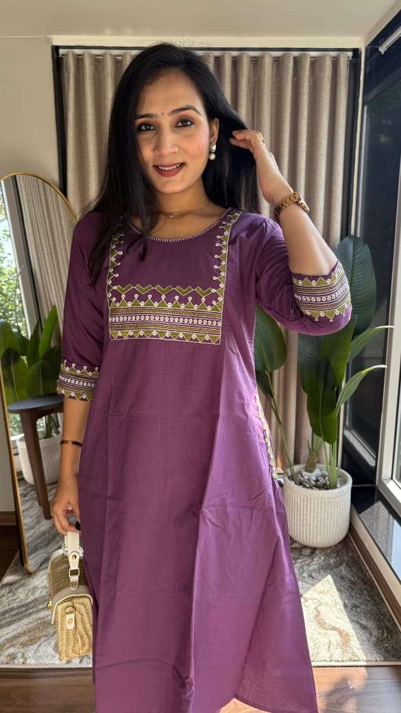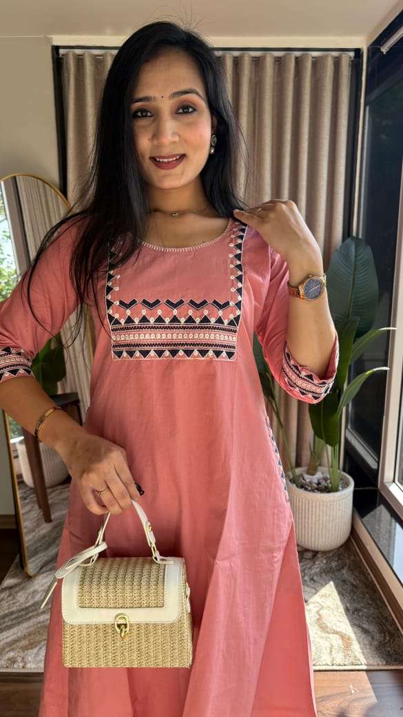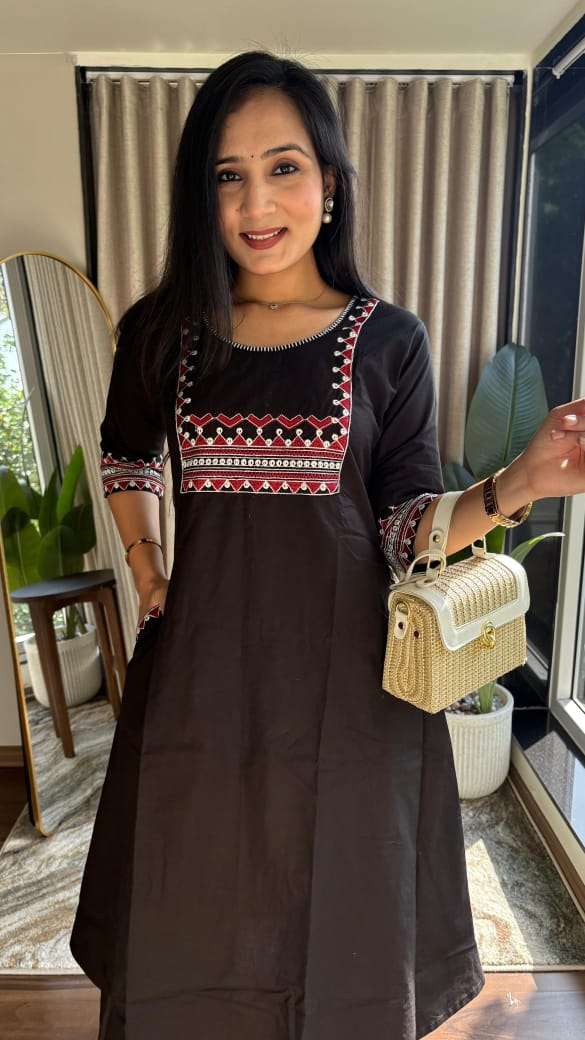 FABRIC:- PRIMIUM NATURAL DHABU COTTON Aline kurti with double side pocket work BEAUTIFUL EMRODIARY PATCH ON NACK AND DOUBLE POCKET & Beautiful Solid Colors M To 4XL Size Sets