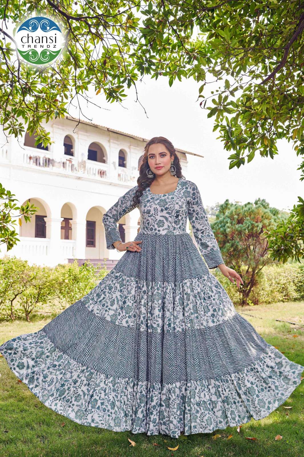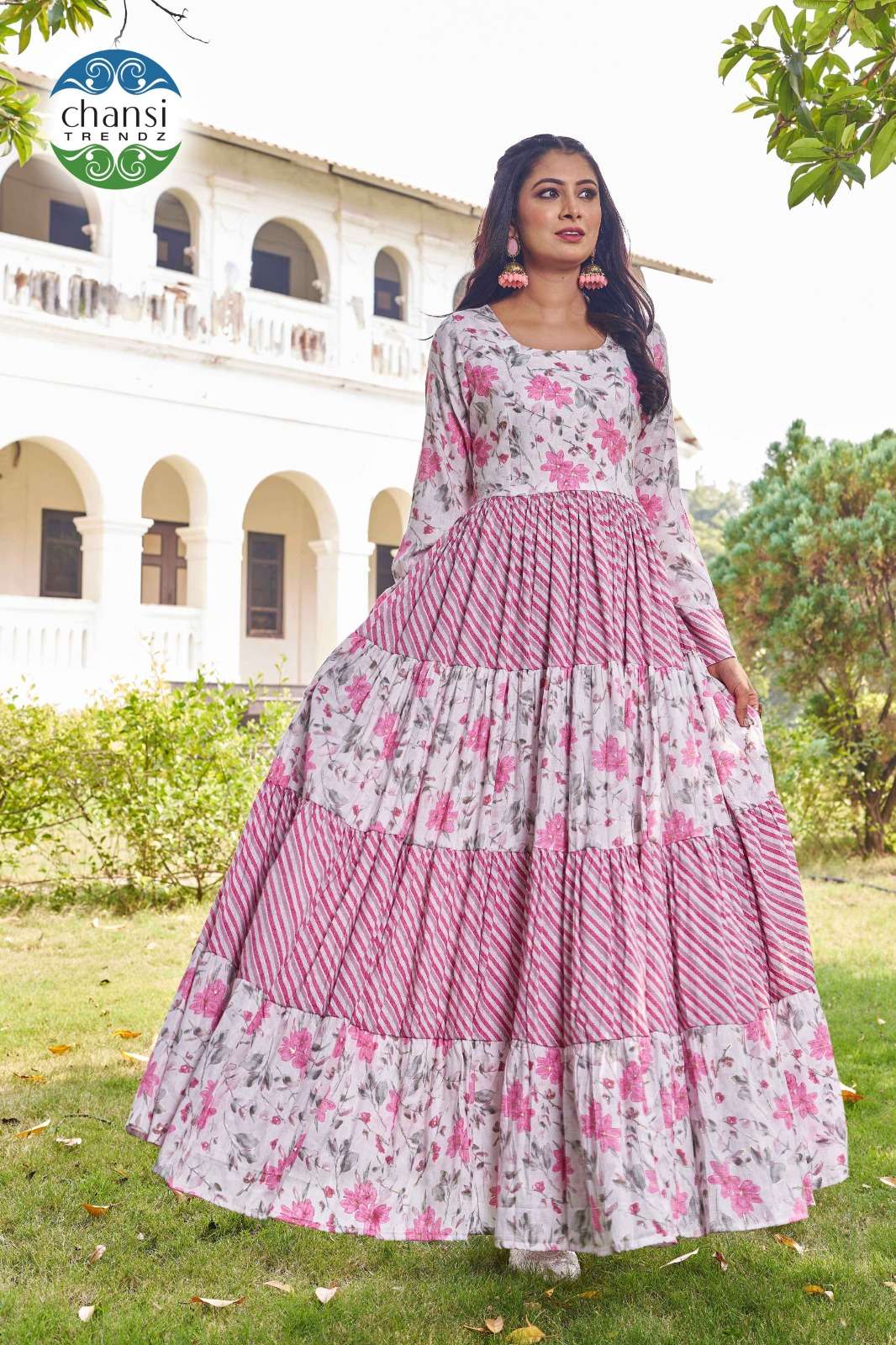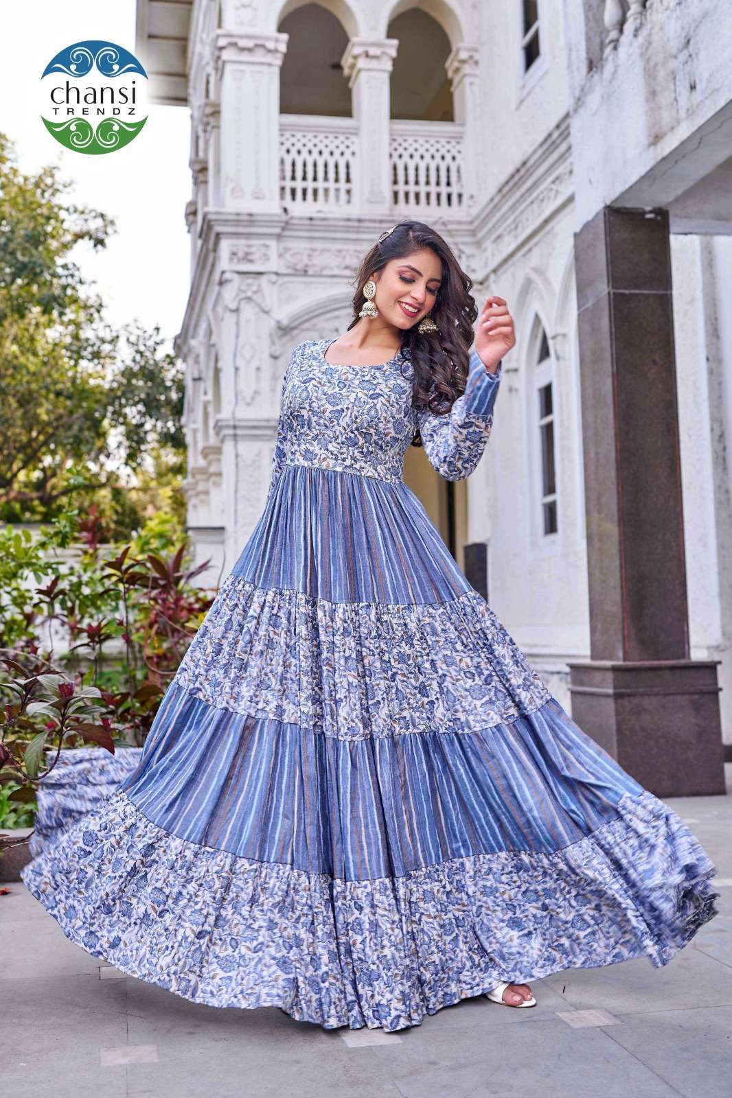 Buy Online CHANSI TRENDS HIRANYASRI LONG GOWN COLLECTION FUNCTION INDIAN BUY 4 Pcs of Full Catalogue at Wholesale Price. Looking for CHANSI TRENDS HIRANYASRI LONG GOWN COLLECTION FUNCTION INDIAN BUY Full Catalouge at Best Price? Buy Now CHANSI TRENDS HIRANYASRI LONG GOWN COLLECTION FUNCTION INDIAN BUY at Wholesale Rate of Rs 4960 with Total 4 Pcs from authroized dealer and supplier of FF Brand. Cost of Each piece is just only Rs 1240 which is very low and affordable price to resale the product in your retail store Ethnic Export is Surat based Wholesale Supplier & Dealer of FF Brand. Click on Brand name to Know more about FF Brand's products.Call or Whatsapp on +91-9825759366 for booking or enquiry