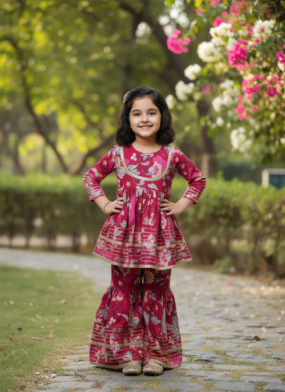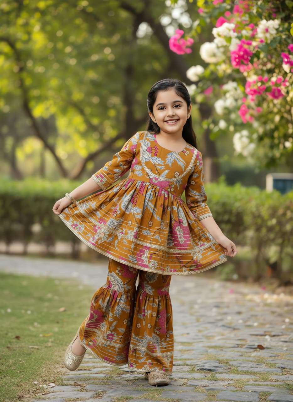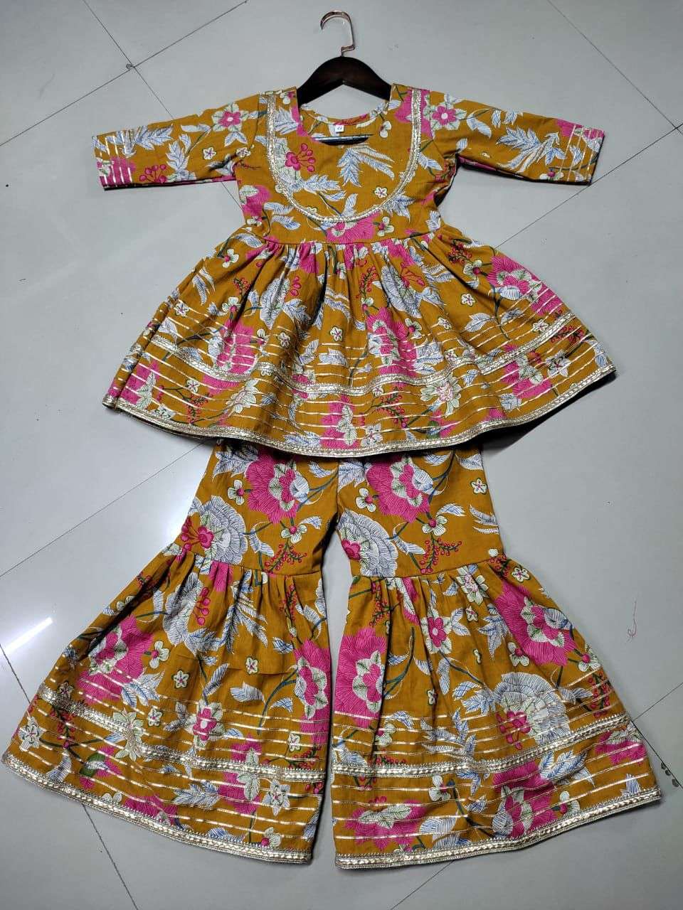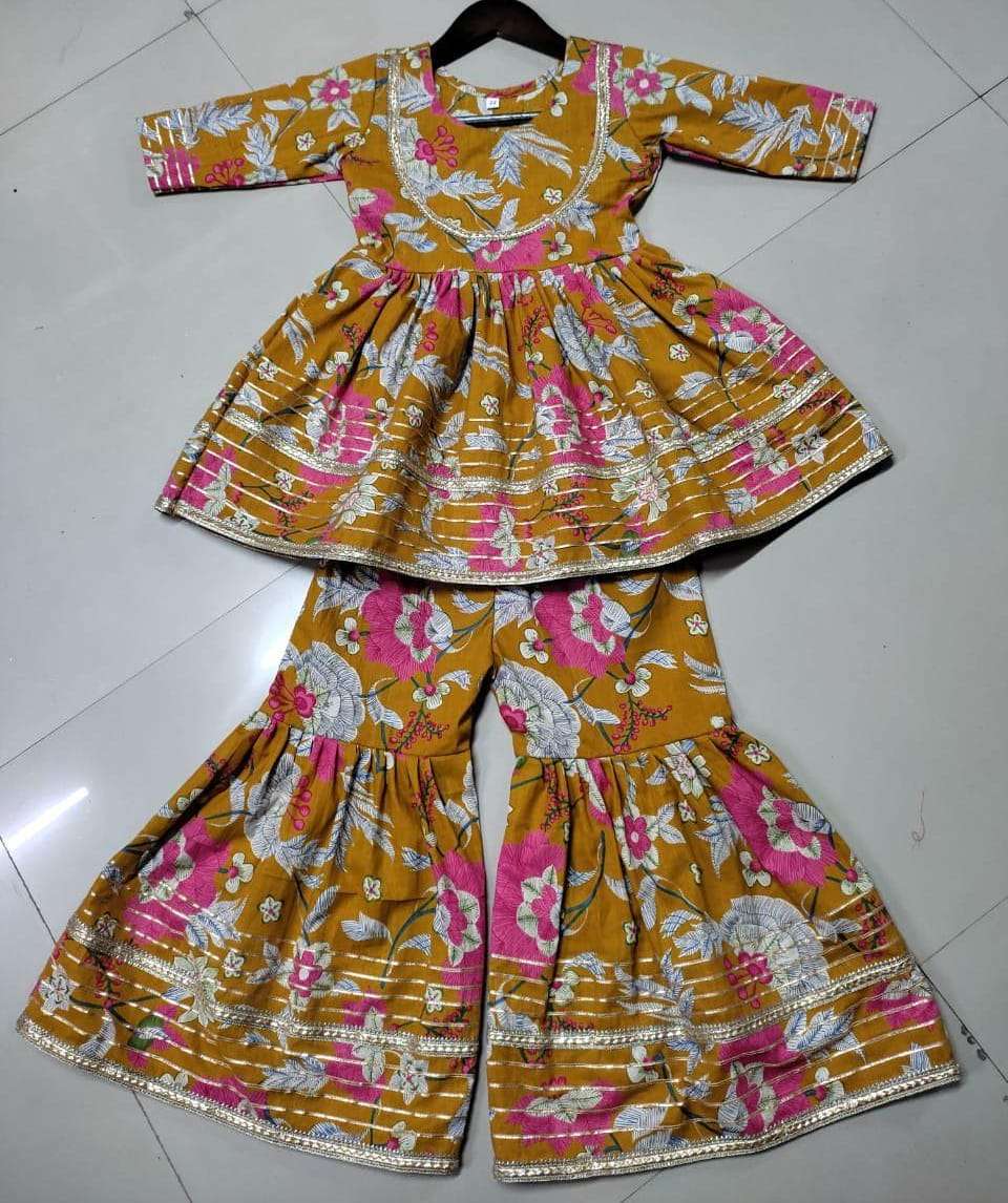 CHILDREN GIRLS WEAR PRETTY EXCLUSIVE KURTA KEDIYA WITH SHARARA SUIT EXPORT PF