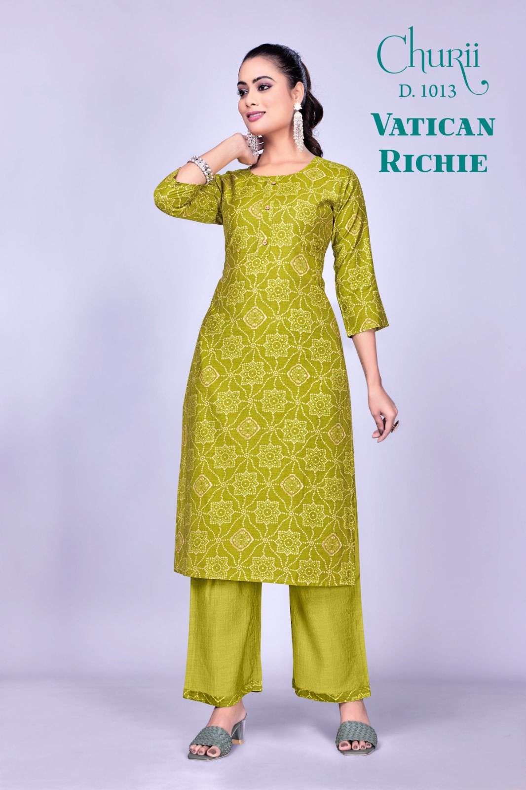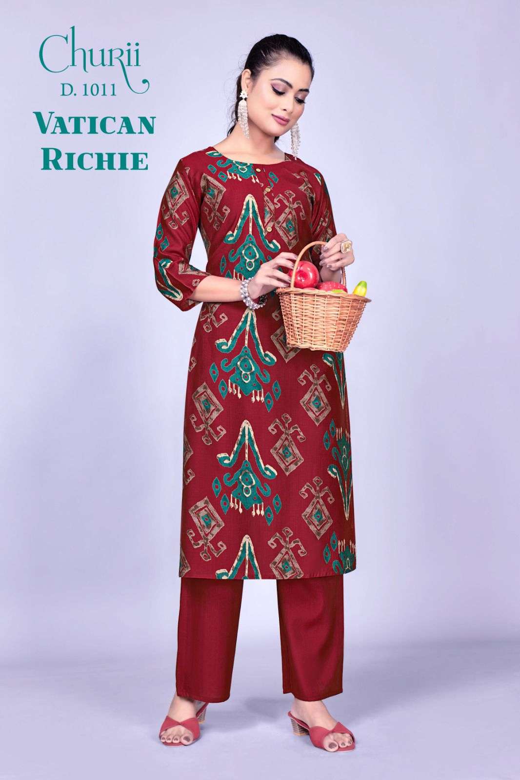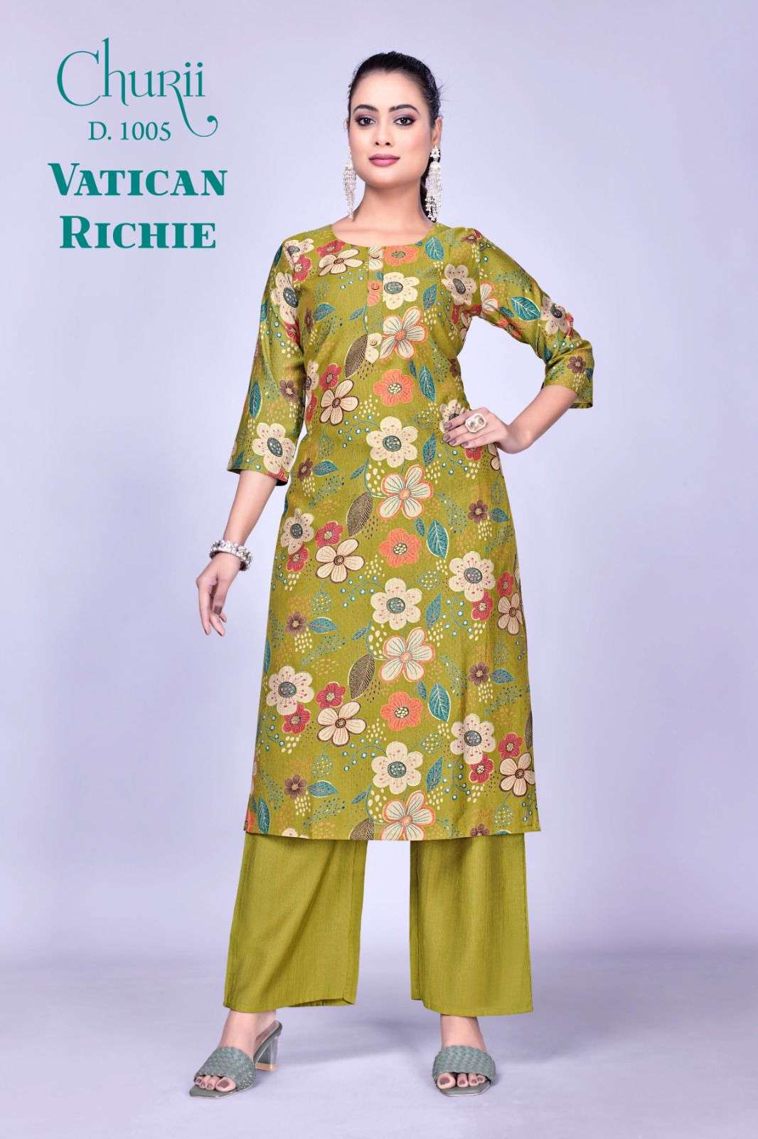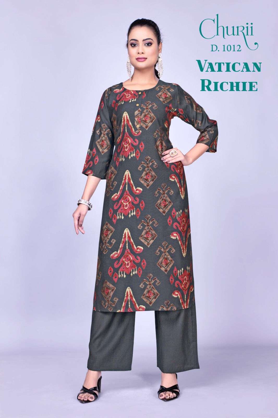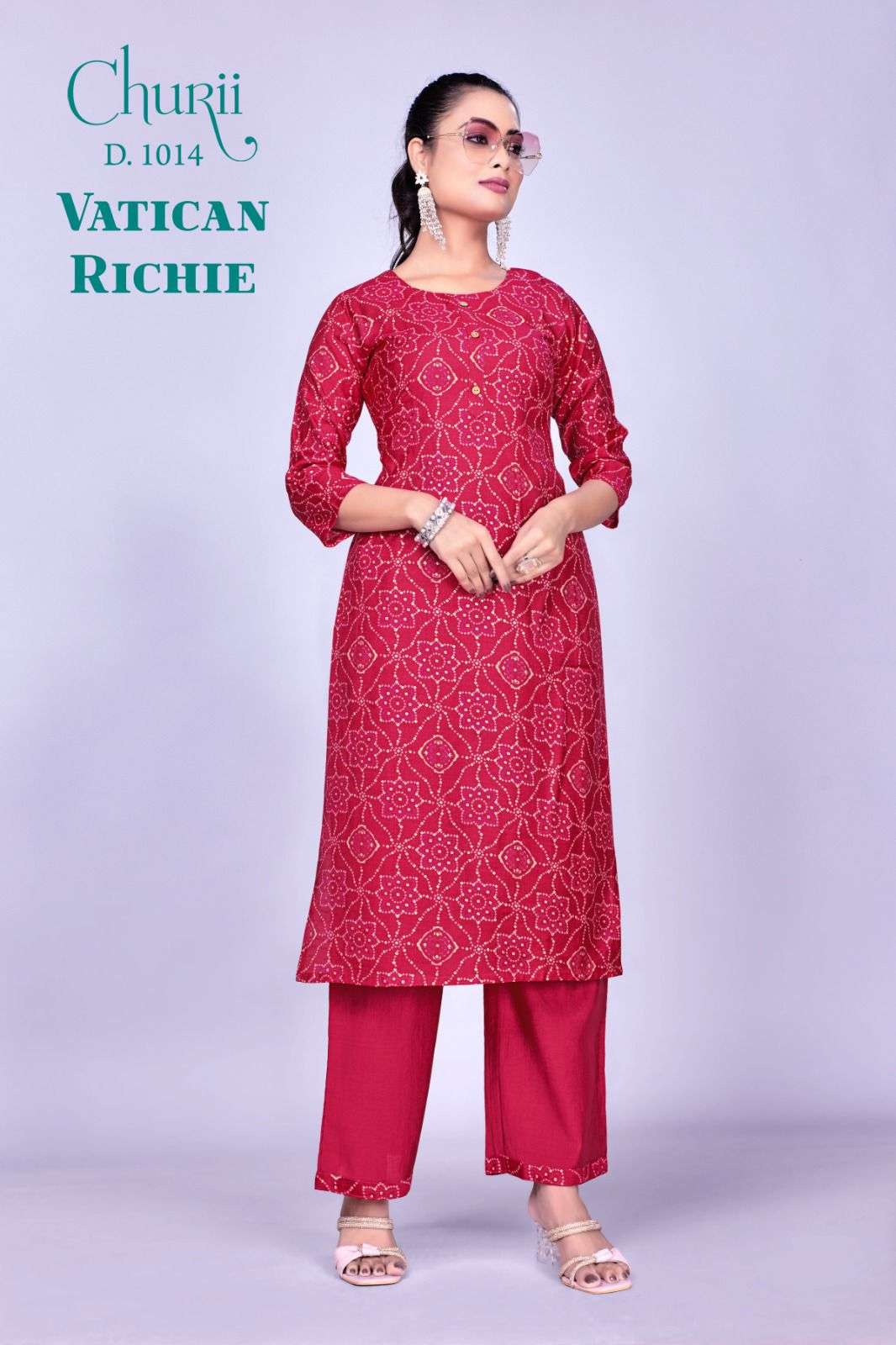 Buy Online CHURII 1014 VATICAN RICHIE BRAND QUALITY WESTERN LOOK CORD SET FOR WOMEN 14 Pcs of Full Catalogue at Wholesale Price. Looking for CHURII 1014 VATICAN RICHIE BRAND QUALITY WESTERN LOOK CORD SET FOR WOMEN Full Catalouge at Best Price? Buy Now CHURII 1014 VATICAN RICHIE BRAND QUALITY WESTERN LOOK CORD SET FOR WOMEN at Wholesale Rate of Rs 8750 with Total 14 Pcs from authroized dealer and supplier of FF Brand. Cost of Each piece is just only Rs 625 which is very low and affordable price to resale the product in your retail store Ethnic Export is Surat based Wholesale Supplier & Dealer of FF Brand. Click on Brand name to Know more about FF Brand's products.Call or Whatsapp on +91-9825759366 for booking or enquiry