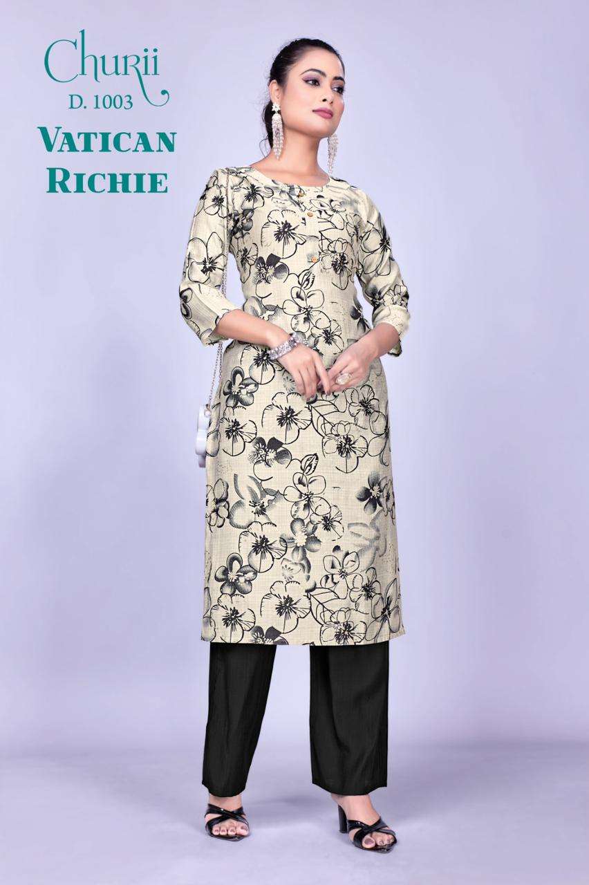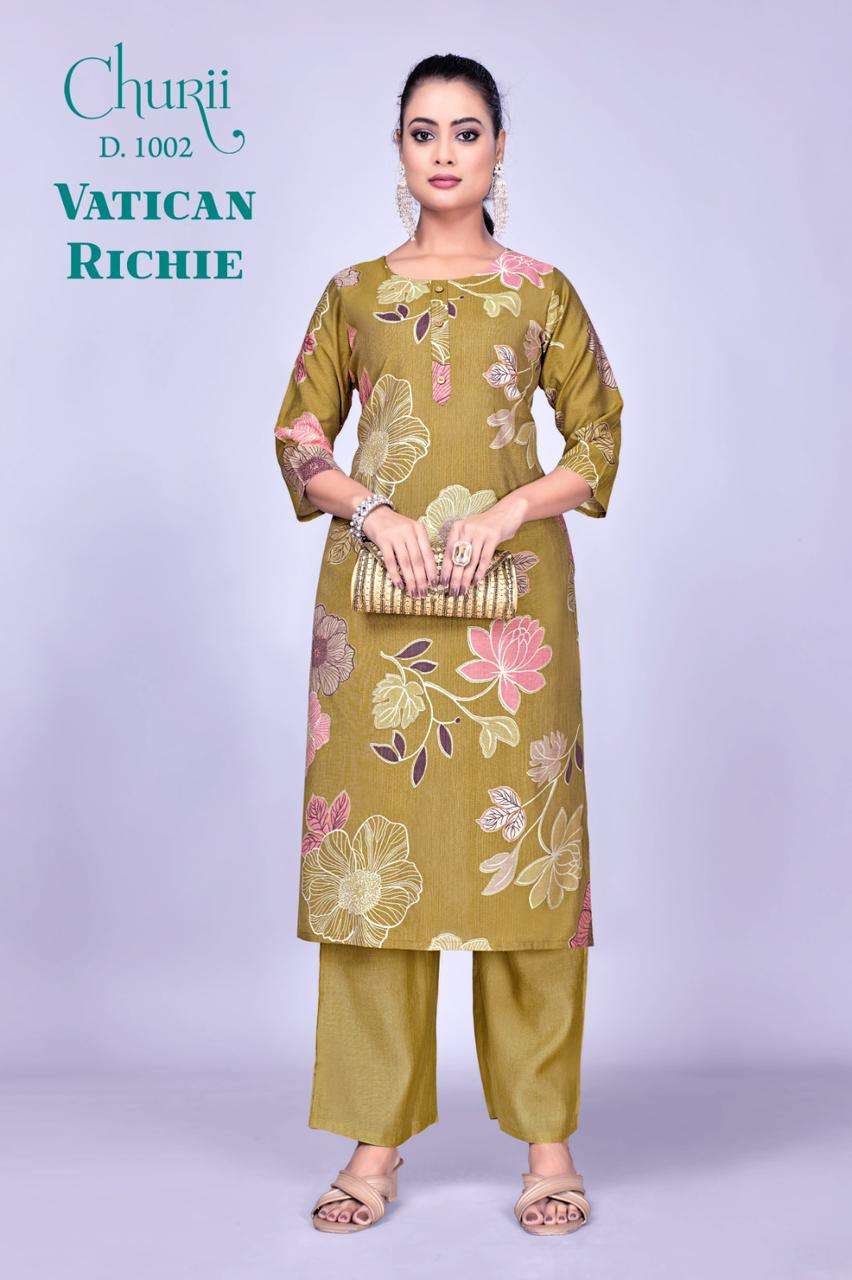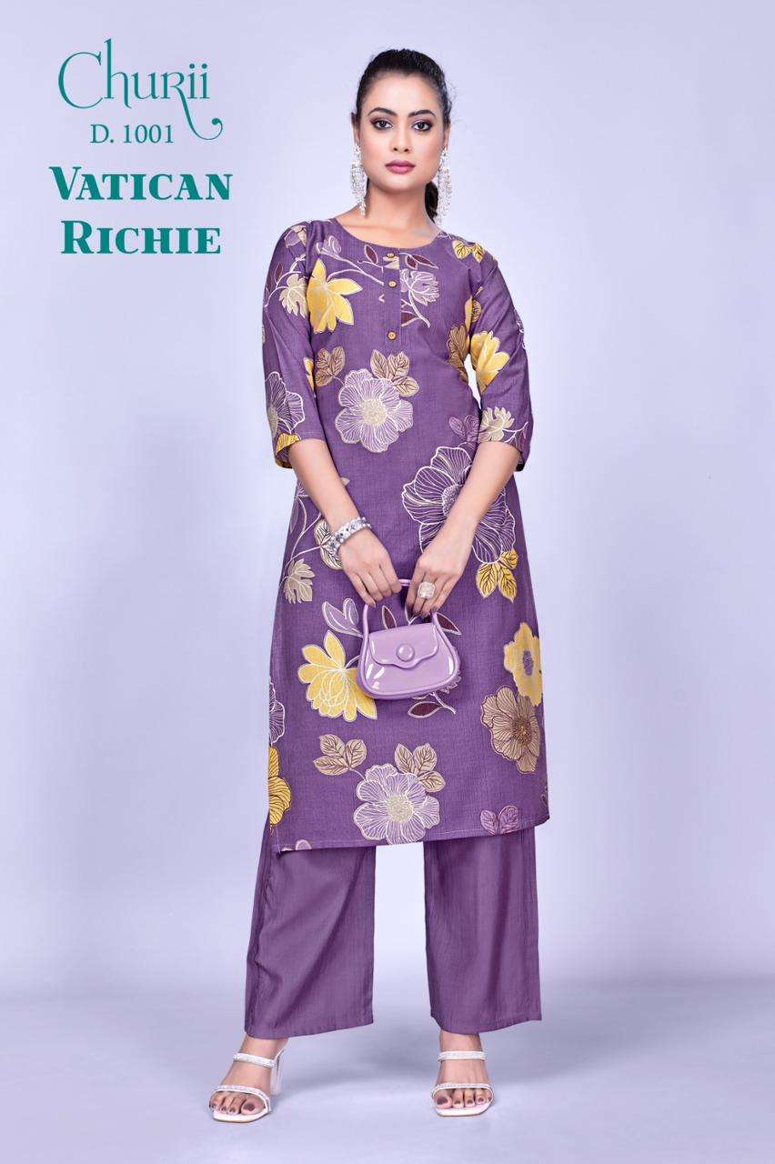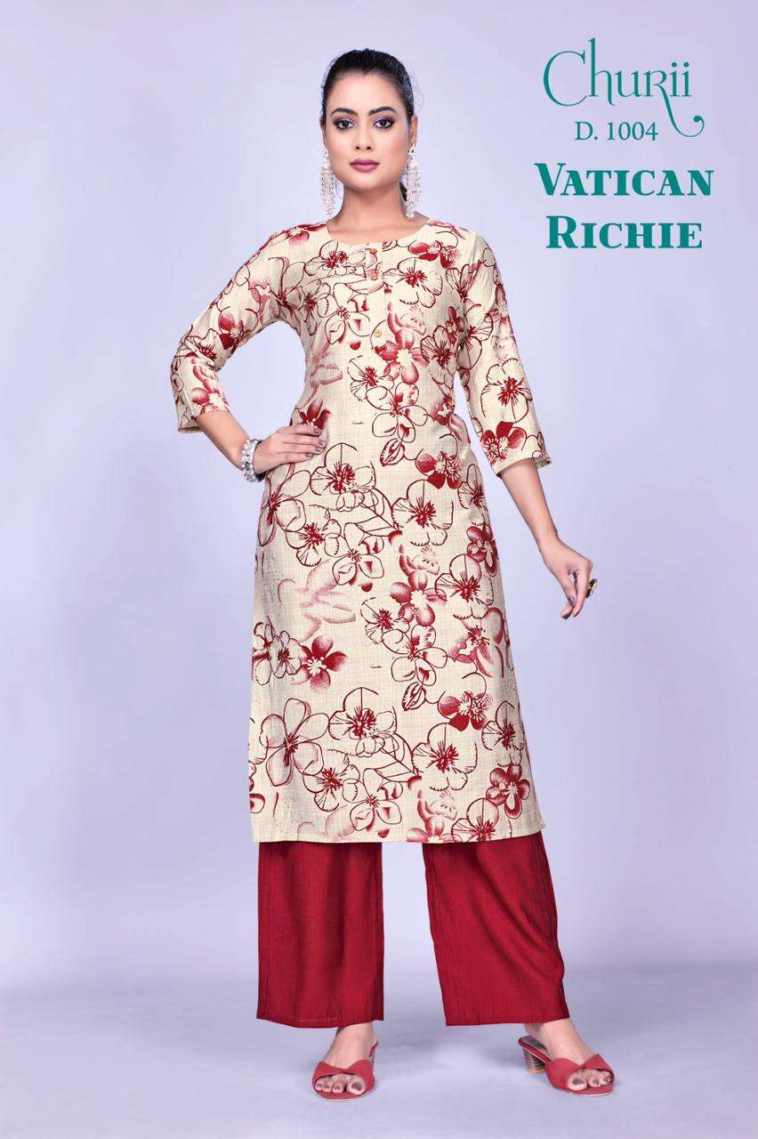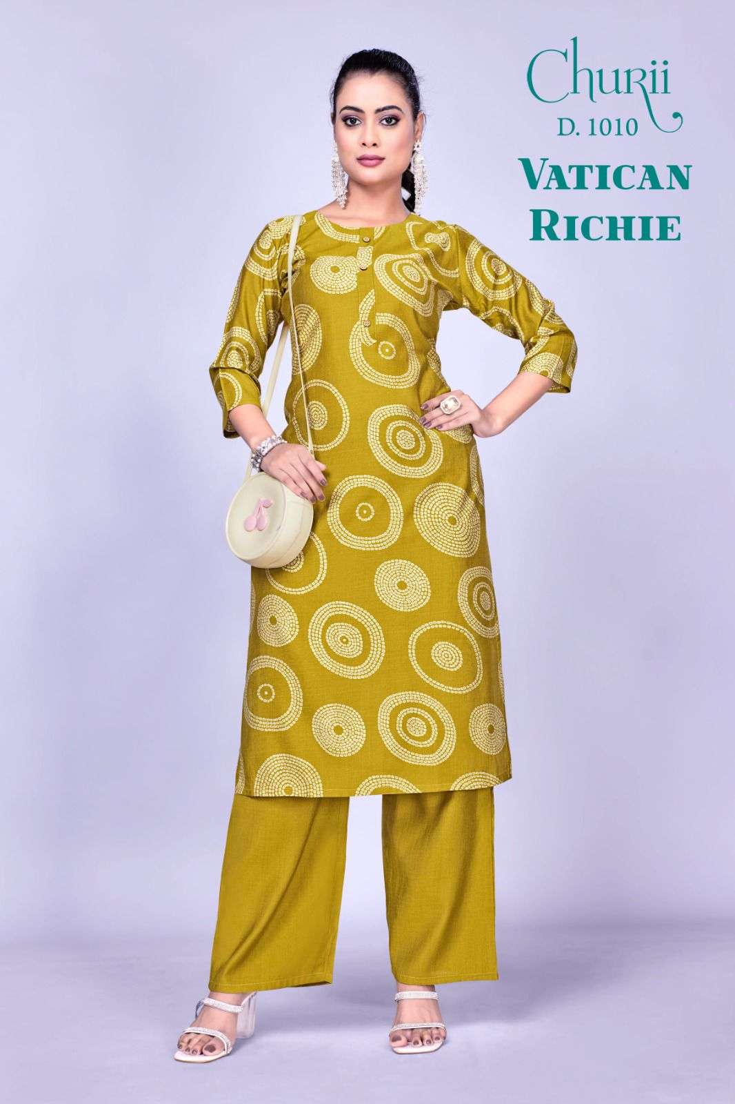 Buy Online CHURII 1014 VATICAN RICHIE BRAND QUALITY WESTERN LOOK CORD SET FOR WOMEN 14 Pcs of Full Catalogue at Wholesale Price. Looking for CHURII 1014 VATICAN RICHIE BRAND QUALITY WESTERN LOOK CORD SET FOR WOMEN Full Catalouge at Best Price? Buy Now CHURII 1014 VATICAN RICHIE BRAND QUALITY WESTERN LOOK CORD SET FOR WOMEN at Wholesale Rate of Rs 8750 with Total 14 Pcs from authroized dealer and supplier of FF Brand. Cost of Each piece is just only Rs 625 which is very low and affordable price to resale the product in your retail store Ethnic Export is Surat based Wholesale Supplier & Dealer of FF Brand. Click on Brand name to Know more about FF Brand's products.Call or Whatsapp on +91-9825759366 for booking or enquiry