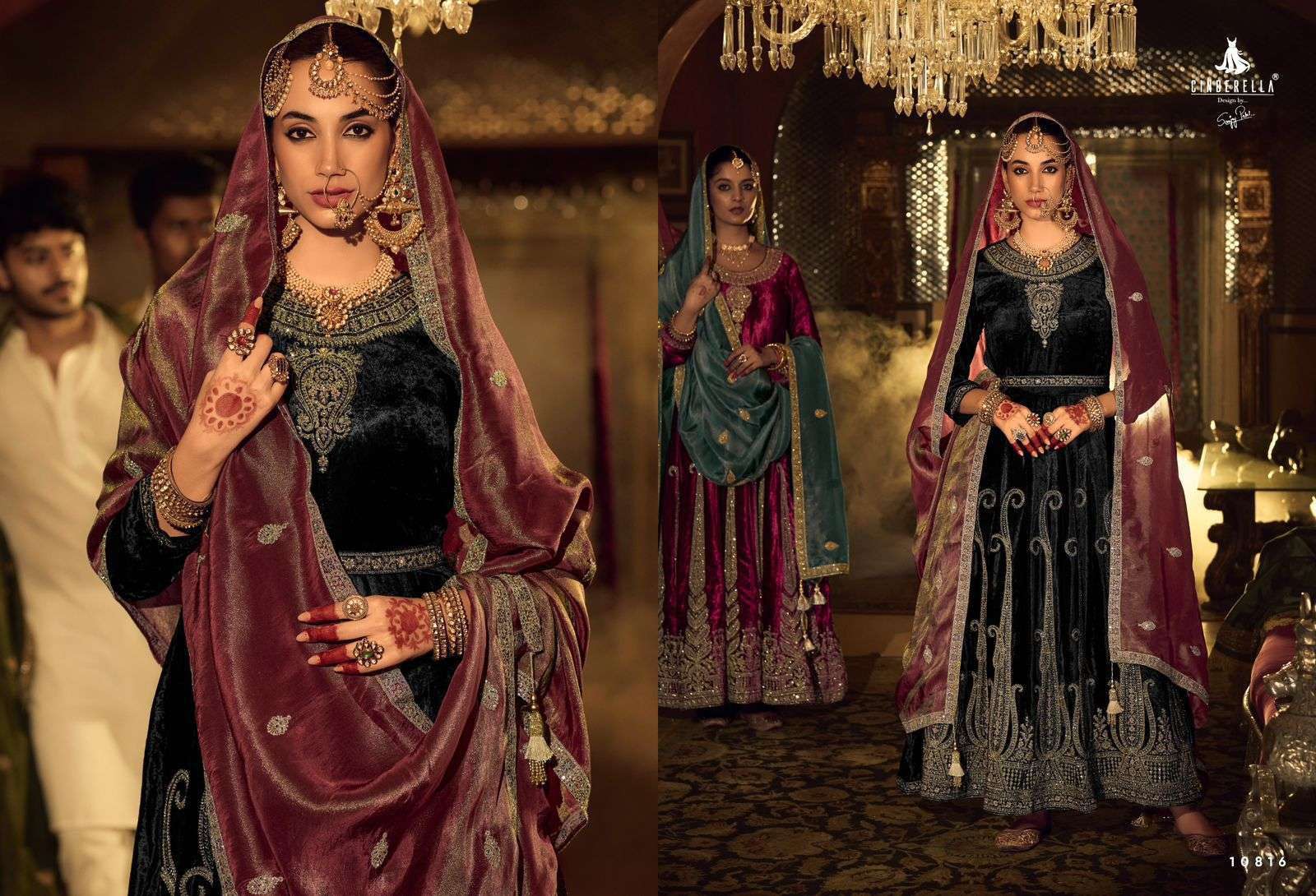 CINDRELLA ANARKALI HIGH BRAND PURE VISCOSE VELVET EMBROIDERY WORK LONG GOWN SUIT TO WEDDING CLOTH