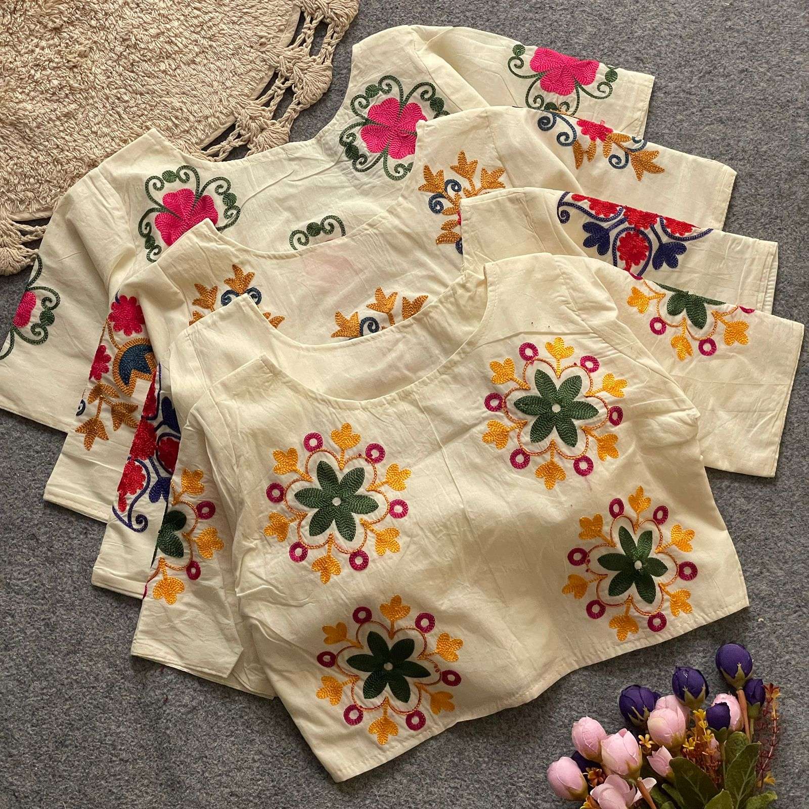 COTTON FABRIC HAND EMBROIDERY WORK STICH BLOUSE BEST COLLECTION R