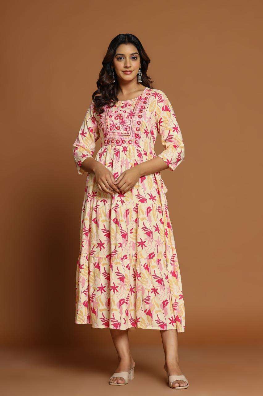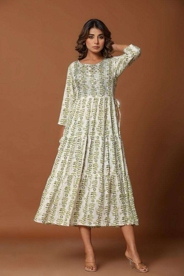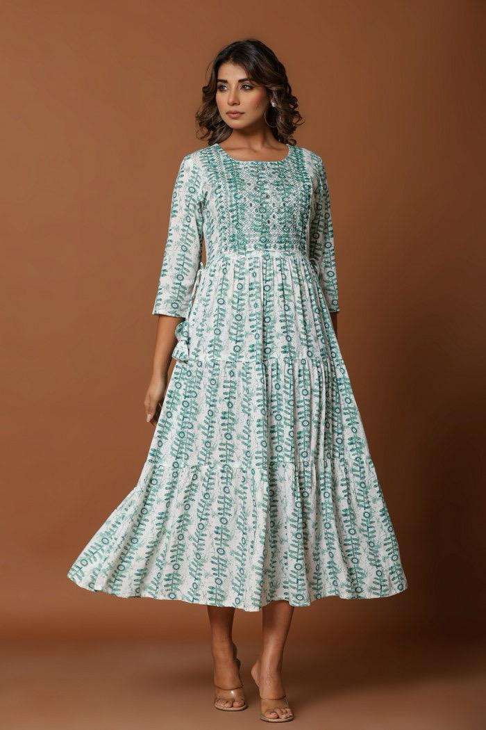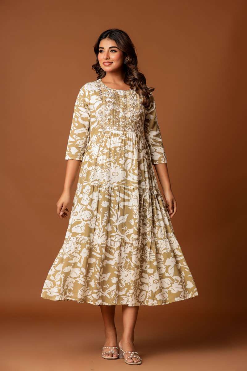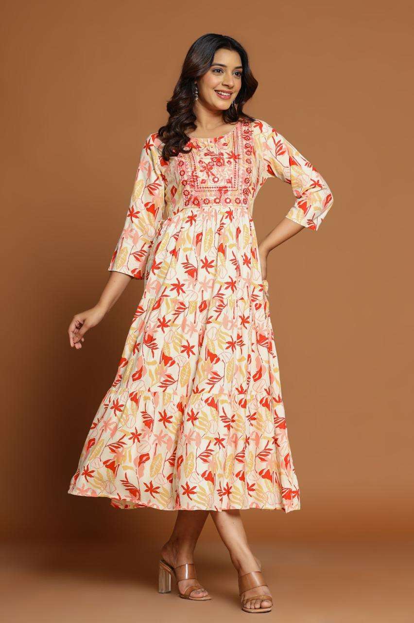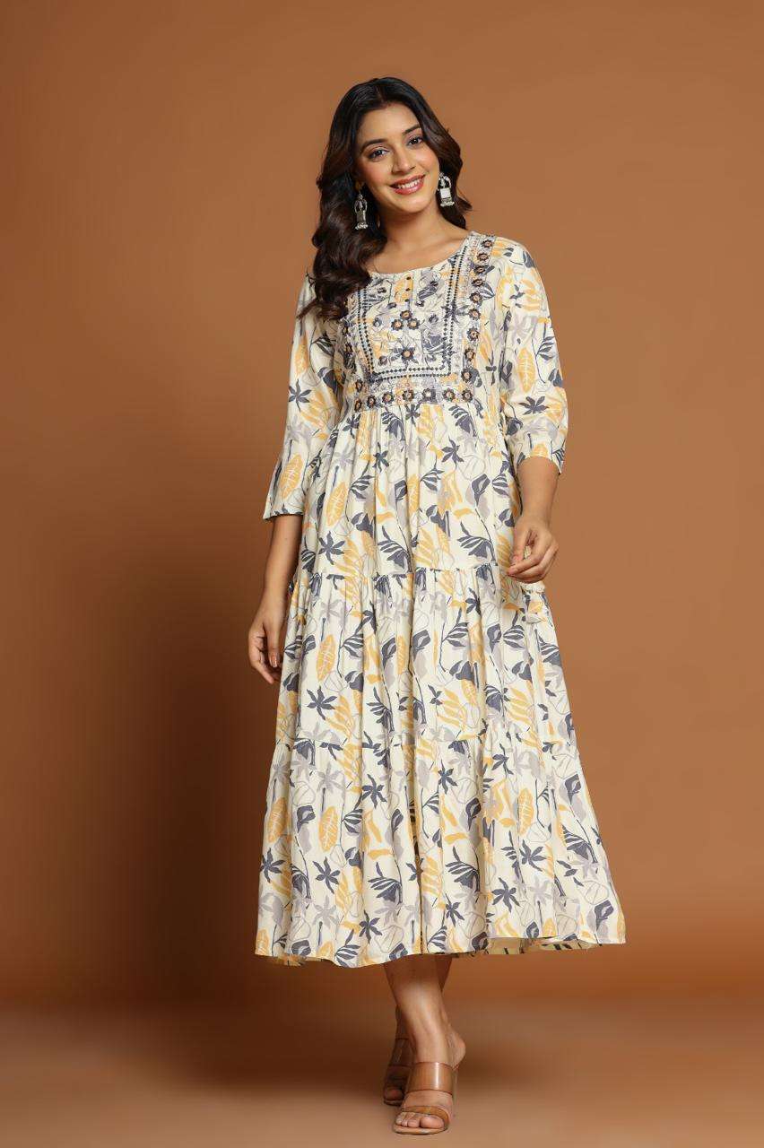 Buy Online COTTON FLORAL PRINT LONG ONE PIECE COLLECTION BUY ETHNIC FF 30 Pcs of Full Catalogue at Wholesale Price. Looking for COTTON FLORAL PRINT LONG ONE PIECE COLLECTION BUY ETHNIC FF Full Catalouge at Best Price? Buy Now COTTON FLORAL PRINT LONG ONE PIECE COLLECTION BUY ETHNIC FF at Wholesale Rate of Rs 17250 with Total 30 Pcs from authroized dealer and supplier of FF Brand. Cost of Each piece is just only Rs 575 which is very low and affordable price to resale the product in your retail store Ethnic Export is Surat based Wholesale Supplier & Dealer of FF Brand. Click on Brand name to Know more about FF Brand's products.Call or Whatsapp on +91-9825759366 for booking or enquiry