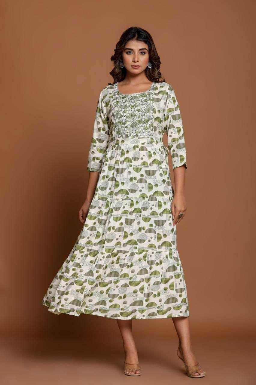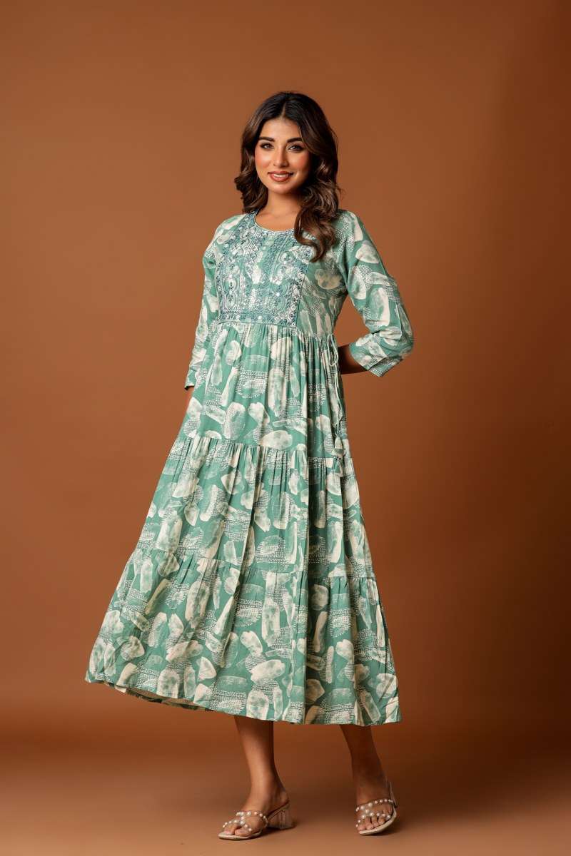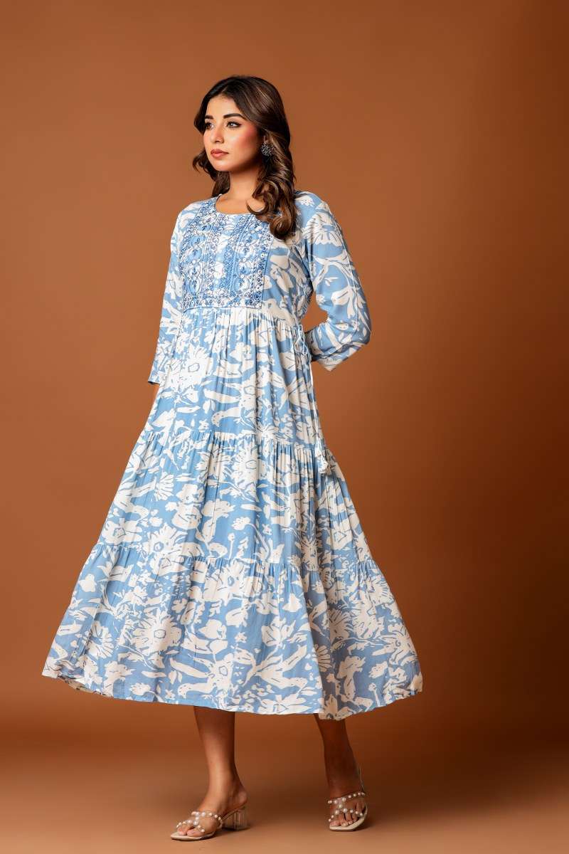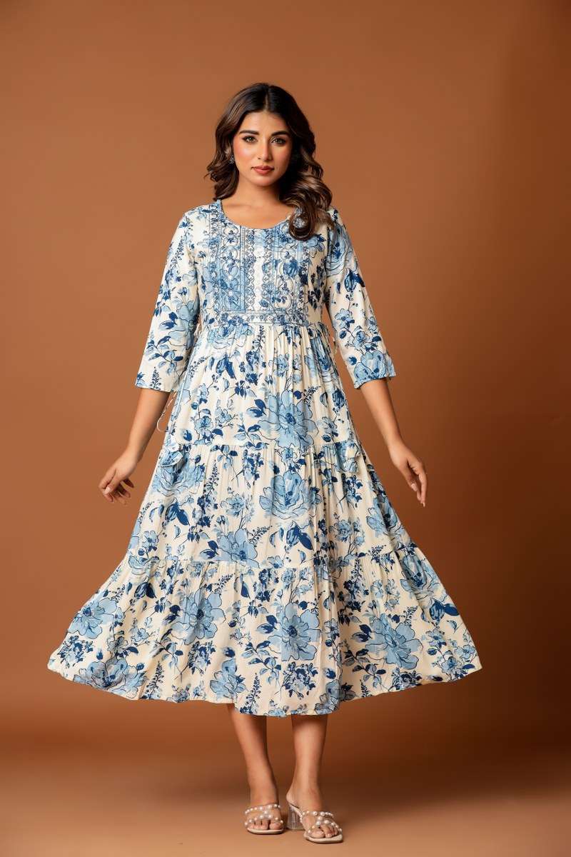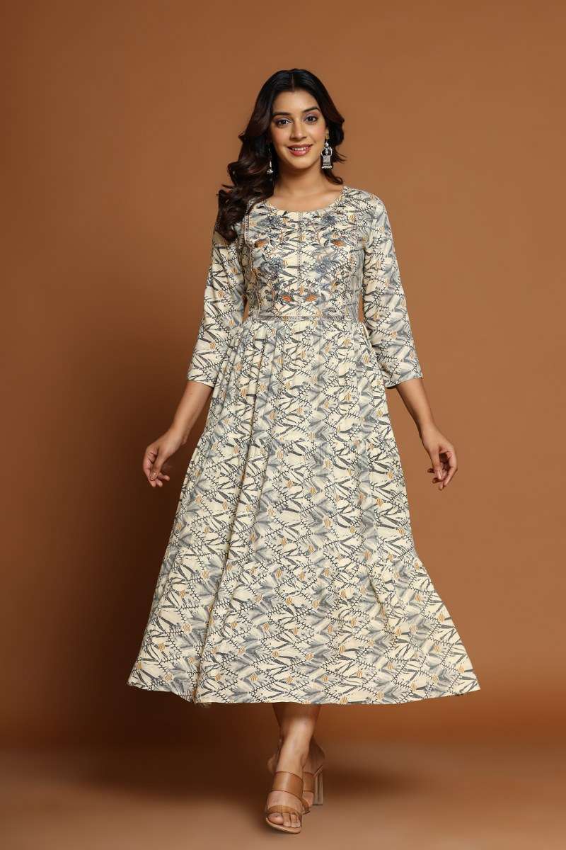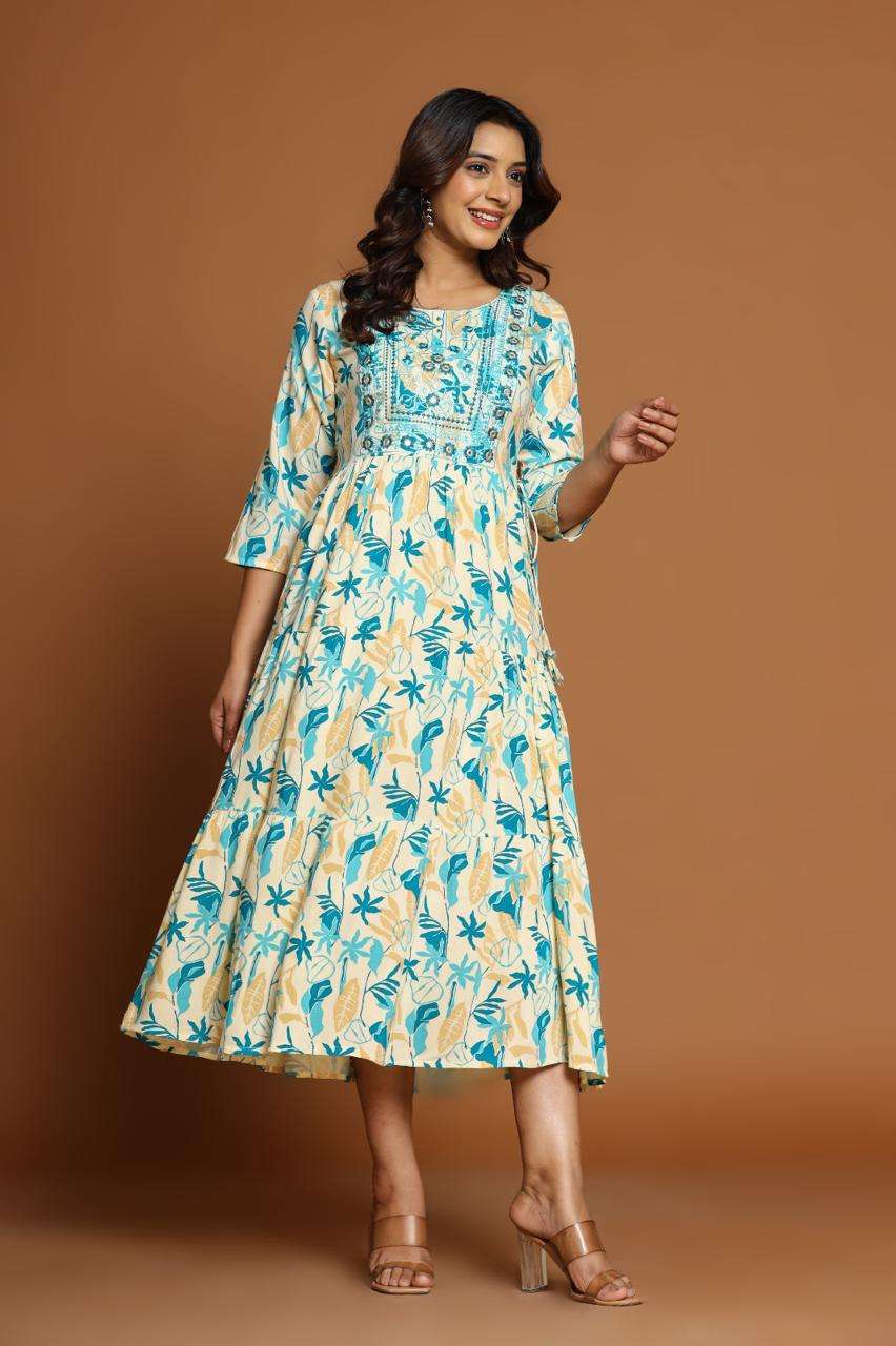 Buy Online COTTON FLORAL PRINT LONG ONE PIECE COLLECTION BUY ETHNIC FF 30 Pcs of Full Catalogue at Wholesale Price. Looking for COTTON FLORAL PRINT LONG ONE PIECE COLLECTION BUY ETHNIC FF Full Catalouge at Best Price? Buy Now COTTON FLORAL PRINT LONG ONE PIECE COLLECTION BUY ETHNIC FF at Wholesale Rate of Rs 17250 with Total 30 Pcs from authroized dealer and supplier of FF Brand. Cost of Each piece is just only Rs 575 which is very low and affordable price to resale the product in your retail store Ethnic Export is Surat based Wholesale Supplier & Dealer of FF Brand. Click on Brand name to Know more about FF Brand's products.Call or Whatsapp on +91-9825759366 for booking or enquiry