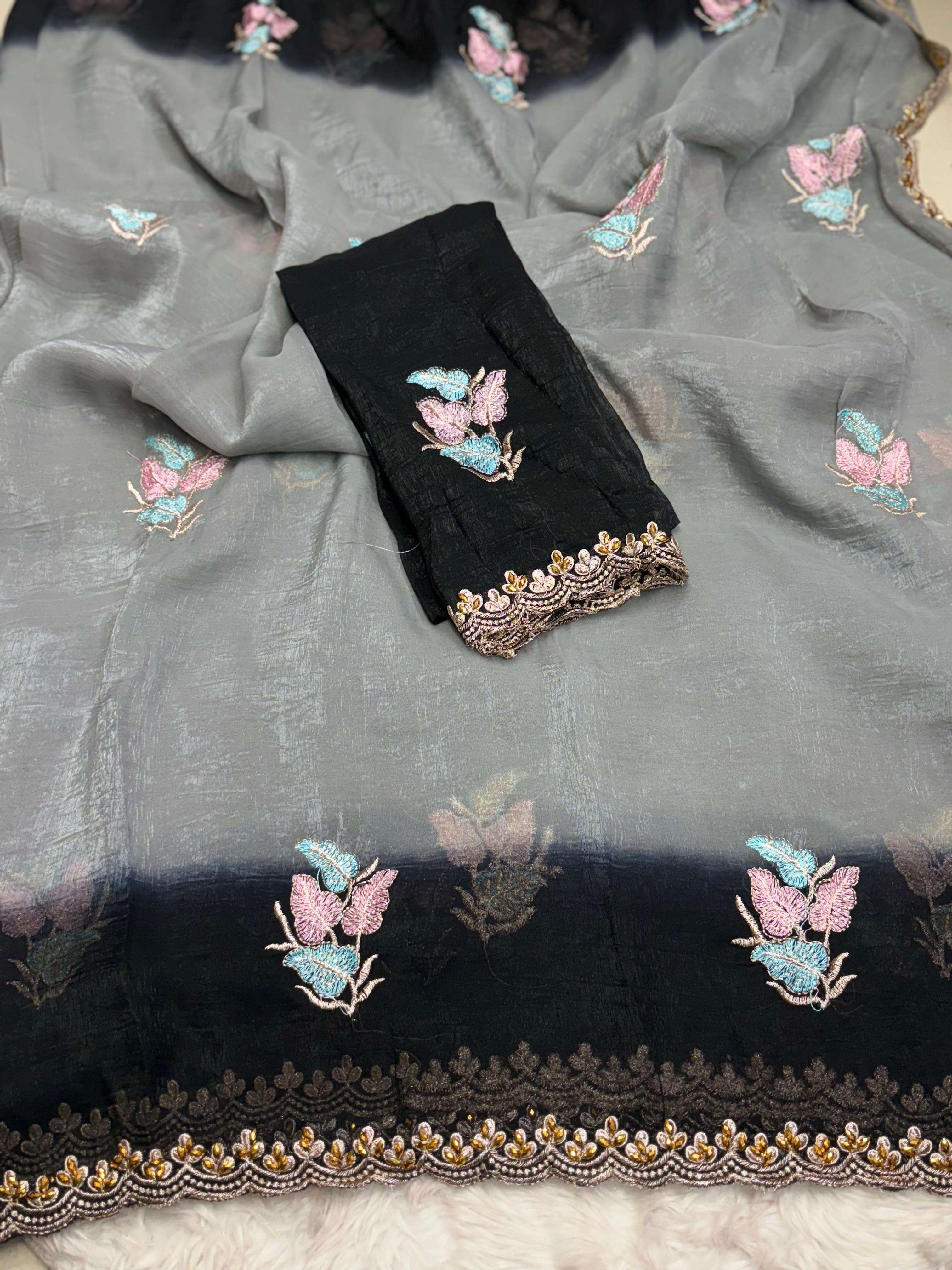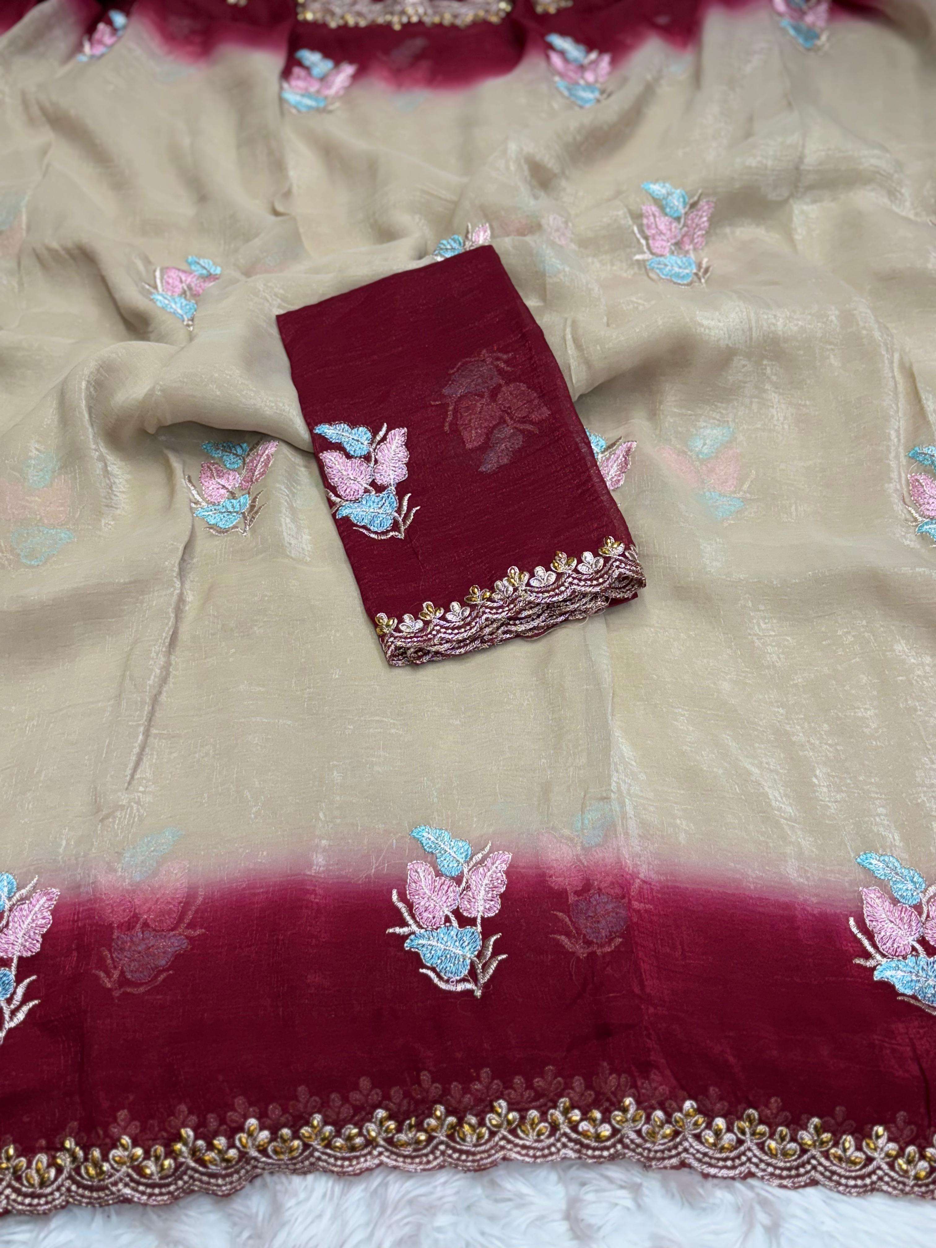 CRUNCHY CHIFFON WITH EMBROIDERY BUTTI ALL OVER SAREE BEST COLLECTION