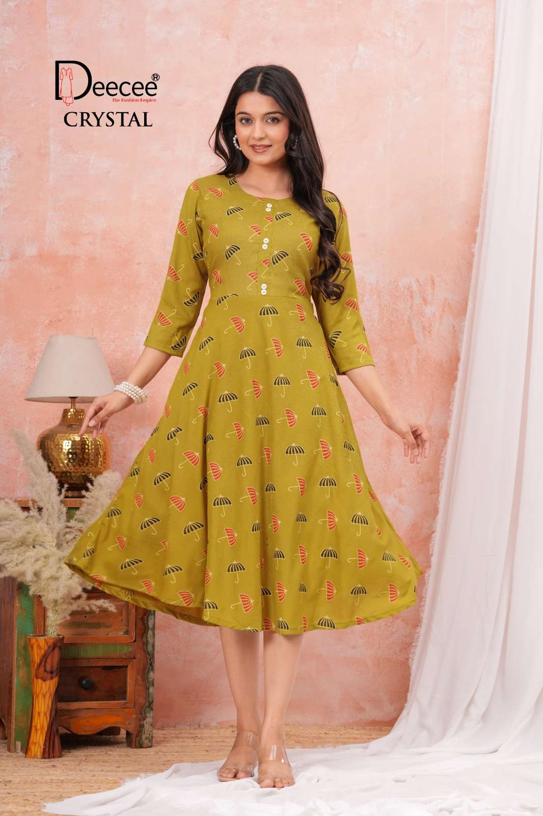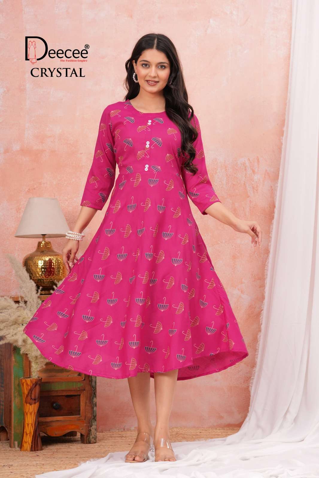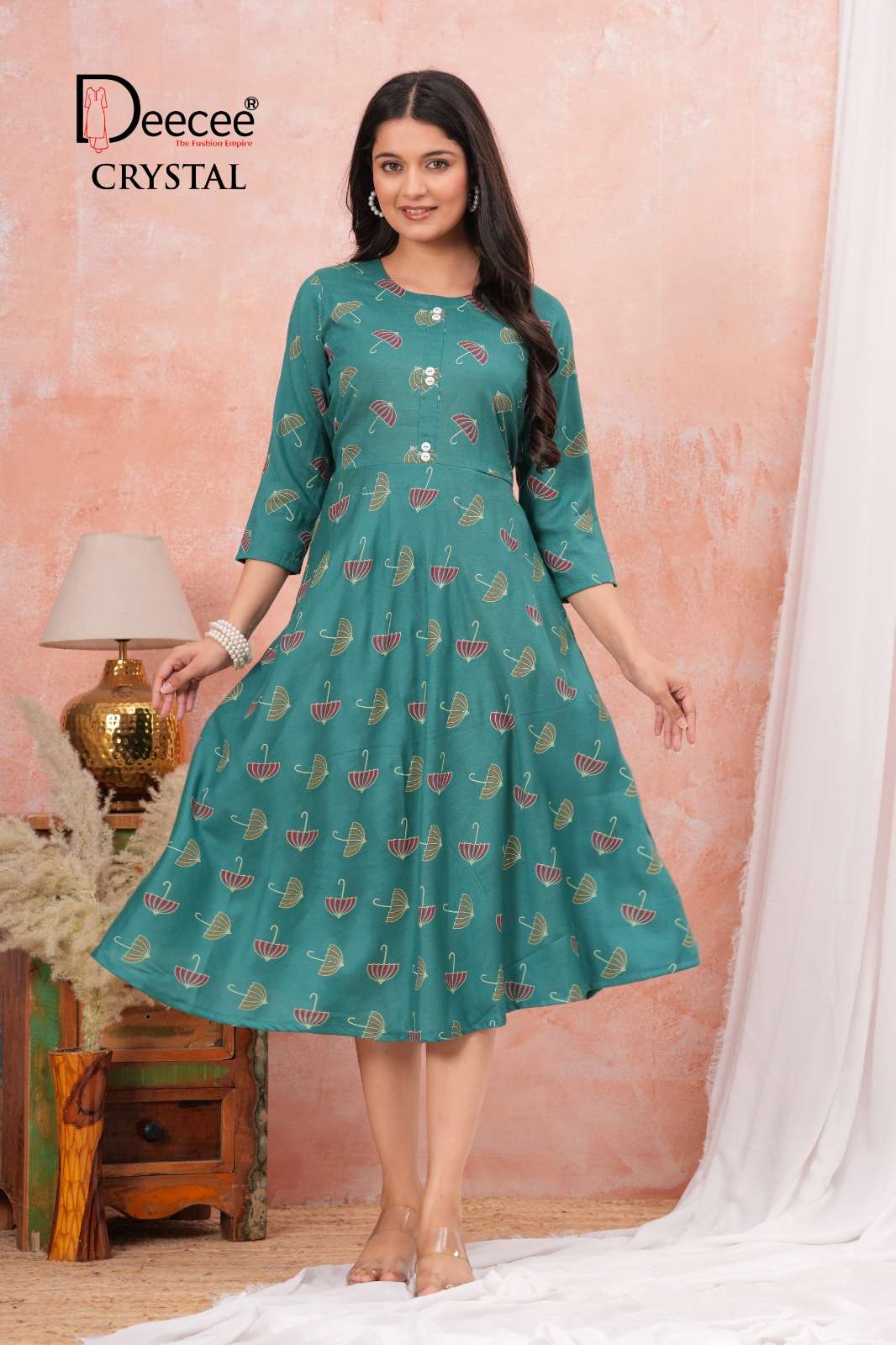 | Title | CRYSTAL TWO TONE PRINTS NEXK BUTTON FLARE KURTI COLLECTION FF |