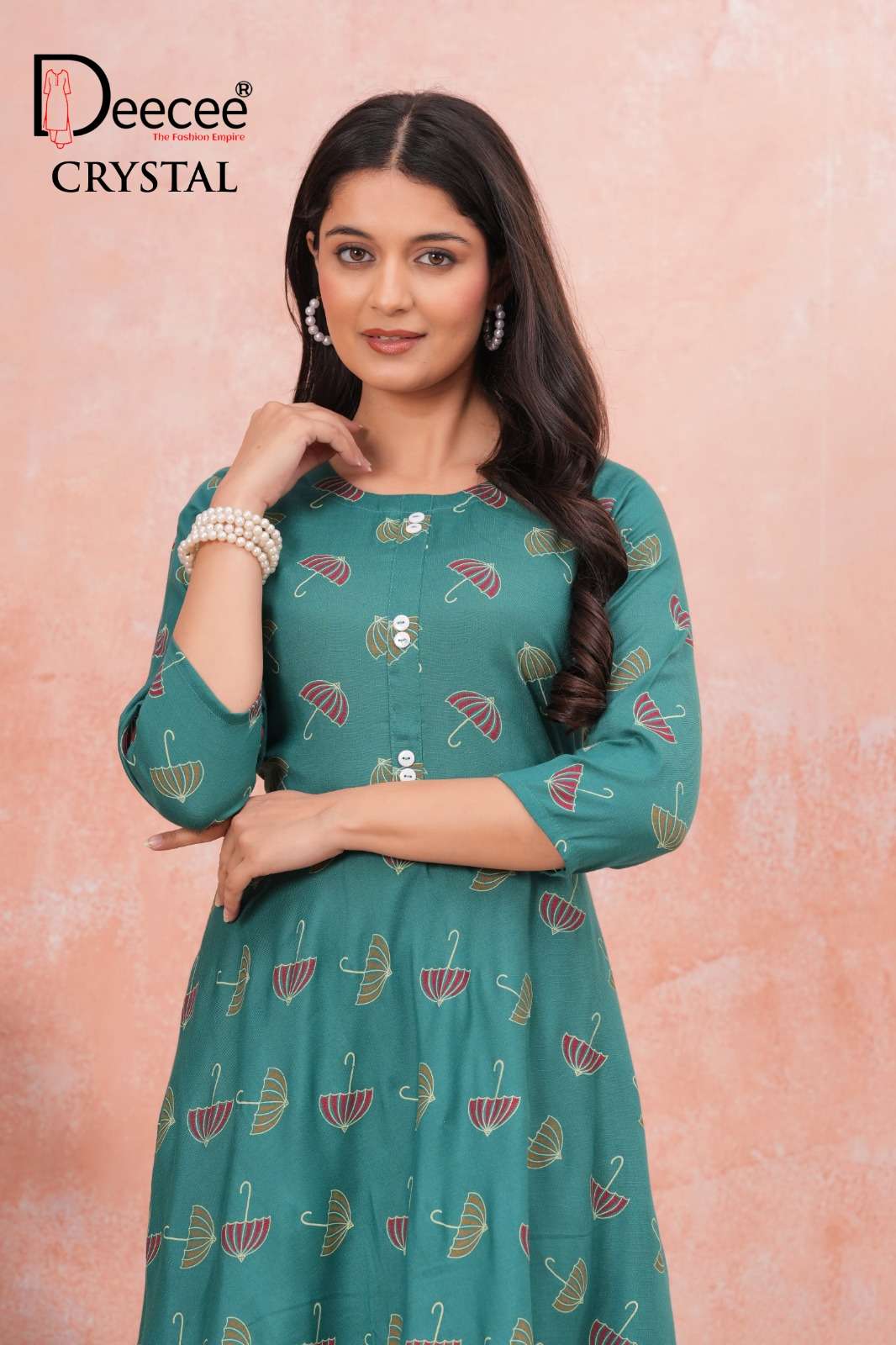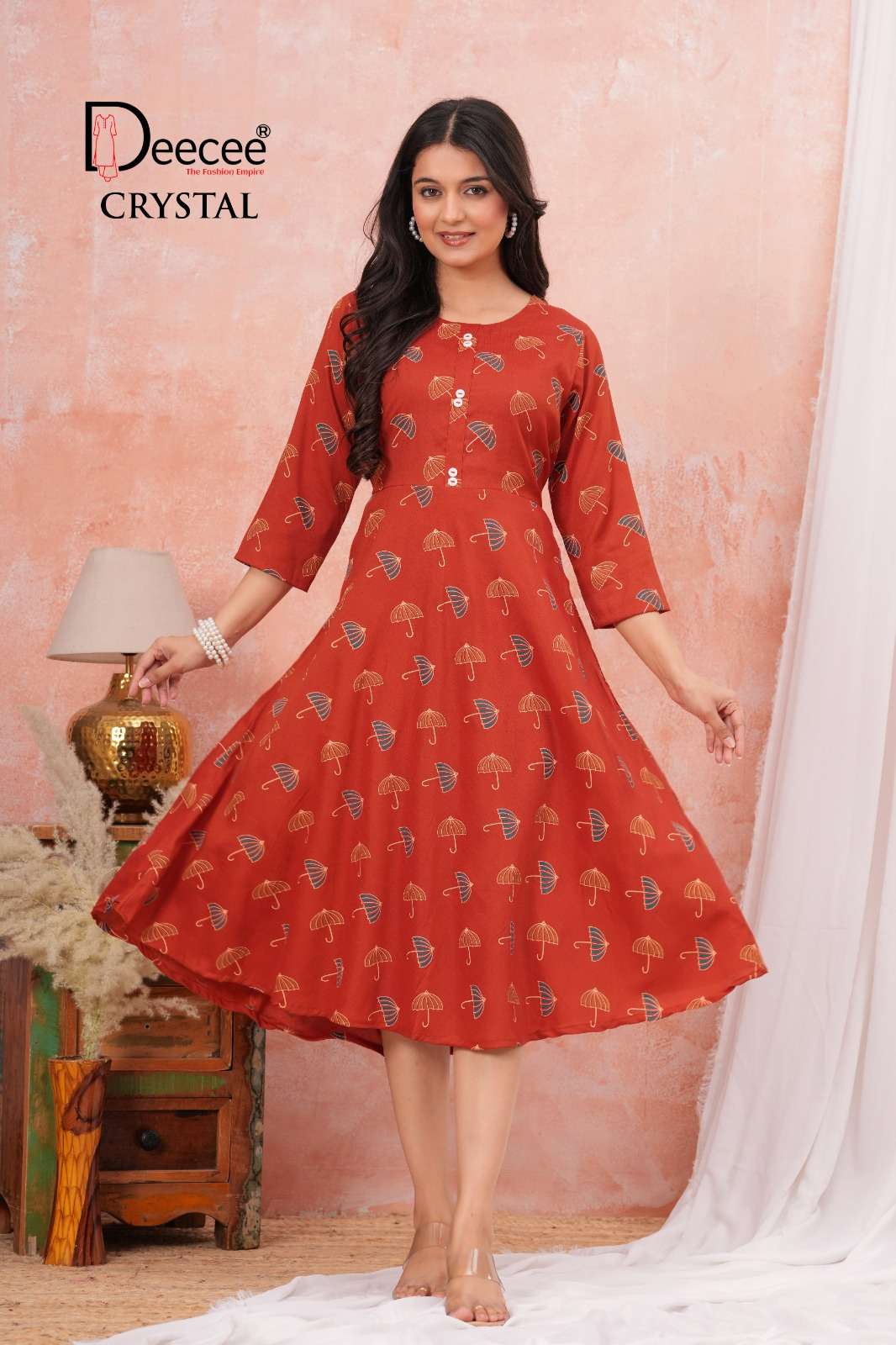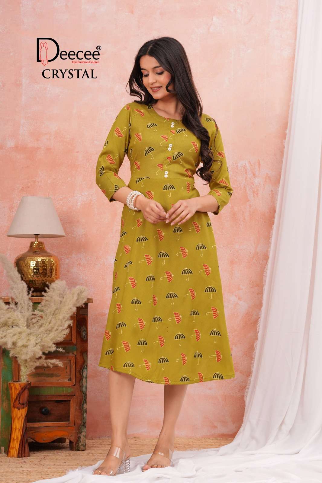 | Title | CRYSTAL TWO TONE PRINTS NEXK BUTTON FLARE KURTI COLLECTION FF |