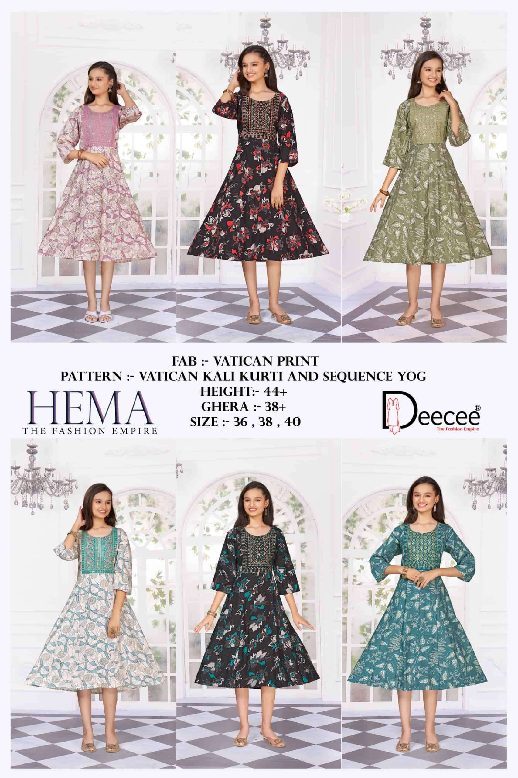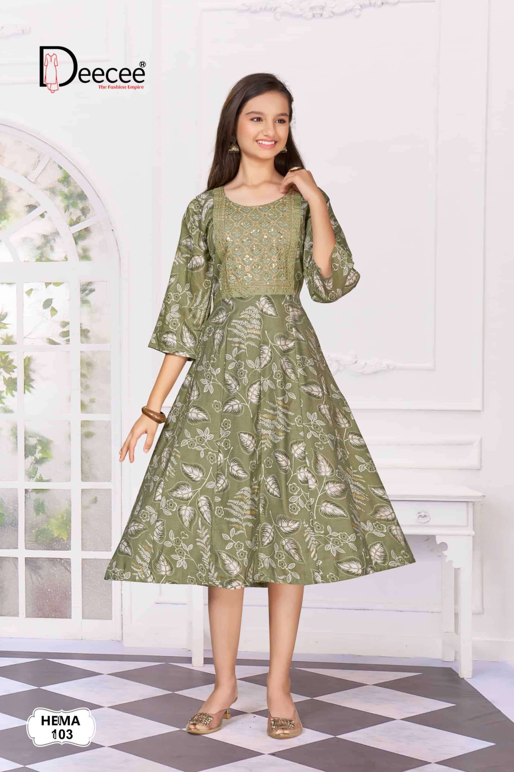 Buy Online DEECEE HEMA FANCY PRINTED KIDS WEAR GIRL COLLECTION IN WHOLESALE 6 Pcs of Full Catalogue at Wholesale Price. Looking for DEECEE HEMA FANCY PRINTED KIDS WEAR GIRL COLLECTION IN WHOLESALE Full Catalouge at Best Price? Buy Now DEECEE HEMA FANCY PRINTED KIDS WEAR GIRL COLLECTION IN WHOLESALE at Wholesale Rate of Rs 3210 with Total 6 Pcs from authroized dealer and supplier of DEECEE FASHION Brand. Cost of Each piece is just only Rs 535 which is very low and affordable price to resale the product in your retail store Ethnic Export is Surat based Wholesale Supplier & Dealer of DEECEE FASHION Brand. Click on Brand name to Know more about DEECEE FASHION Brand's products.Call or Whatsapp on +91-9825759366 for booking or enquiry