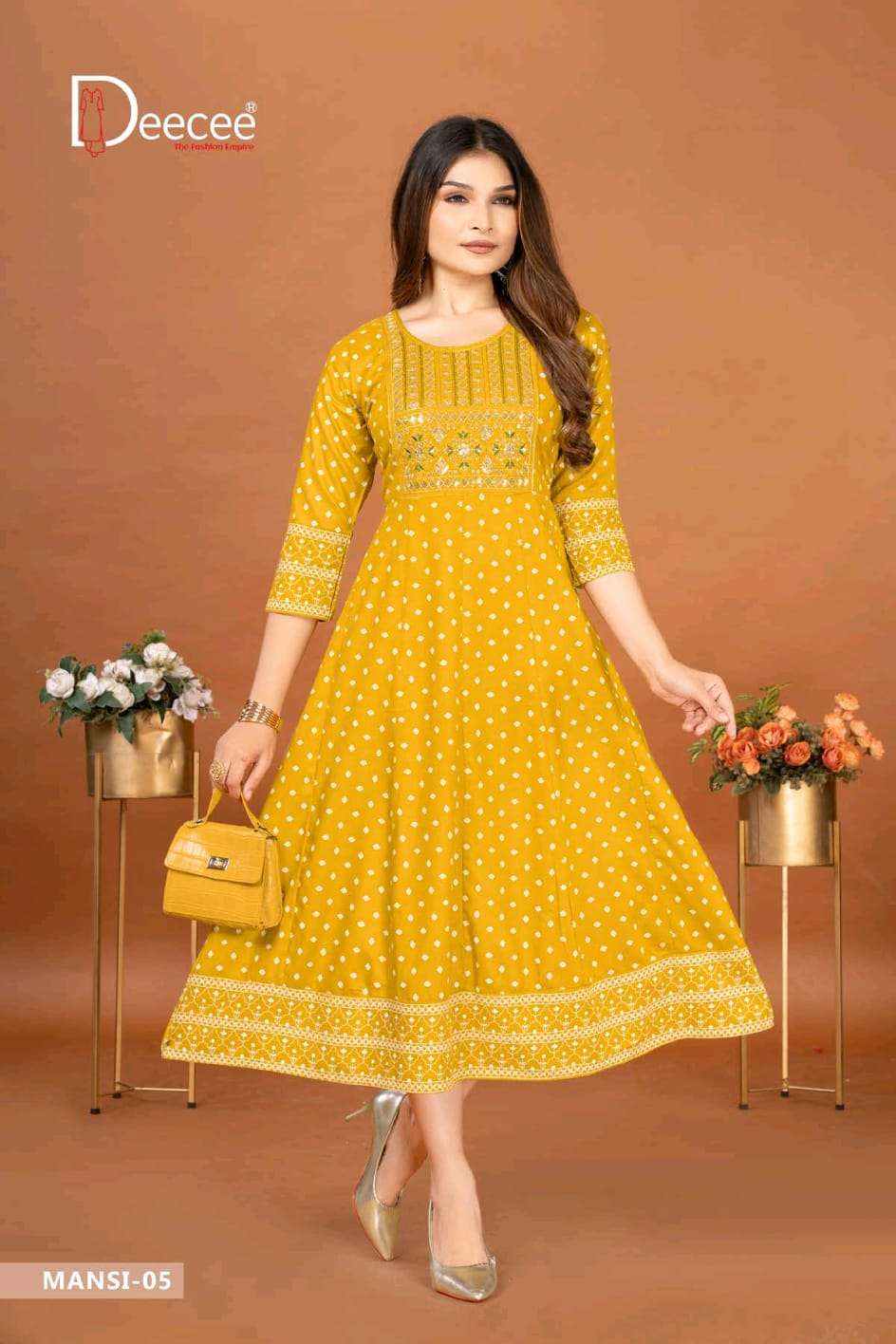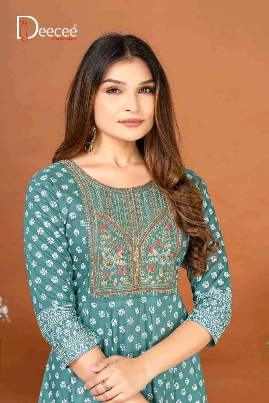 | Title | DEECEE MANSI RAYON FLARED KALI STYLE KURTI WITH KHADI PRINT FESTIVAL WEAR DEALER |