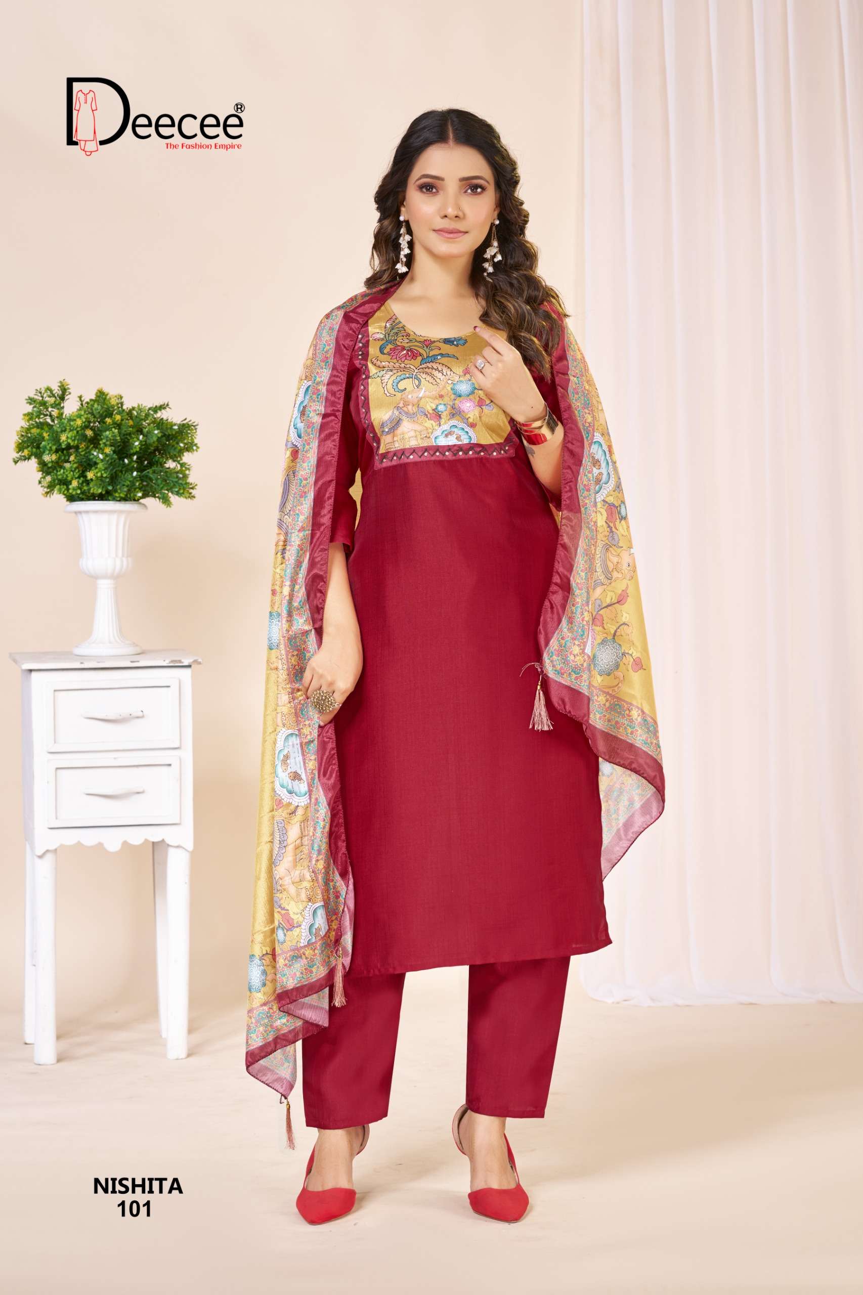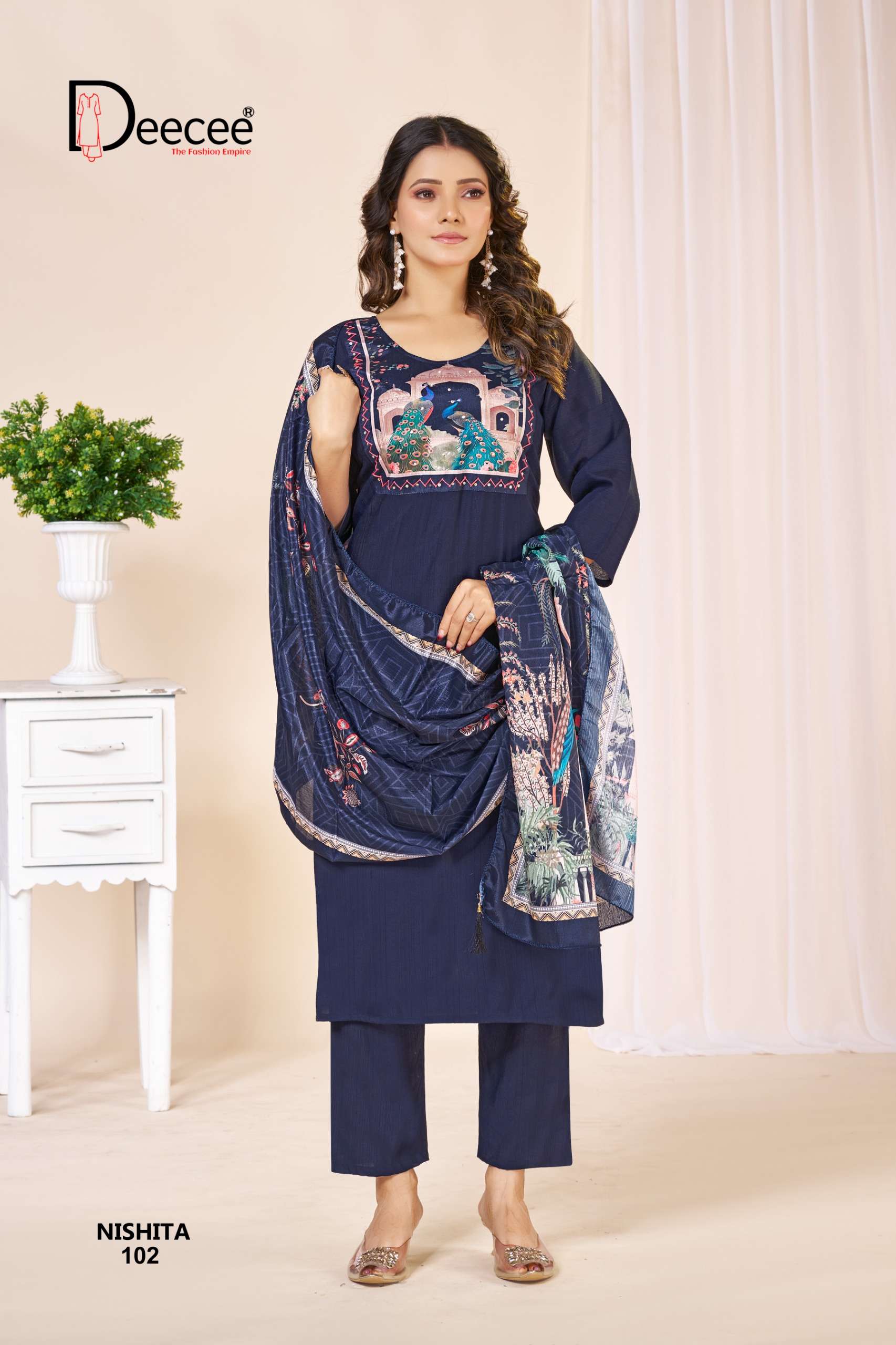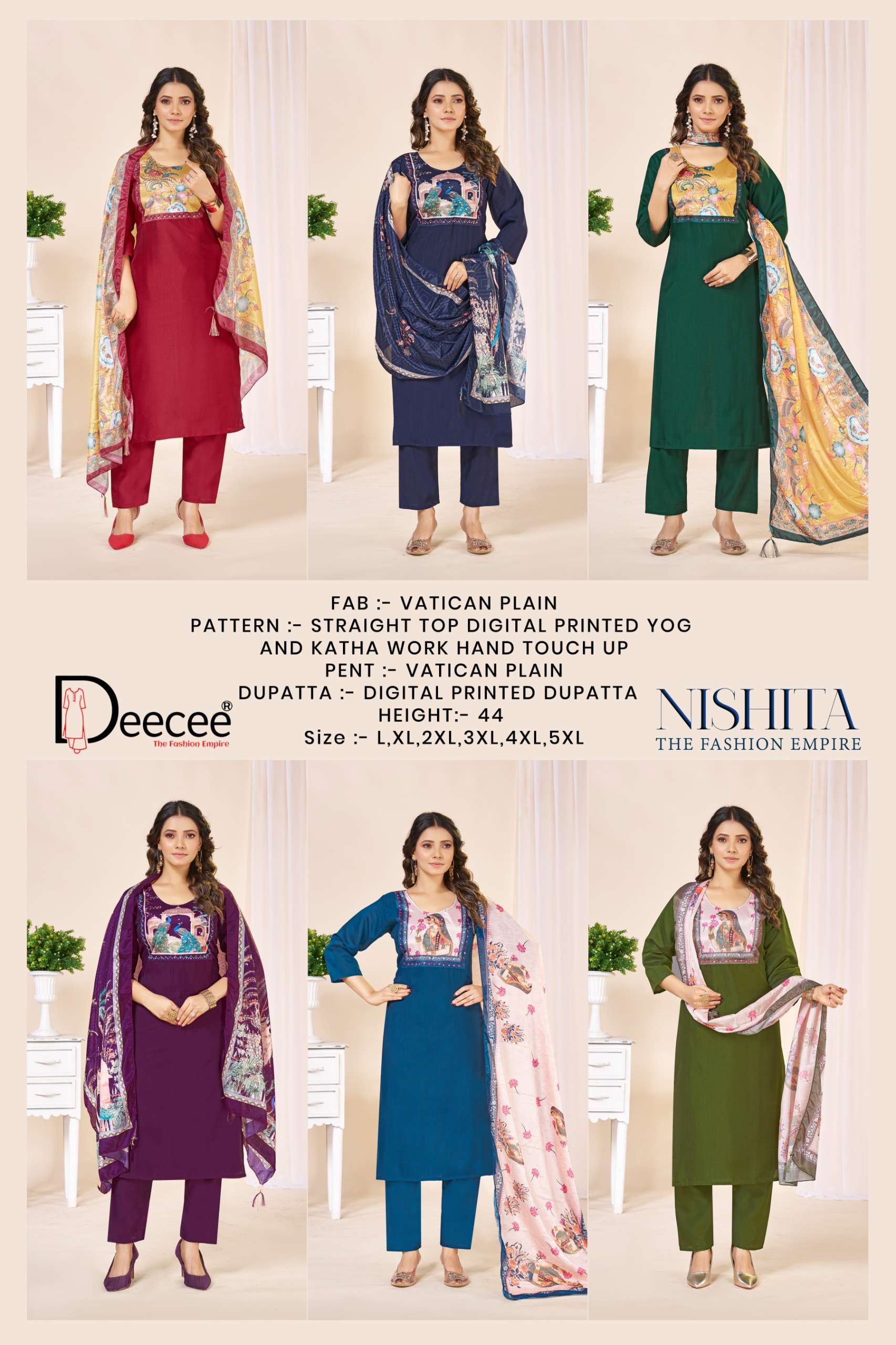| Title | DEECEE NISHITA STRAIGHT FASHION YOG AND KATHA WORK READYMADE SUIT LADIES |