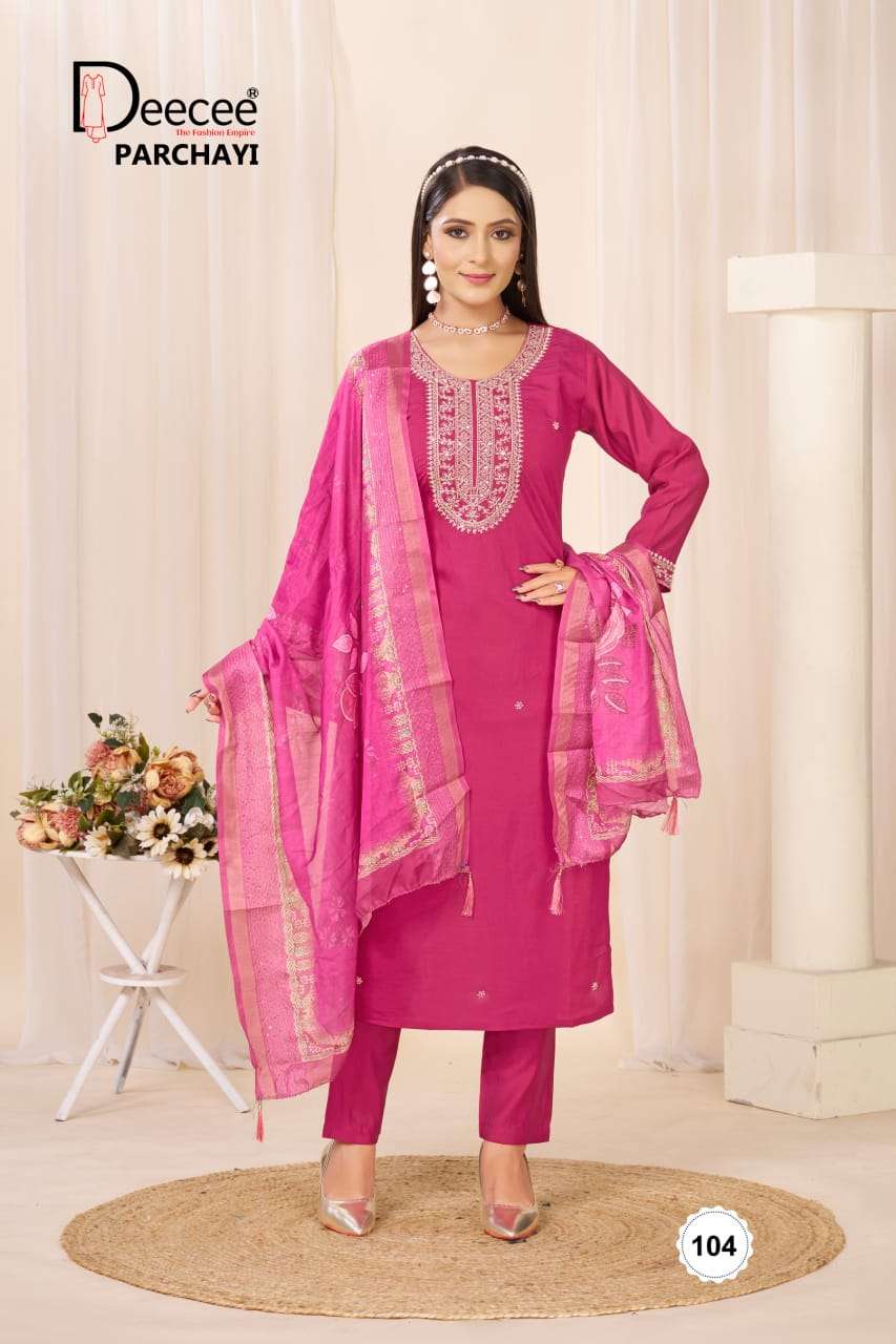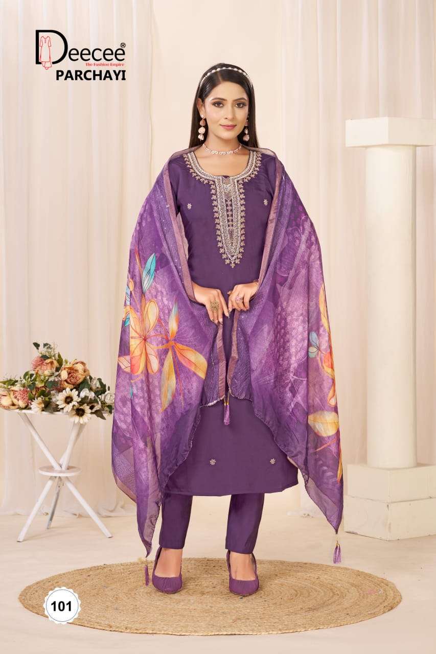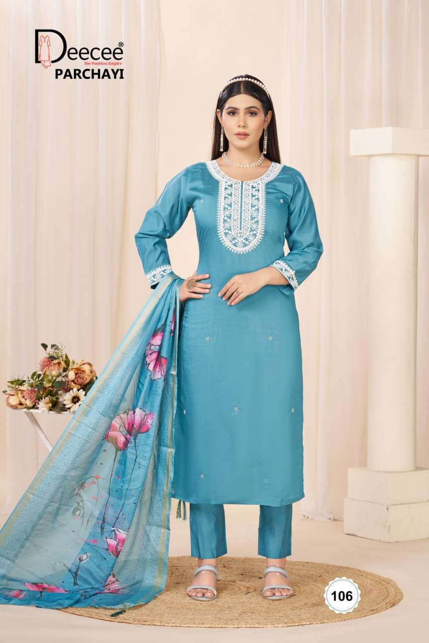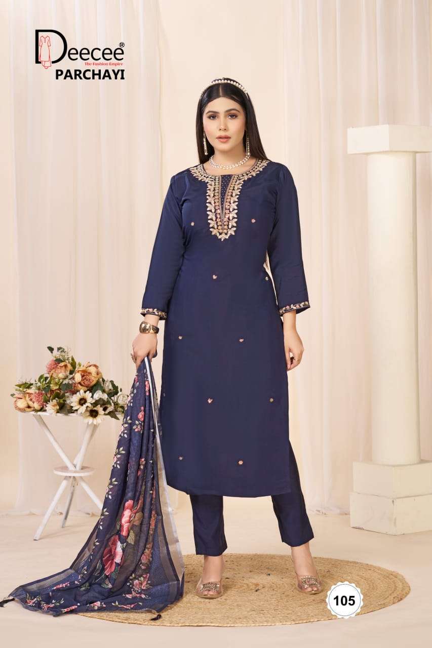 DEECEE PARCHAYI SILK STRAIGHT CUT KAMEEZ SUIT COLLECTION RETAILER MARKET