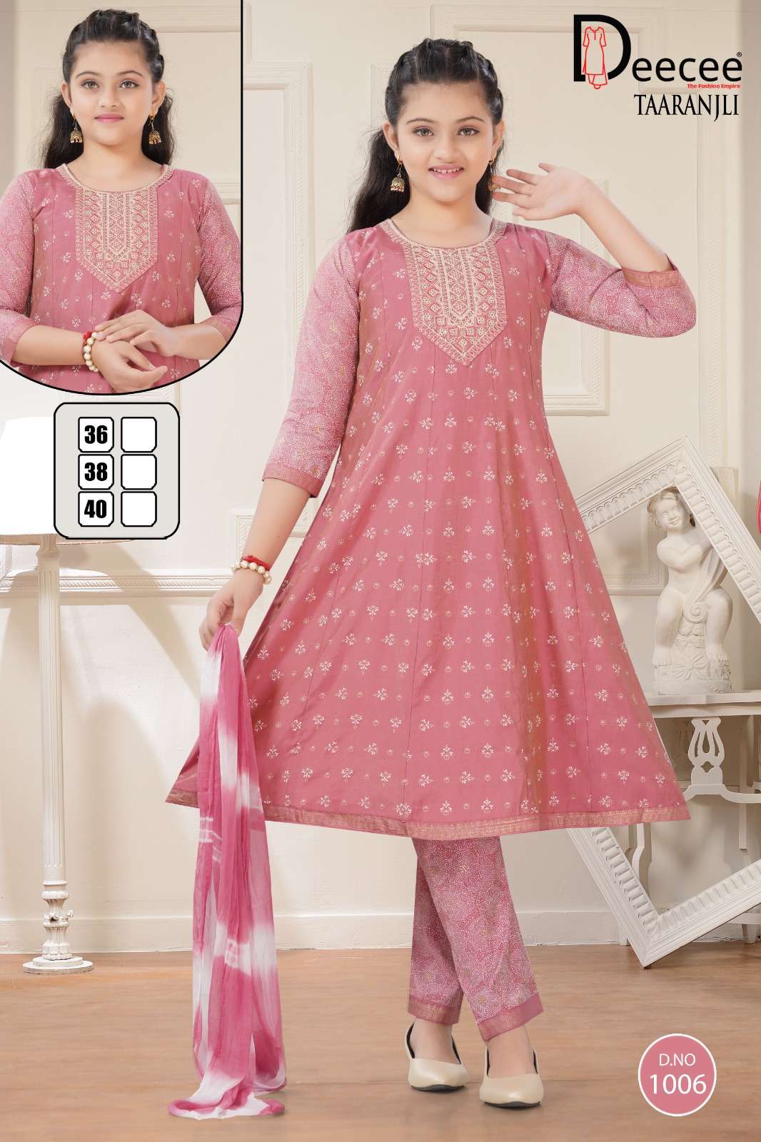 Buy Online DEECEE TAARANJLI SIMMER PRINT KALI STYLE KURTI FOR KIDS WEAR FESTIVAL EXPORT 6 Pcs of Full Catalogue at Wholesale Price. Looking for DEECEE TAARANJLI SIMMER PRINT KALI STYLE KURTI FOR KIDS WEAR FESTIVAL EXPORT Full Catalouge at Best Price? Buy Now DEECEE TAARANJLI SIMMER PRINT KALI STYLE KURTI FOR KIDS WEAR FESTIVAL EXPORT at Wholesale Rate of Rs 3720 with Total 6 Pcs from authroized dealer and supplier of DEECEE FASHION Brand. Cost of Each piece is just only Rs 620 which is very low and affordable price to resale the product in your retail store Ethnic Export is Surat based Wholesale Supplier & Dealer of DEECEE FASHION Brand. Click on Brand name to Know more about DEECEE FASHION Brand's products.Call or Whatsapp on +91-9825759366 for booking or enquiry