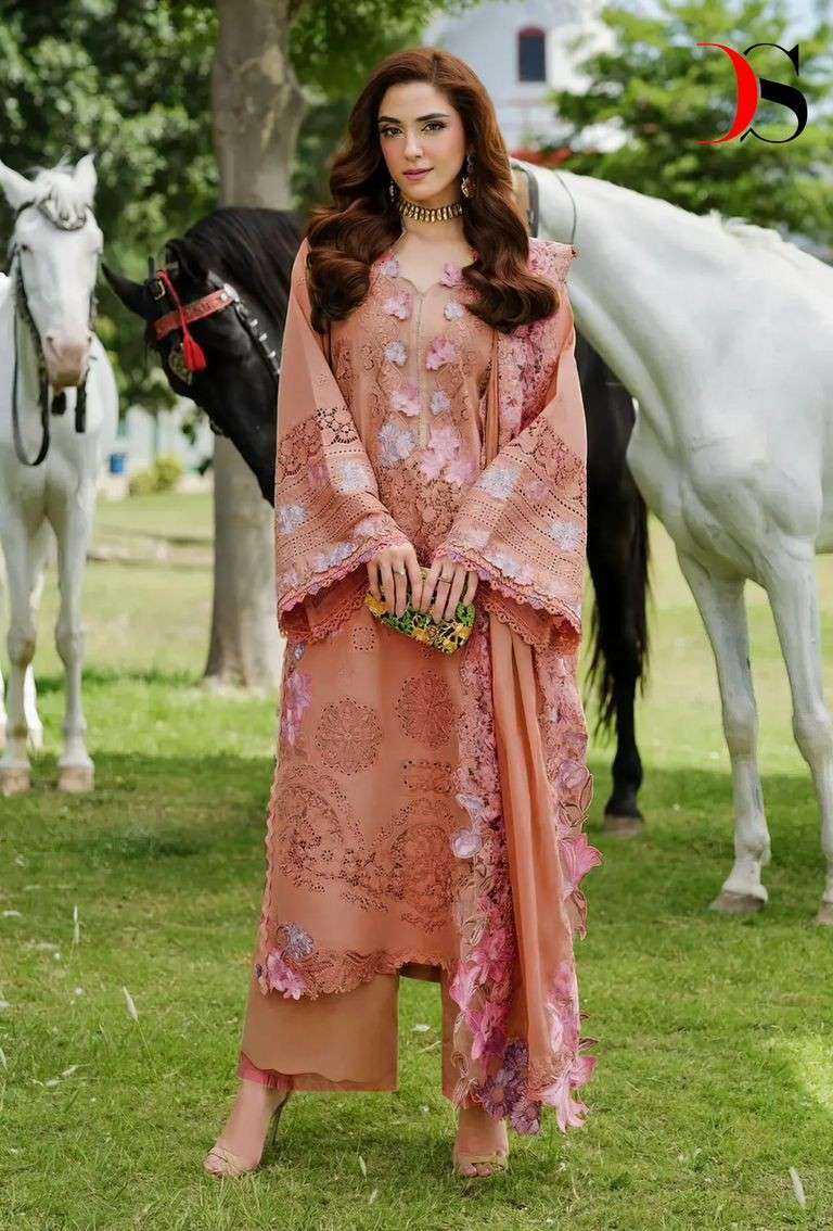 ELAF -2 Luxury Lawn by DEEPSY SUITS Top - Pure cotton with heavy self embroidery attached emb patches Bot - cotton solid Dup - Kota with heavy embroidery Pcs: 4 FULL SET ONLY |