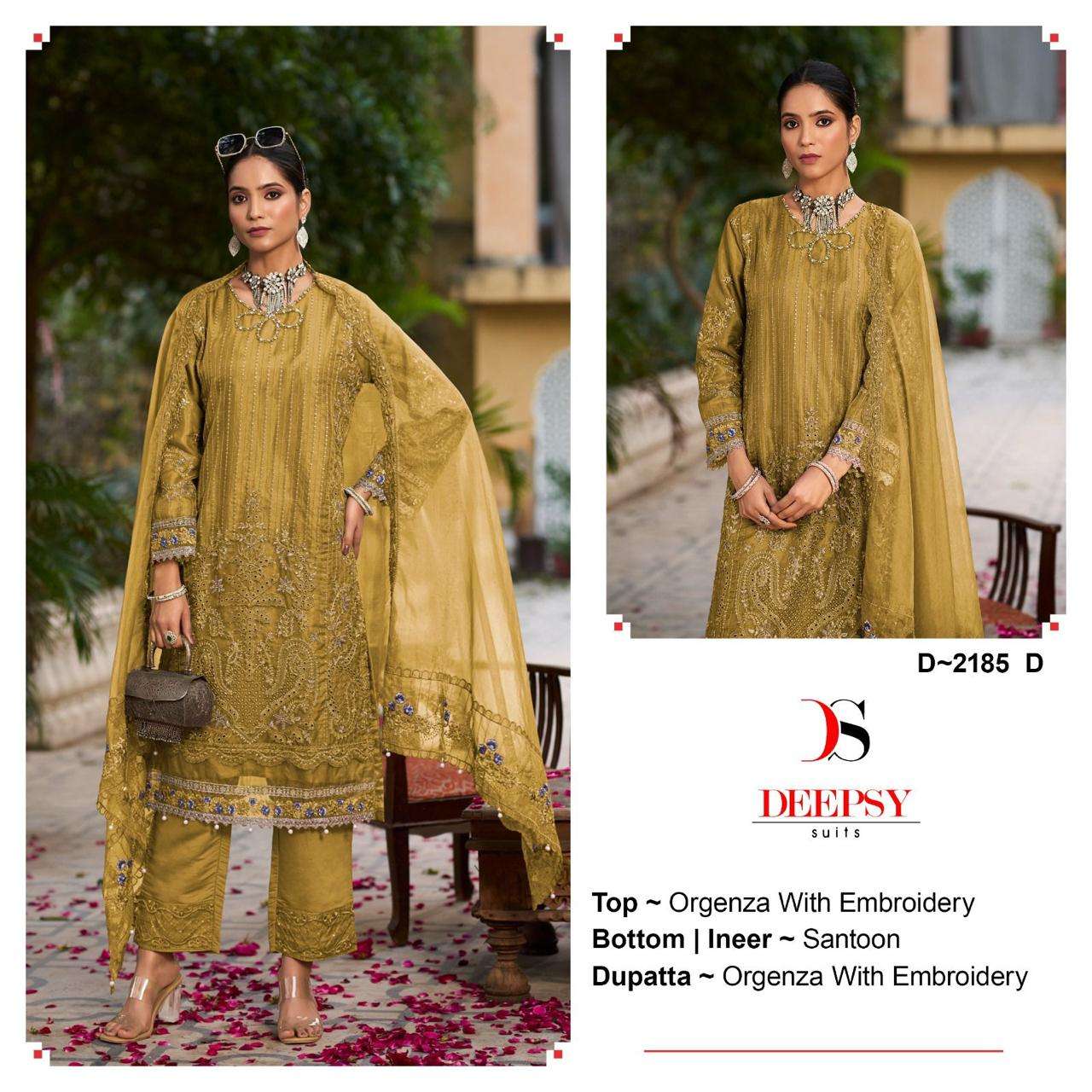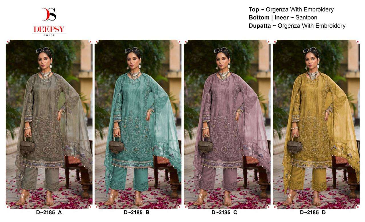 Buy Online DEEPSY SUITS 2185 SHADI FUNCTION WEAR ORGANZA KHATLI WORK SALWAR SUIT TRADER 4 Pcs of Full Catalogue at Wholesale Price. Looking for DEEPSY SUITS 2185 SHADI FUNCTION WEAR ORGANZA KHATLI WORK SALWAR SUIT TRADER Full Catalouge at Best Price? Buy Now DEEPSY SUITS 2185 SHADI FUNCTION WEAR ORGANZA KHATLI WORK SALWAR SUIT TRADER at Wholesale Rate of Rs 4796 with Total 4 Pcs from authroized dealer and supplier of Deepsy Suits Brand. Cost of Each piece is just only Rs 1199 which is very low and affordable price to resale the product in your retail store Ethnic Export is Surat based Wholesale Supplier & Dealer of Deepsy Suits Brand. Click on Brand name to Know more about Deepsy Suits Brand's products.Call or Whatsapp on +91-9825759366 for booking or enquiry