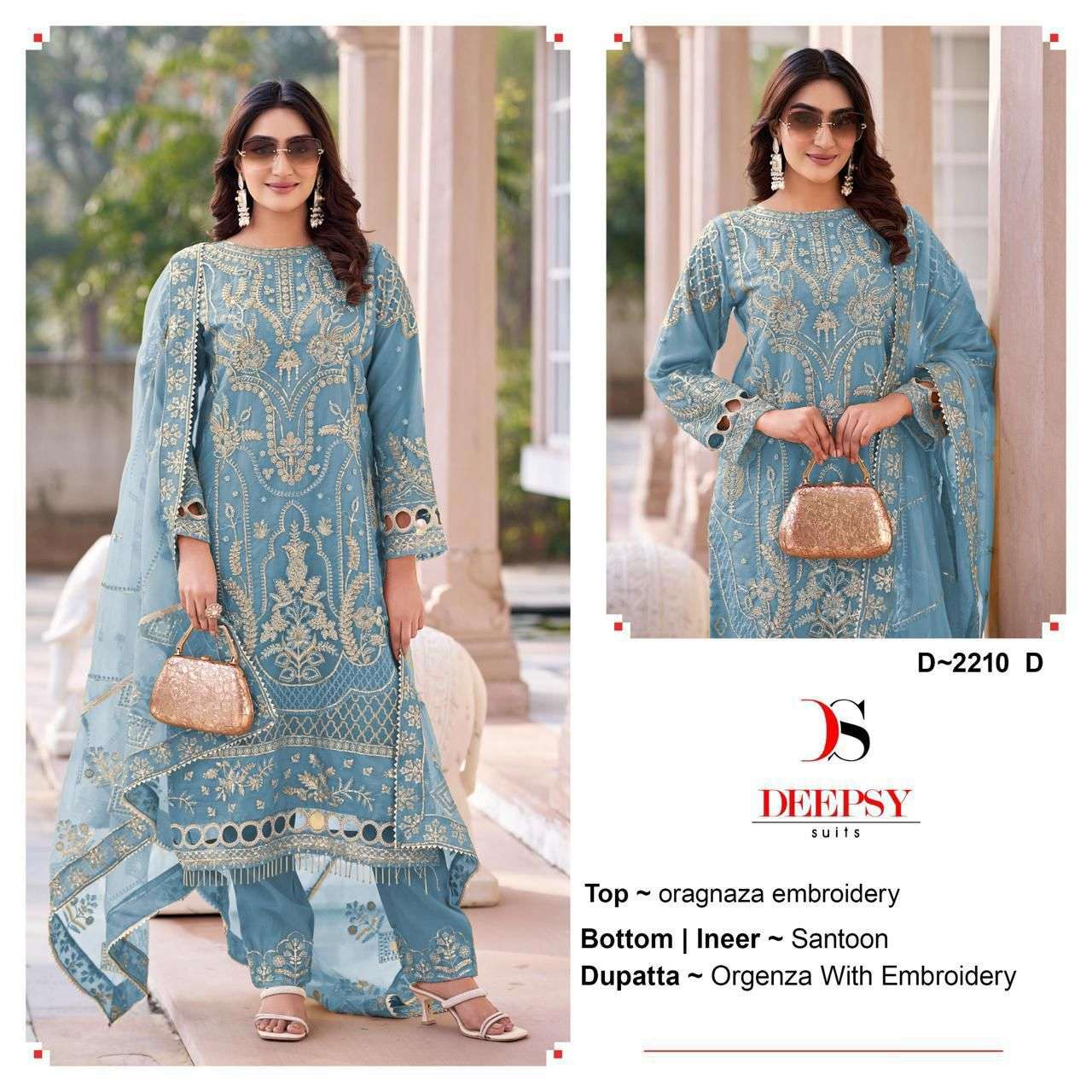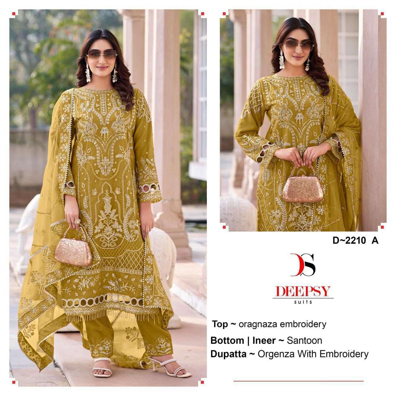Title | DEEPSY SUITS 2210 TOP PAKISTANI BRAND QUALITY ORGANZA FABRIC HEAVY WORK SUIT EXPORT |