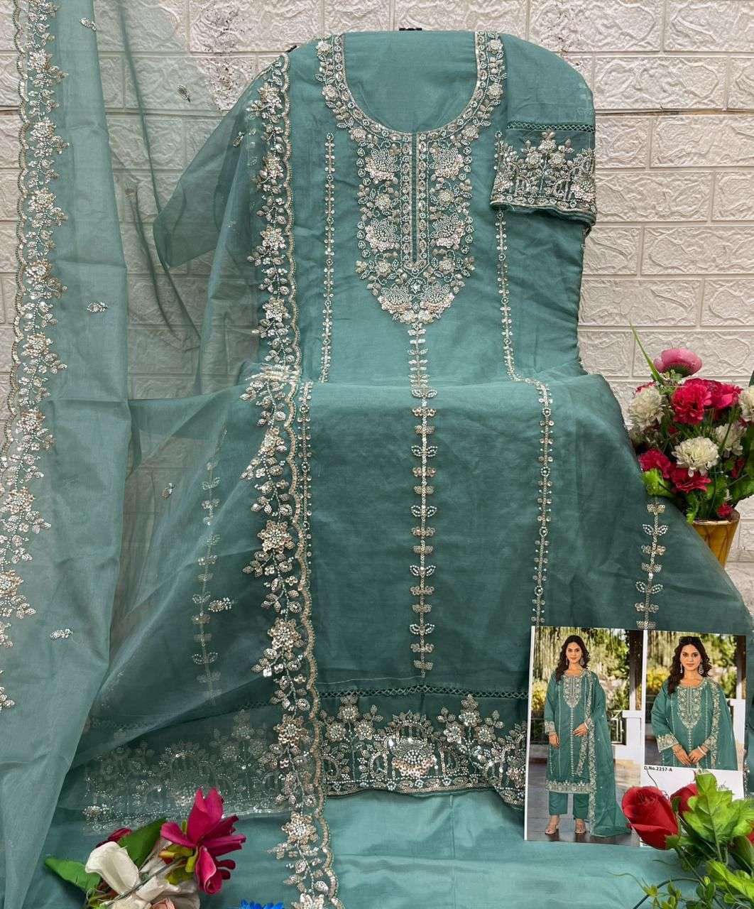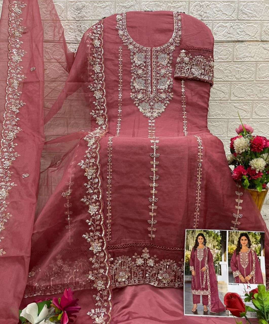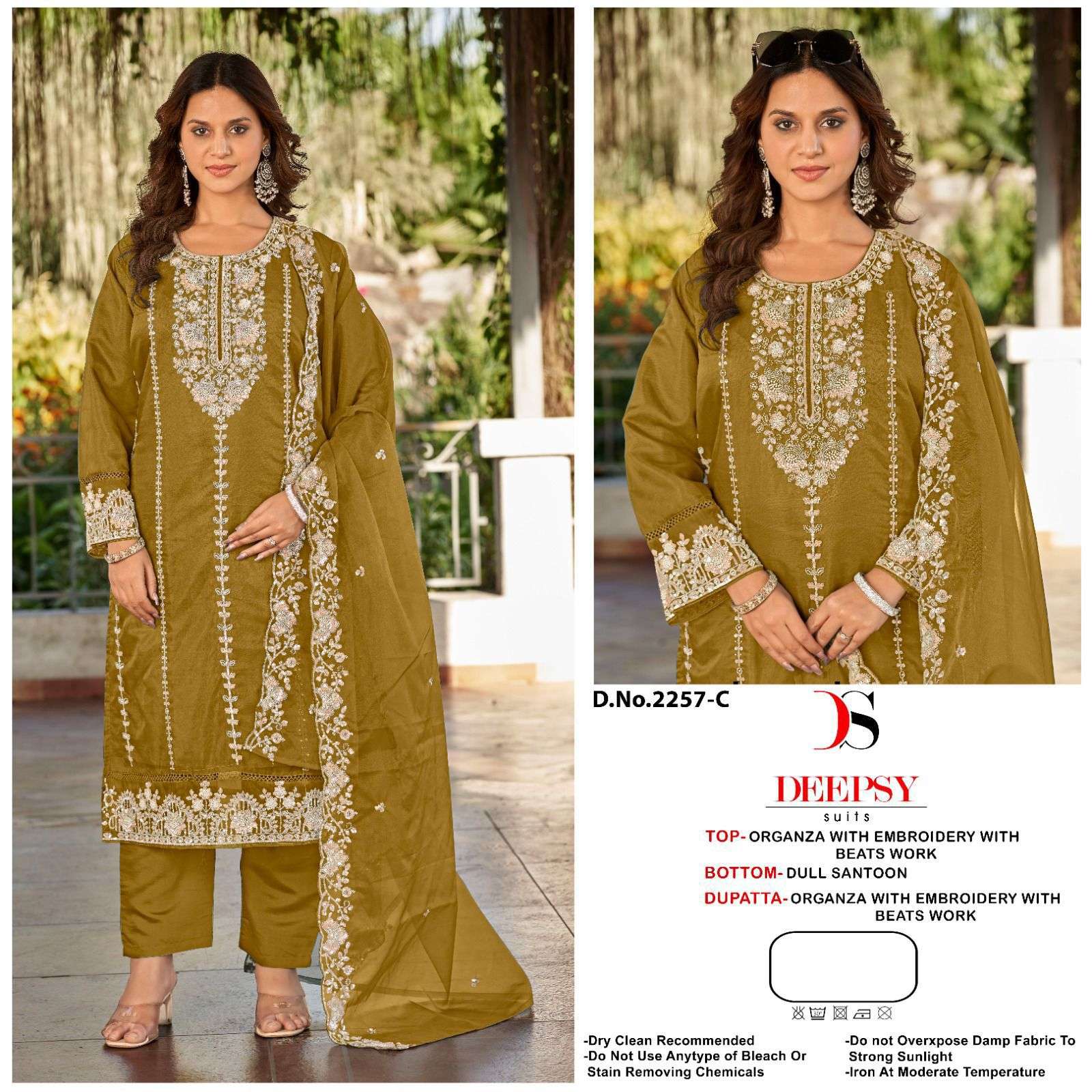 D no.: 2257 ABCD by DEEPSY SUITS Top -organa with embroidery & Bits work (semi stich) Bot - Dull Santoon Dup - organza with embroidery & Bits work FULL SET ONLY |
