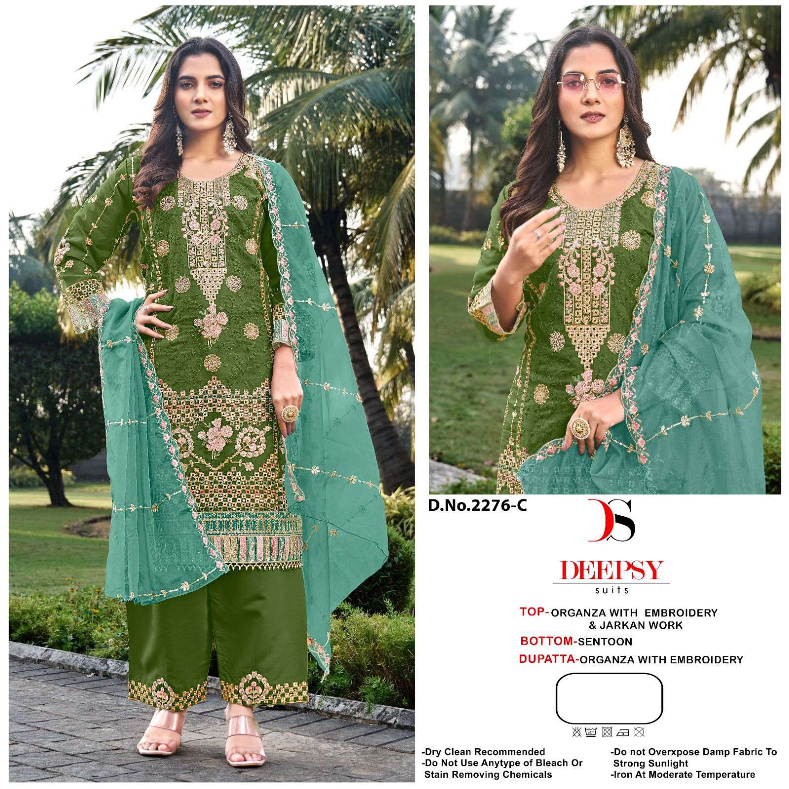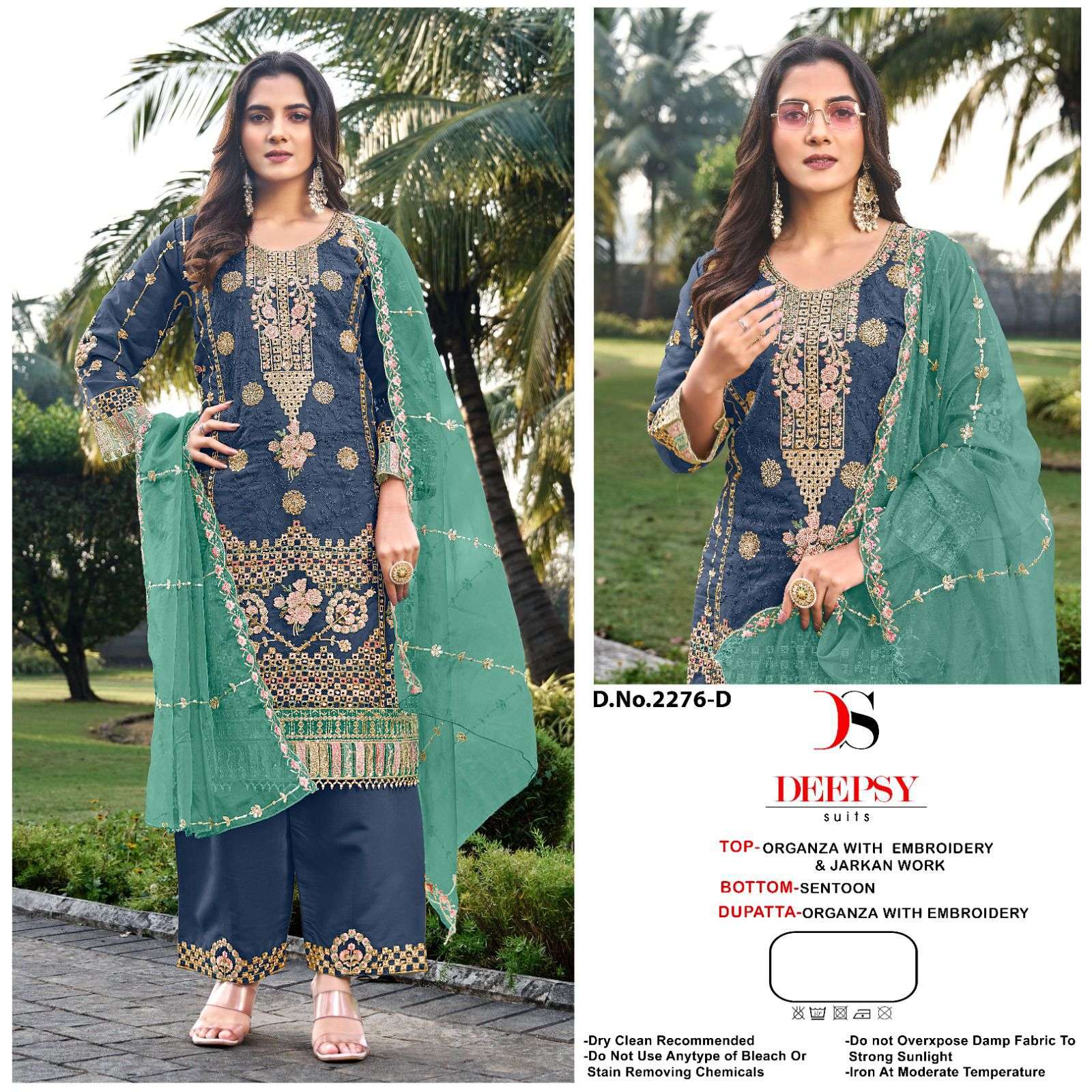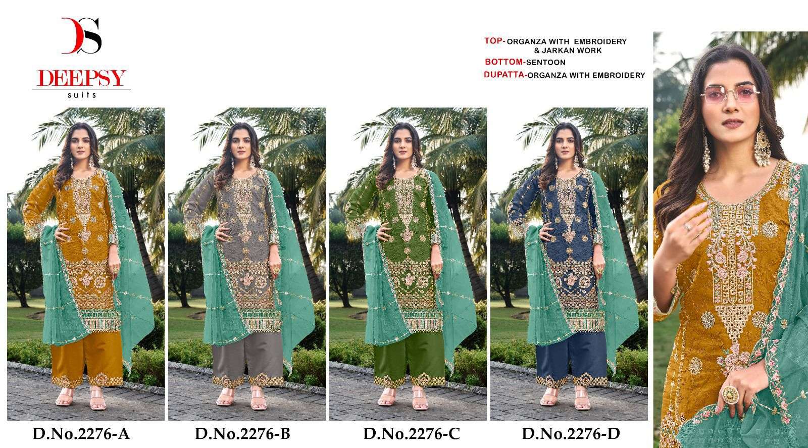 D no.: 2276 ABCD by DEEPSY SUITS Top -organa with embroidery & Latkan Havy Jarkan work (semi stich) Bot - Santoon Dup - organza with embroidery FULL SET ONLY |