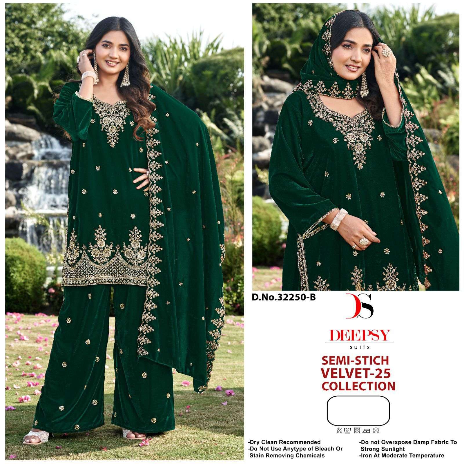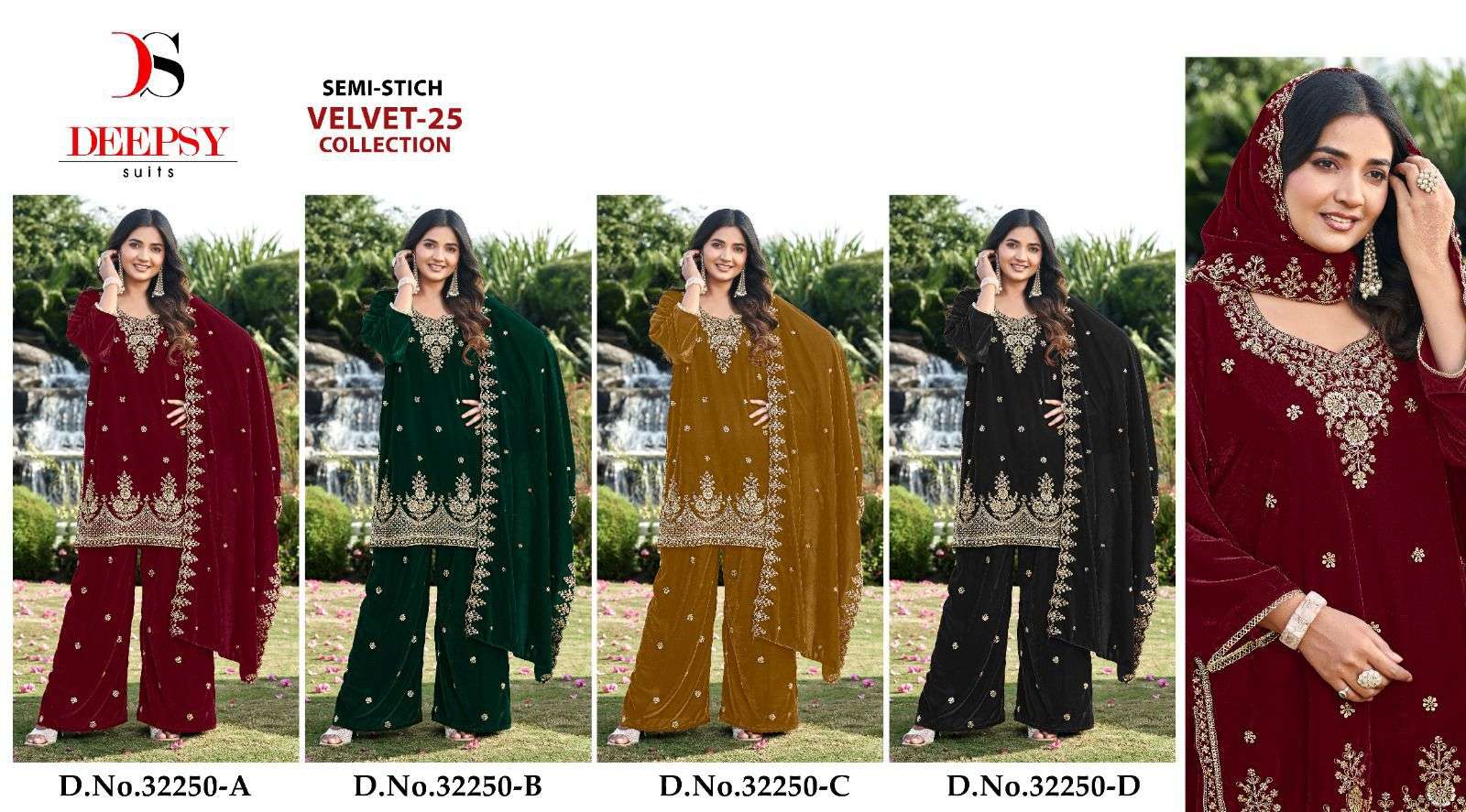 Buy Online DEEPSY SUITS 32250 VELVET FASHION HEAVY EMBROIDERY VELVET SUIT COLLECTION SHOP 4 Pcs of Full Catalogue at Wholesale Price. Looking for DEEPSY SUITS 32250 VELVET FASHION HEAVY EMBROIDERY VELVET SUIT COLLECTION SHOP Full Catalouge at Best Price? Buy Now DEEPSY SUITS 32250 VELVET FASHION HEAVY EMBROIDERY VELVET SUIT COLLECTION SHOP at Wholesale Rate of Rs 7996 with Total 4 Pcs from authroized dealer and supplier of Deepsy Suits Brand. Cost of Each piece is just only Rs 1999 which is very low and affordable price to resale the product in your retail store Ethnic Export is Surat based Wholesale Supplier & Dealer of Deepsy Suits Brand. Click on Brand name to Know more about Deepsy Suits Brand's products.Call or Whatsapp on +91-9825759366 for booking or enquiry