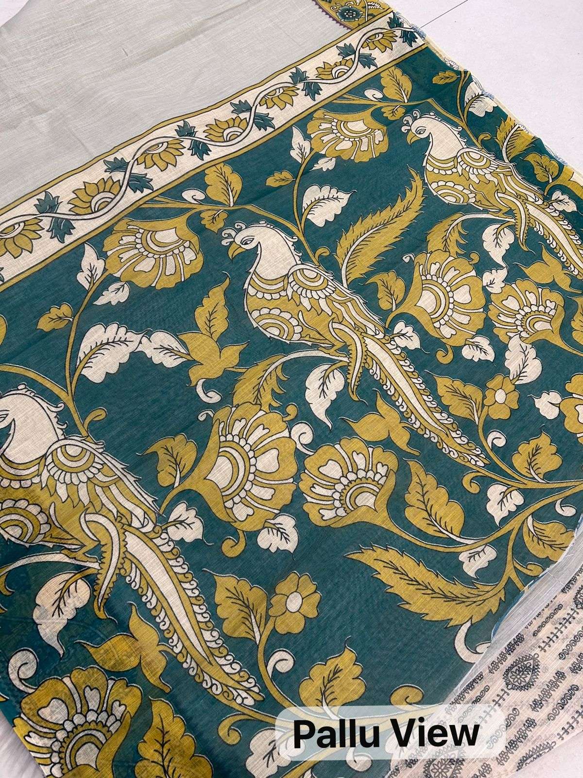 DF 238 KALAMKARI PRINTED BORDER WITH PLAIN LINEN FABRIC SAREE BEST COLLECTION