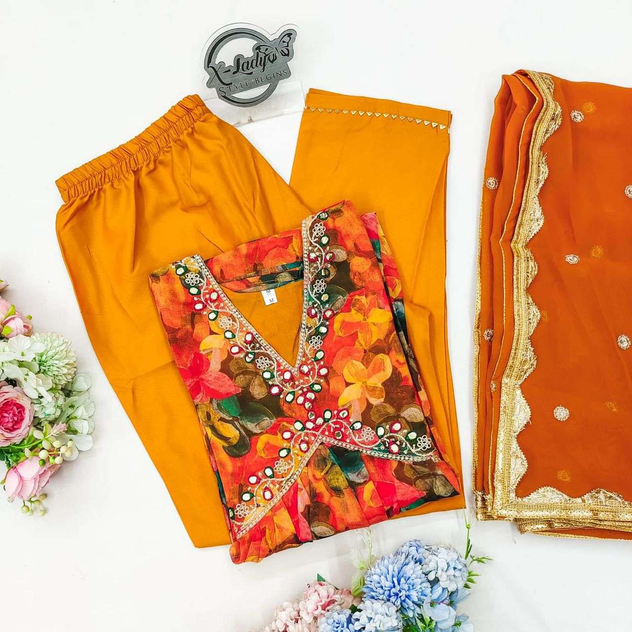 Buy Online DIWALI PARTY CLOTHING ALIYA CUT GEORGETTE FABRIC FLORAL PRINT ORANGE SUIT ONLINE LADY 1 Pcs of Full Catalogue at Wholesale Price. Looking for DIWALI PARTY CLOTHING ALIYA CUT GEORGETTE FABRIC FLORAL PRINT ORANGE SUIT ONLINE LADY Full Catalouge at Best Price? Buy Now DIWALI PARTY CLOTHING ALIYA CUT GEORGETTE FABRIC FLORAL PRINT ORANGE SUIT ONLINE LADY at Wholesale Rate of Rs 899 with Total 1 Pcs from authroized dealer and supplier of lady Brand. Cost of Each piece is just only Rs 899 which is very low and affordable price to resale the product in your retail store Ethnic Export is Surat based Wholesale Supplier & Dealer of lady Brand. Click on Brand name to Know more about lady Brand's products.Call or Whatsapp on +91-9825759366 for booking or enquiry