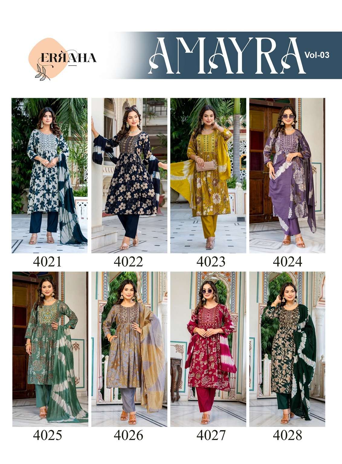 ERRAHA AMAYRA VOL 3 UMBRELLA STYLE KURTI PANT WITH DUPATTA DAILY CLOTHING