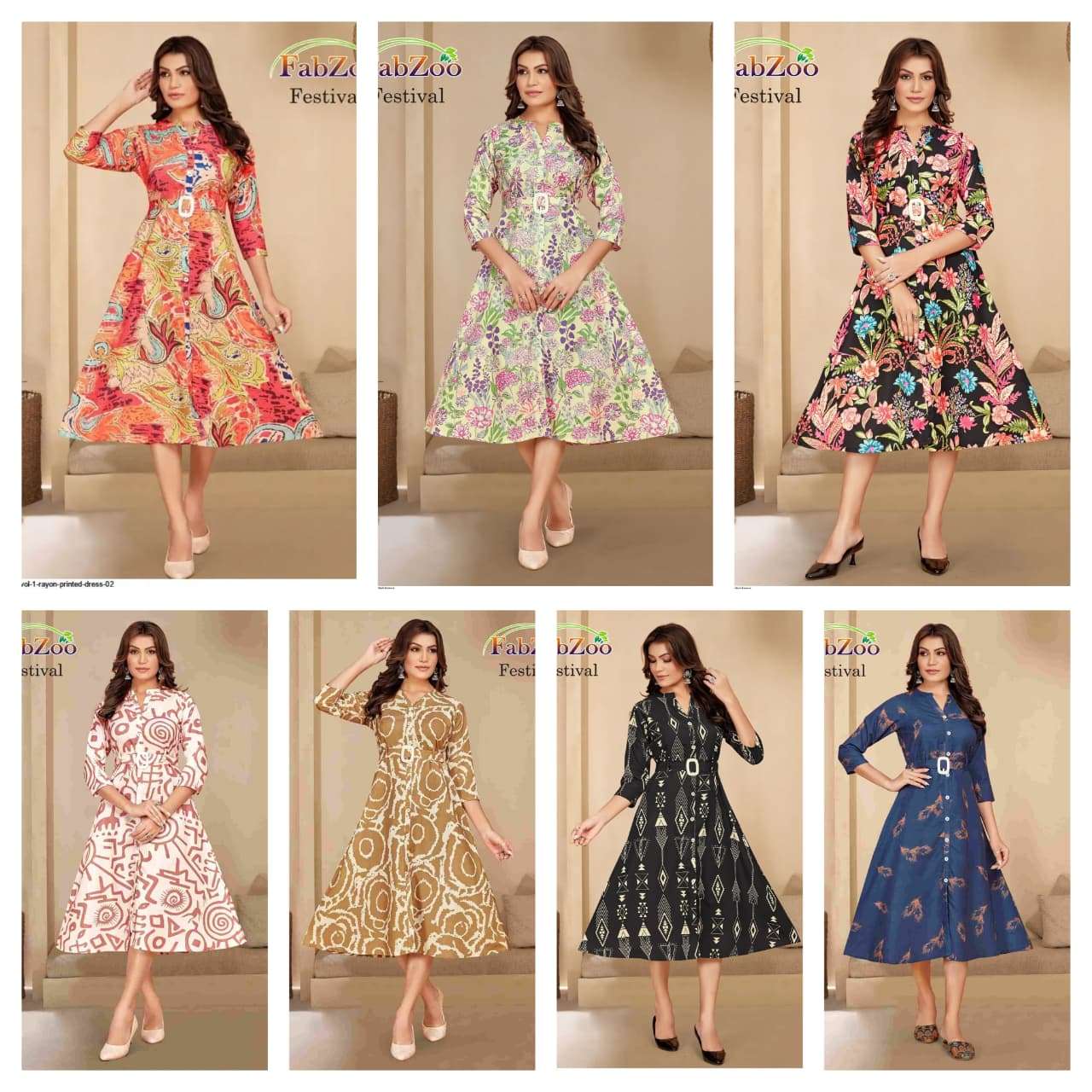 Buy Online FABZOO FESTIVAL FANCY LONG FROCK STYLE ONE PIECE KURTI COLLECTION EXPORT 7 Pcs of Full Catalogue at Wholesale Price. Looking for FABZOO FESTIVAL FANCY LONG FROCK STYLE ONE PIECE KURTI COLLECTION EXPORT Full Catalouge at Best Price? Buy Now FABZOO FESTIVAL FANCY LONG FROCK STYLE ONE PIECE KURTI COLLECTION EXPORT at Wholesale Rate of Rs 3325 with Total 7 Pcs from authroized dealer and supplier of FF Brand. Cost of Each piece is just only Rs 475 which is very low and affordable price to resale the product in your retail store Ethnic Export is Surat based Wholesale Supplier & Dealer of FF Brand. Click on Brand name to Know more about FF Brand's products.Call or Whatsapp on +91-9825759366 for booking or enquiry